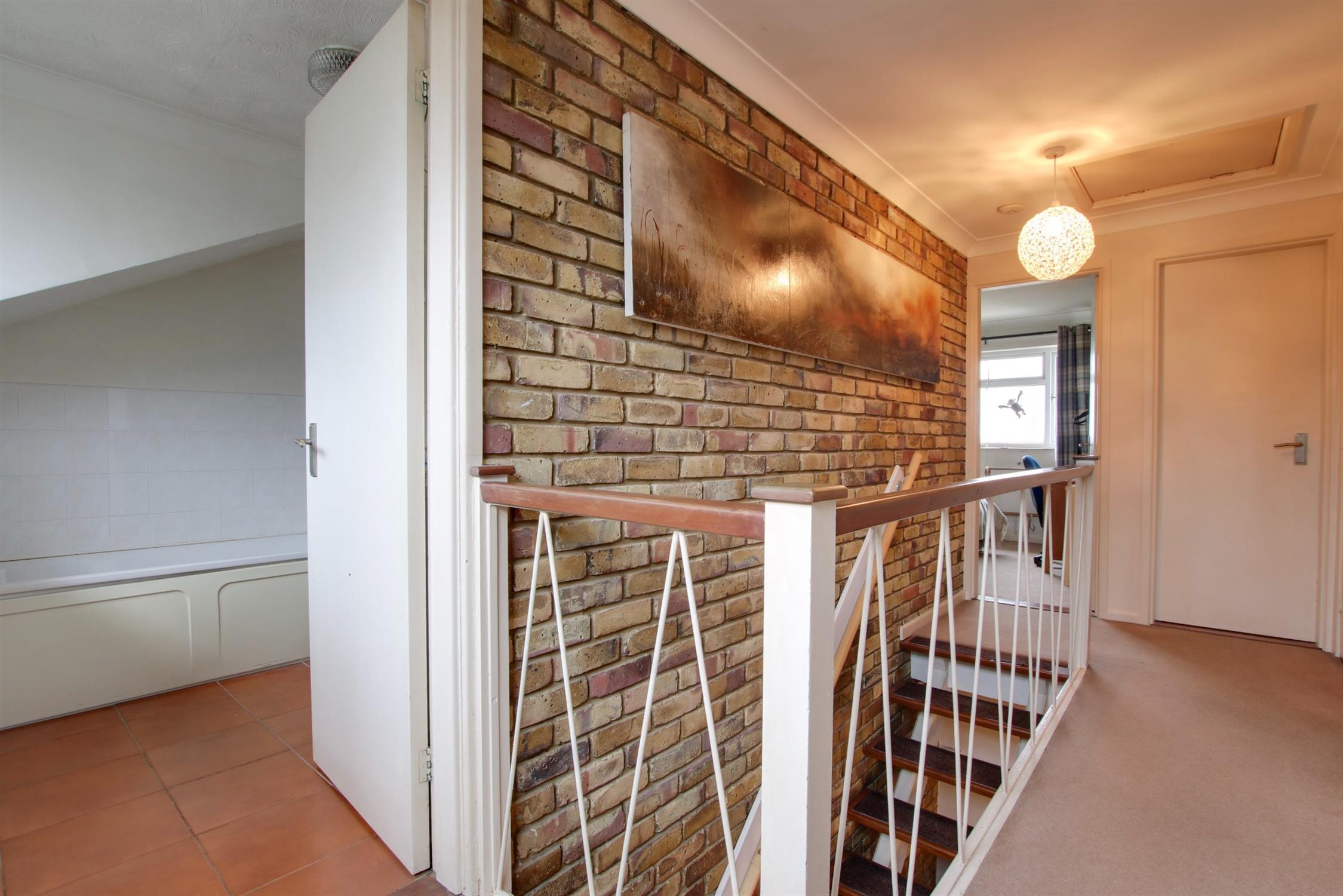 Double glazed window to front elevation. Feature exposed brick wall. Airing cupboard housing hot water cylinder with shelving. Access to eaves storage space and access to loft space. Doors to: