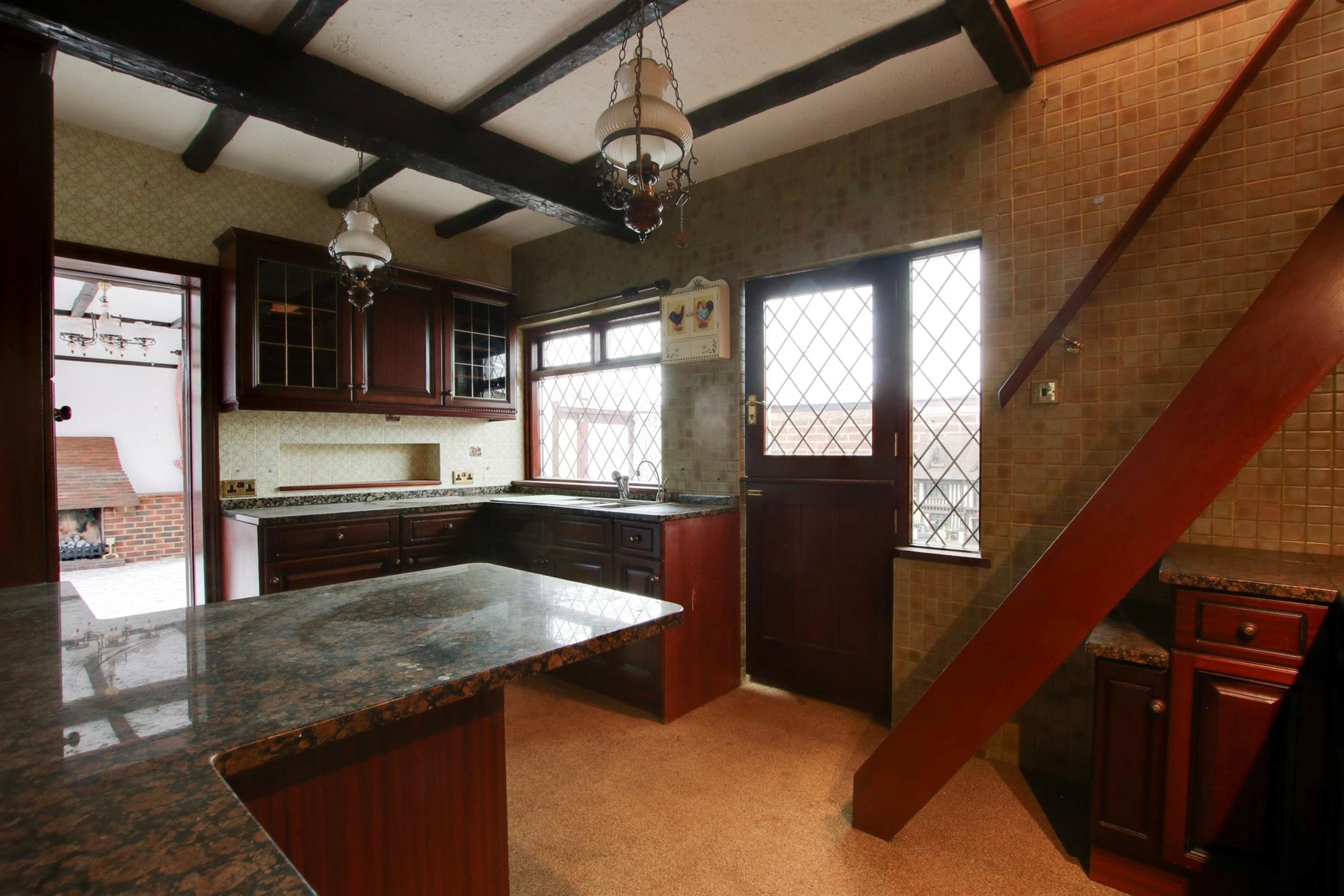 Double glazed window to side elevation. Stable door to lean-to. Range of wall and base level units with stainless steel one and a half bowl sink unit. Space for range style cooker. Steep staircase rising to first floor. Door to lounge.