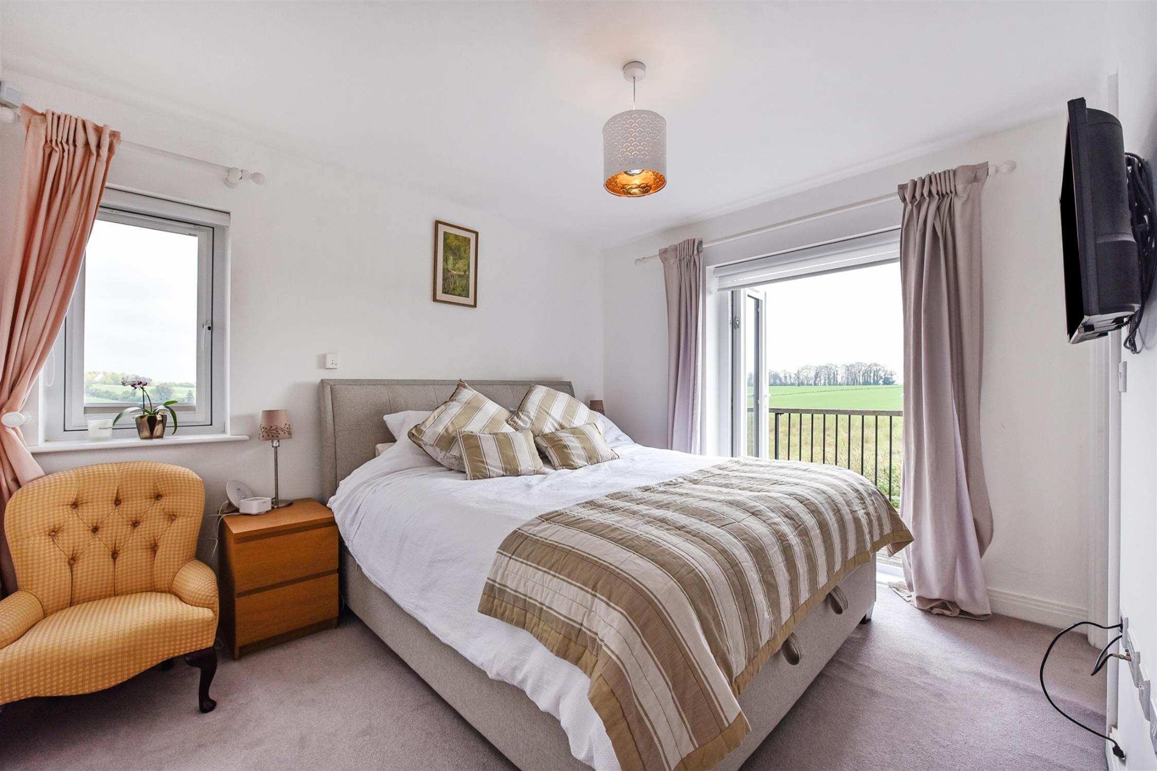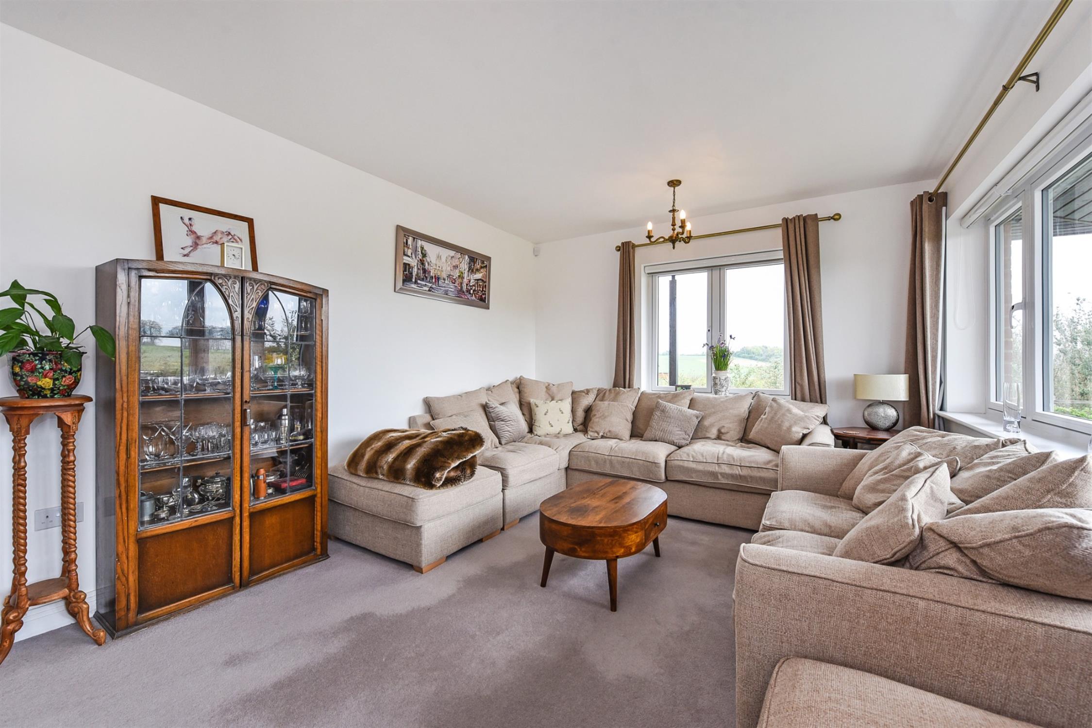 A wonderful space, with a wealth of double-aspect windows offering marvellous far-reaching countryside views. Contemporary electric fire. A full set of day/night blinds.