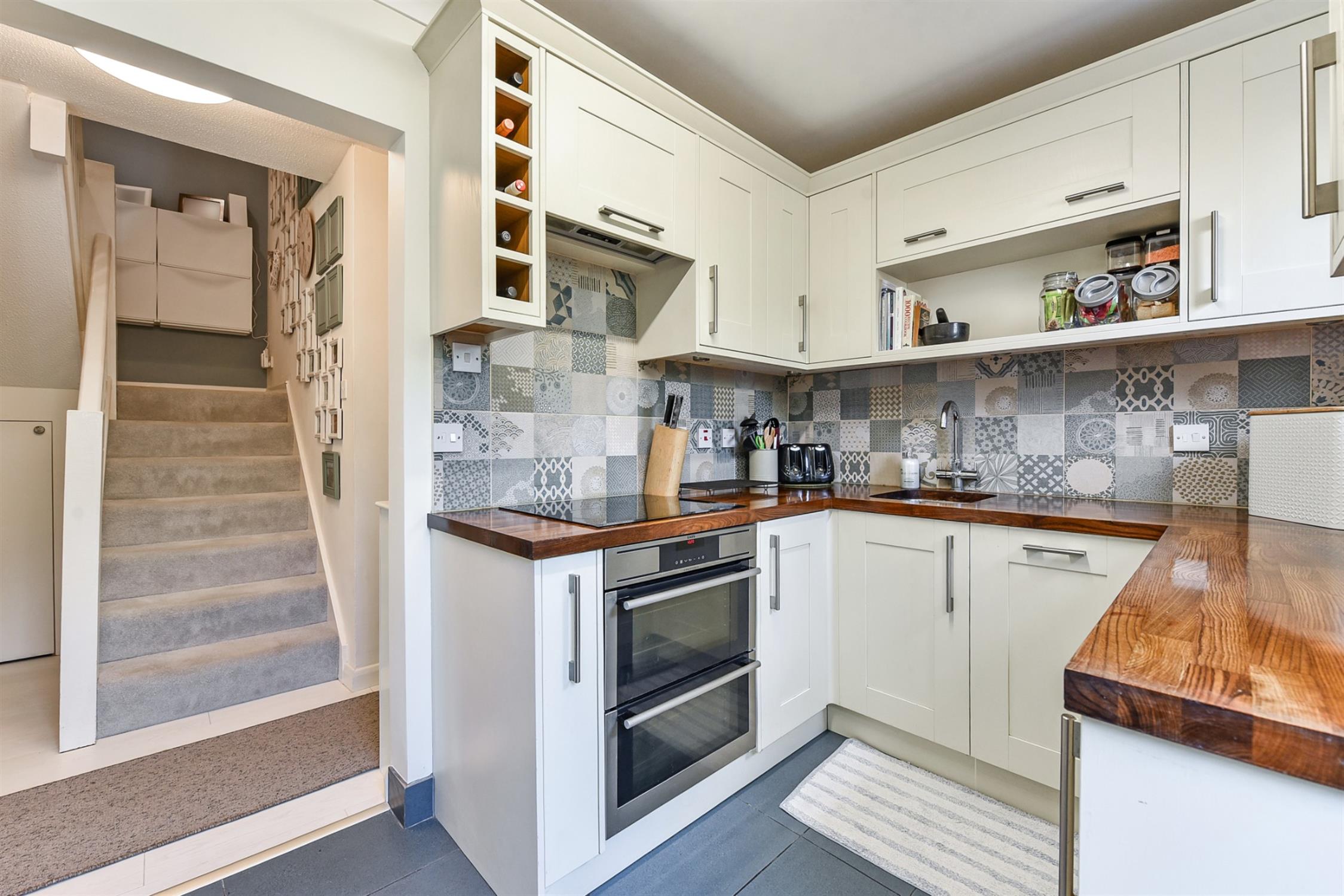 KitchenAttractive fully fitted kitchen with wooden worktops. Integrated appliances include electric oven and hob. Fitted dishwasher and space for fridge freezer and utilities.