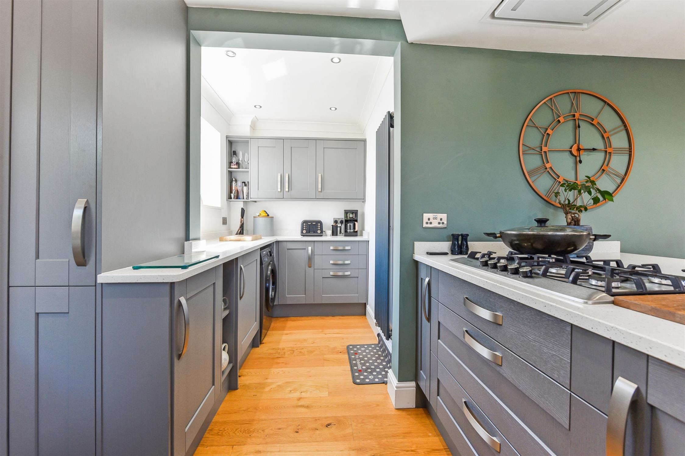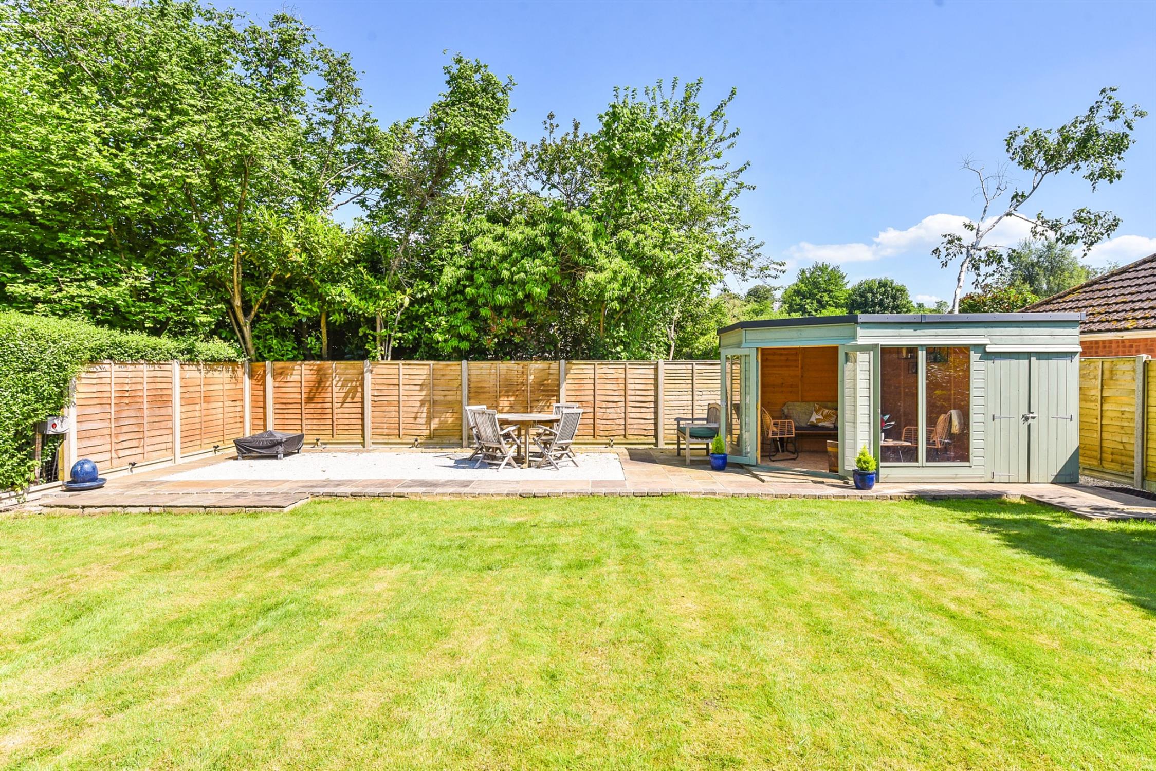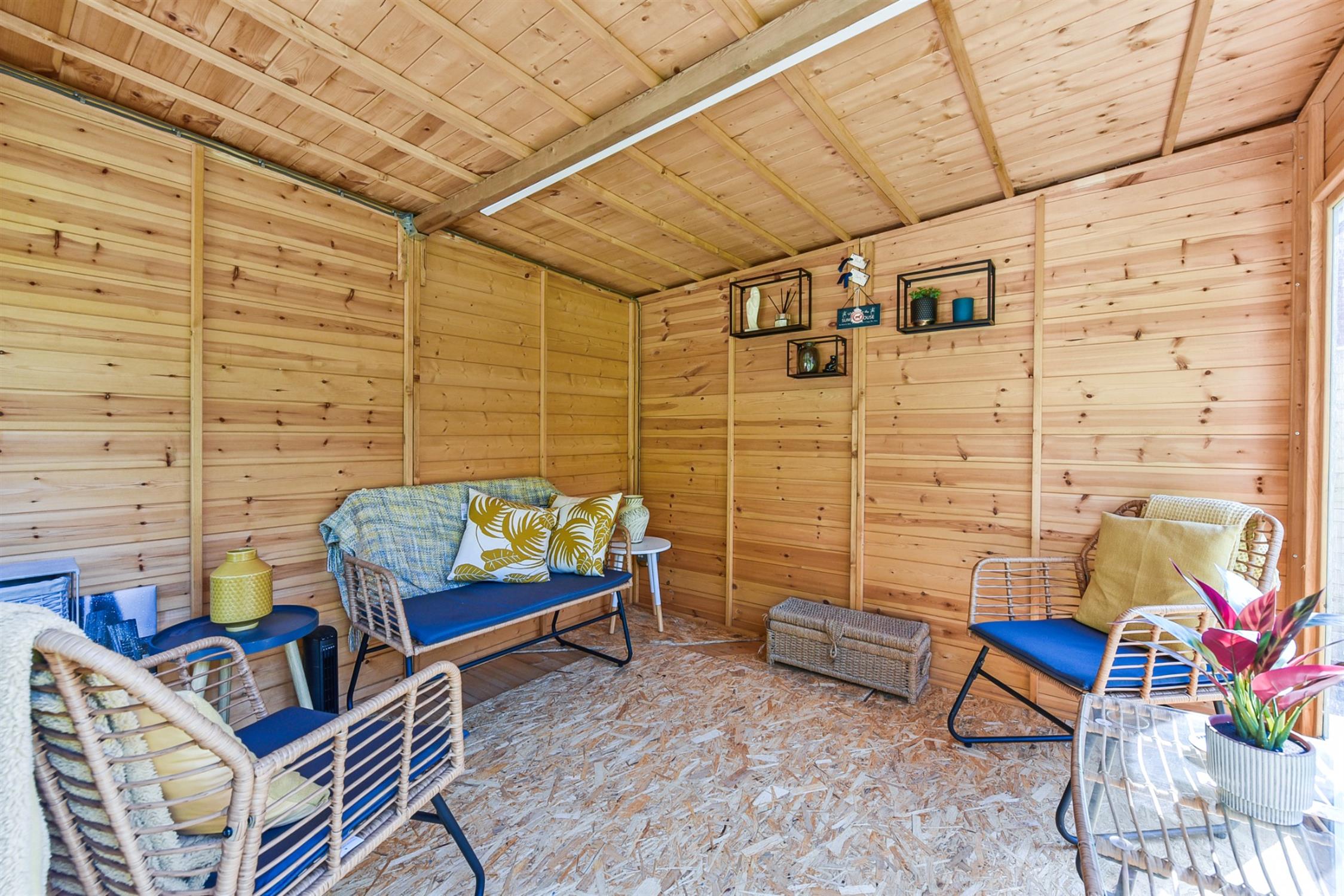 The garden is an excellent size, with the majority laid to neat lawn, raised decking wraps around the house, with a large entertaining terrace adjacent to the living room, a garden bar has been fitted in the side where the rear garage access is. The other side of the garden has been paved in large-format light grey slate, offering another excellent sunny area for entertaining and relaxing. There is a large garden sun house here too with adjoined shed for garden storage.