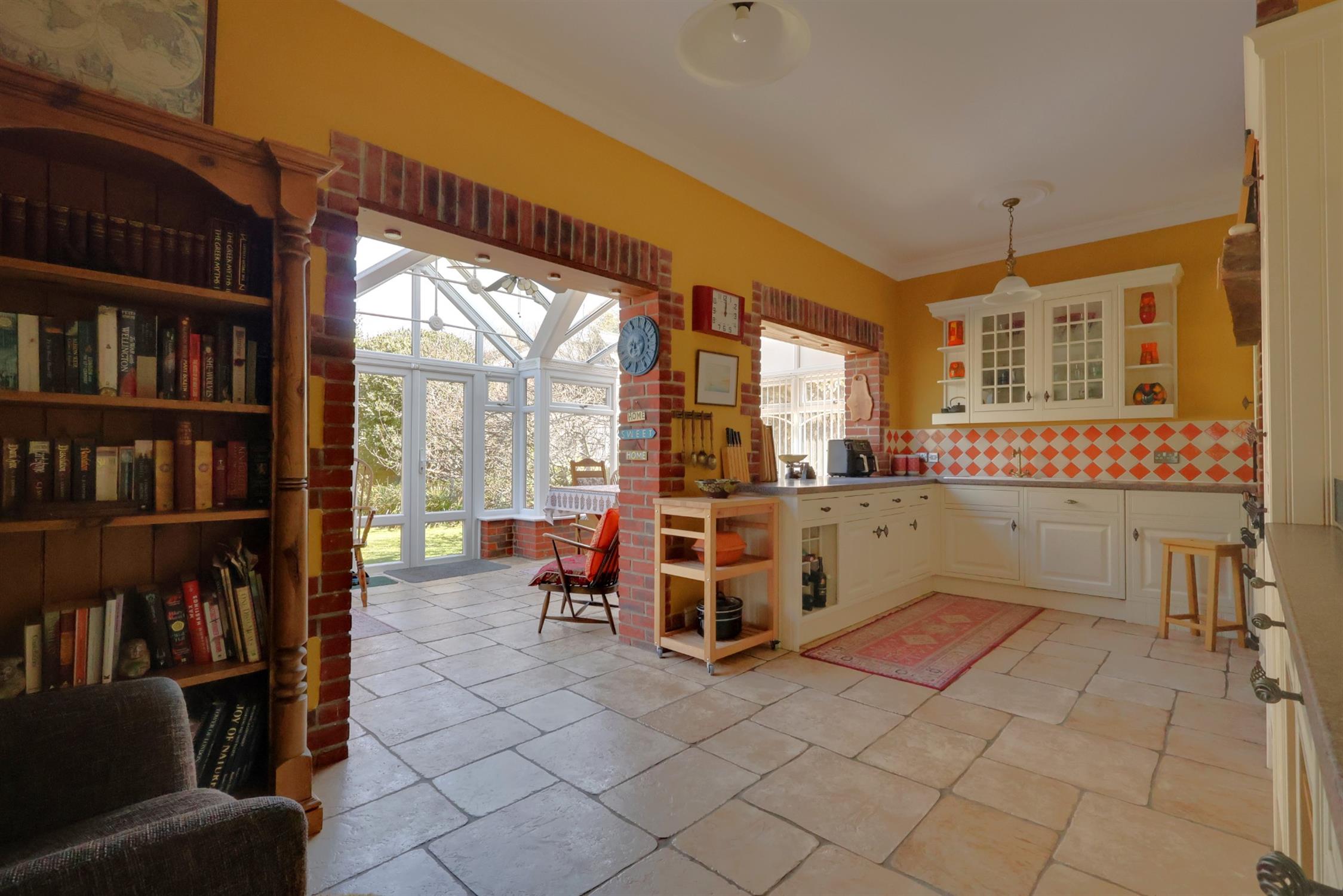 Radiator. Tiled flooring. Pantry cupboard. Door to the gardens.