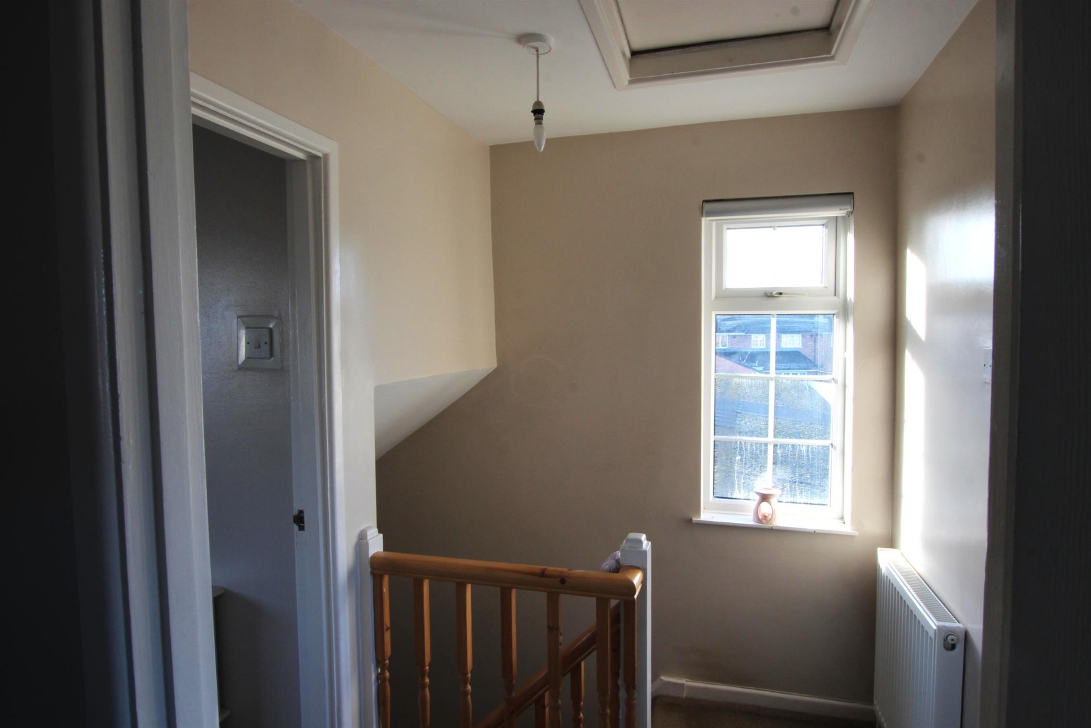 LANDING: Double-glazed window to top of the stairs, magnolia walls with radiator, cream carpet. The loft is out of bounds for the tenants.