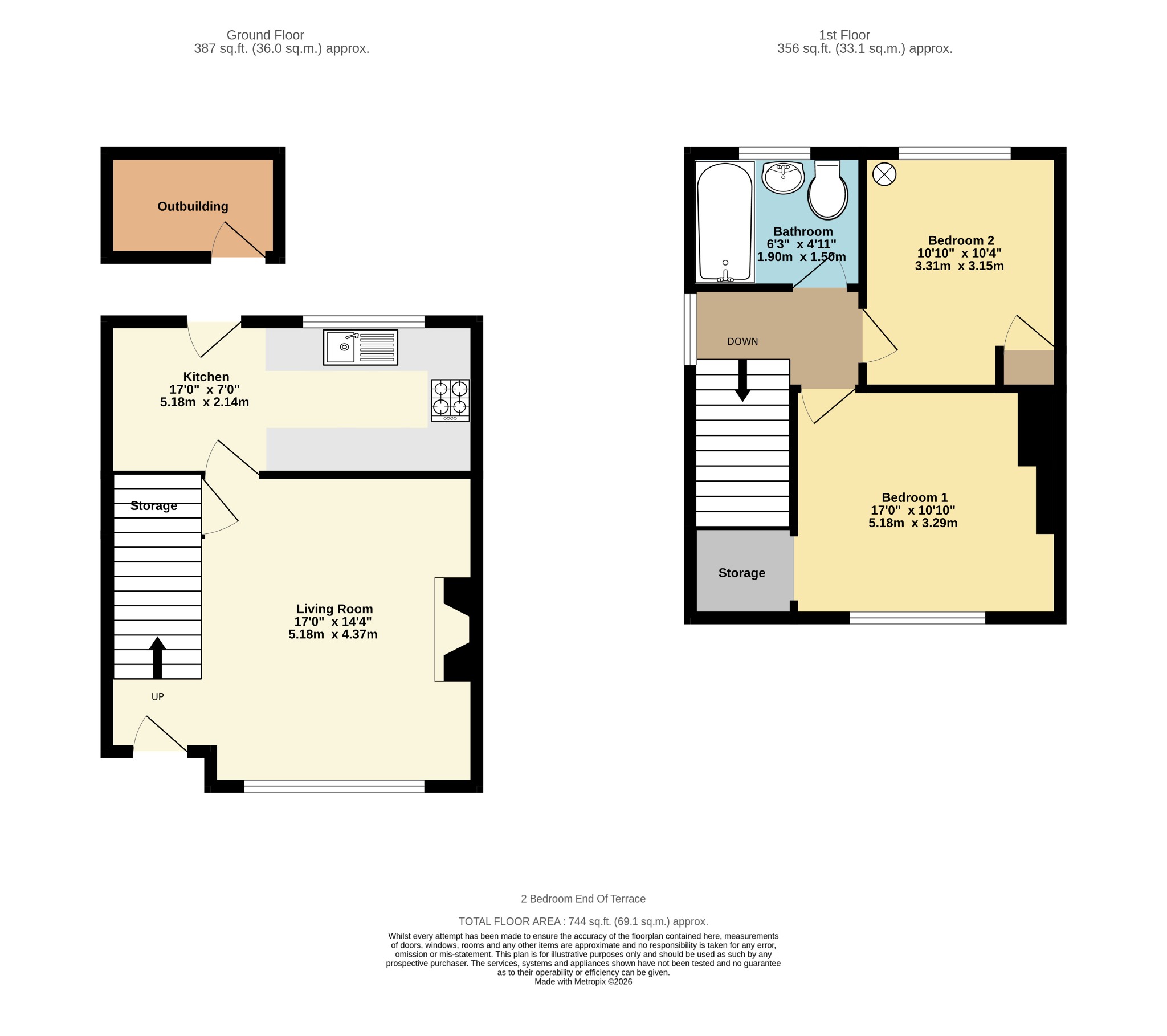 REAR GARDEN: Low-maintenance rear garden with side gated access from the front of the property, concrete pathway, small patio area and brick outbuilding for storage. The metal shed is out of bounds for the tenants.