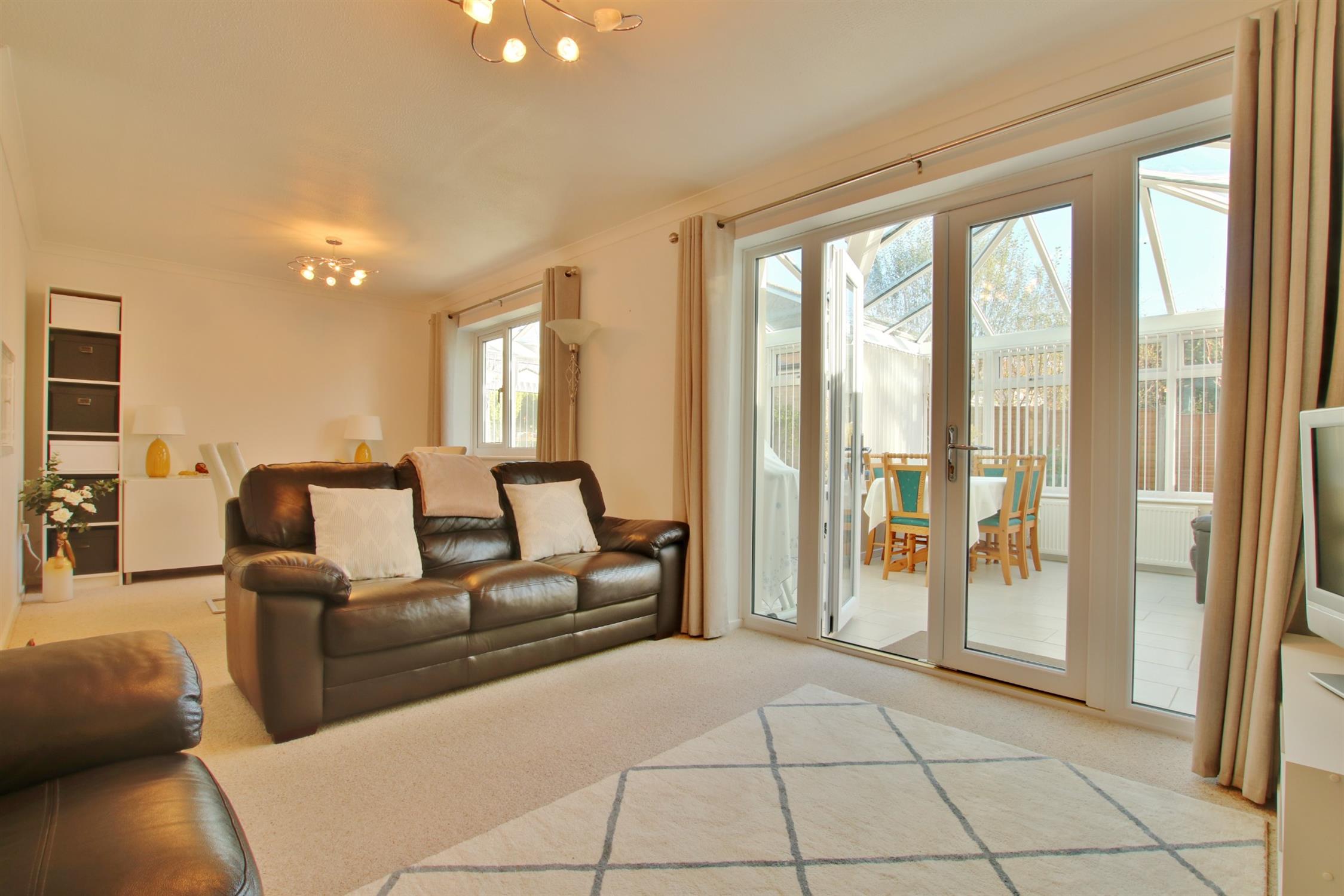 This is a beautifully presented 4 bedroom detached family house with a garage and off-street parking for at least a further two cars on the driveway in the catchment area of Mountbatten School. The property occupies an unusually broad plot being on the corner of the Close and therefore has a much bigger garden than you would expect, accessed from both a full width rear conservatory and the side. The accommodation is balanced with a good sized kitchen with side access, 6.5m sitting room opening to a 6.5m conservatory. There is also a downstairs WC. The house is well located for local shops and schools.