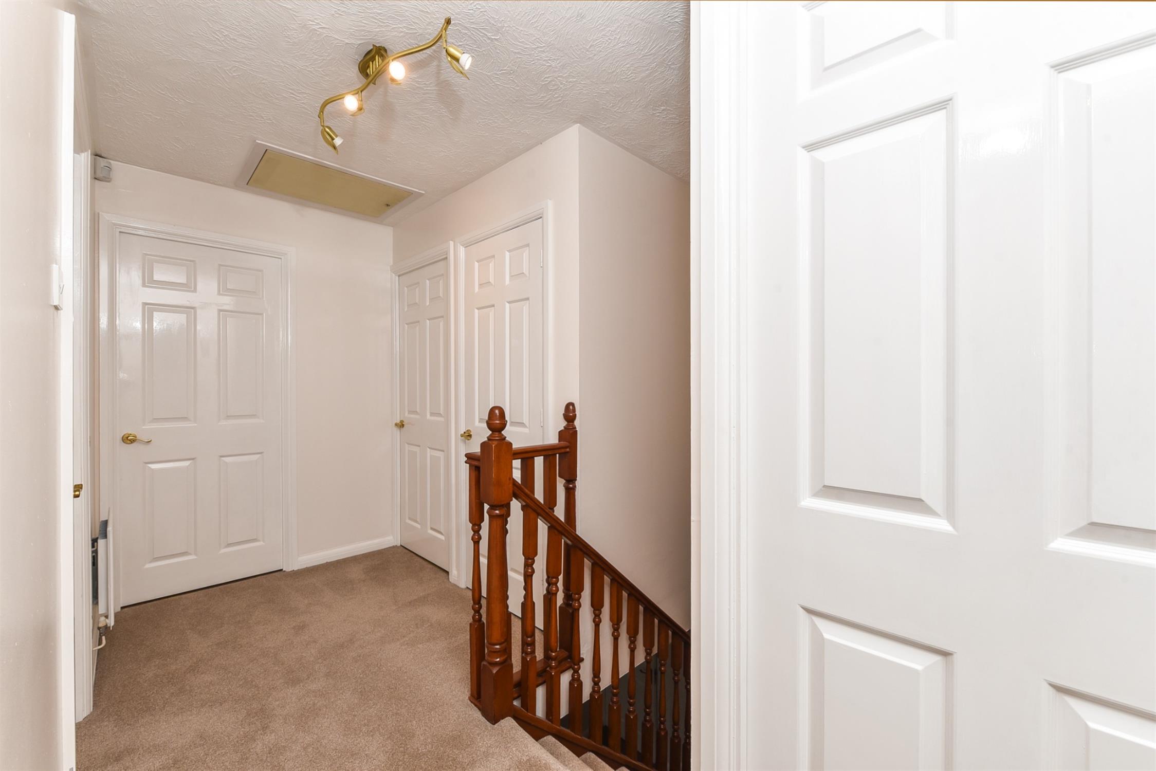 Access via hatch to loft space, built-in airing cupboard housing water cylinder and shelving, doors to all bedrooms and bathroom: