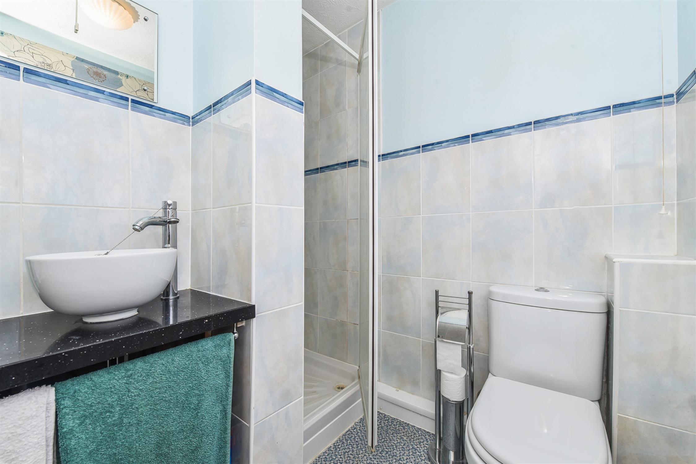 Shower enclosure with power shower, low level WC, vanity unit with wash basin, heated chrome towel rail, double-glazed window to the front aspect, tiling to principal areas.