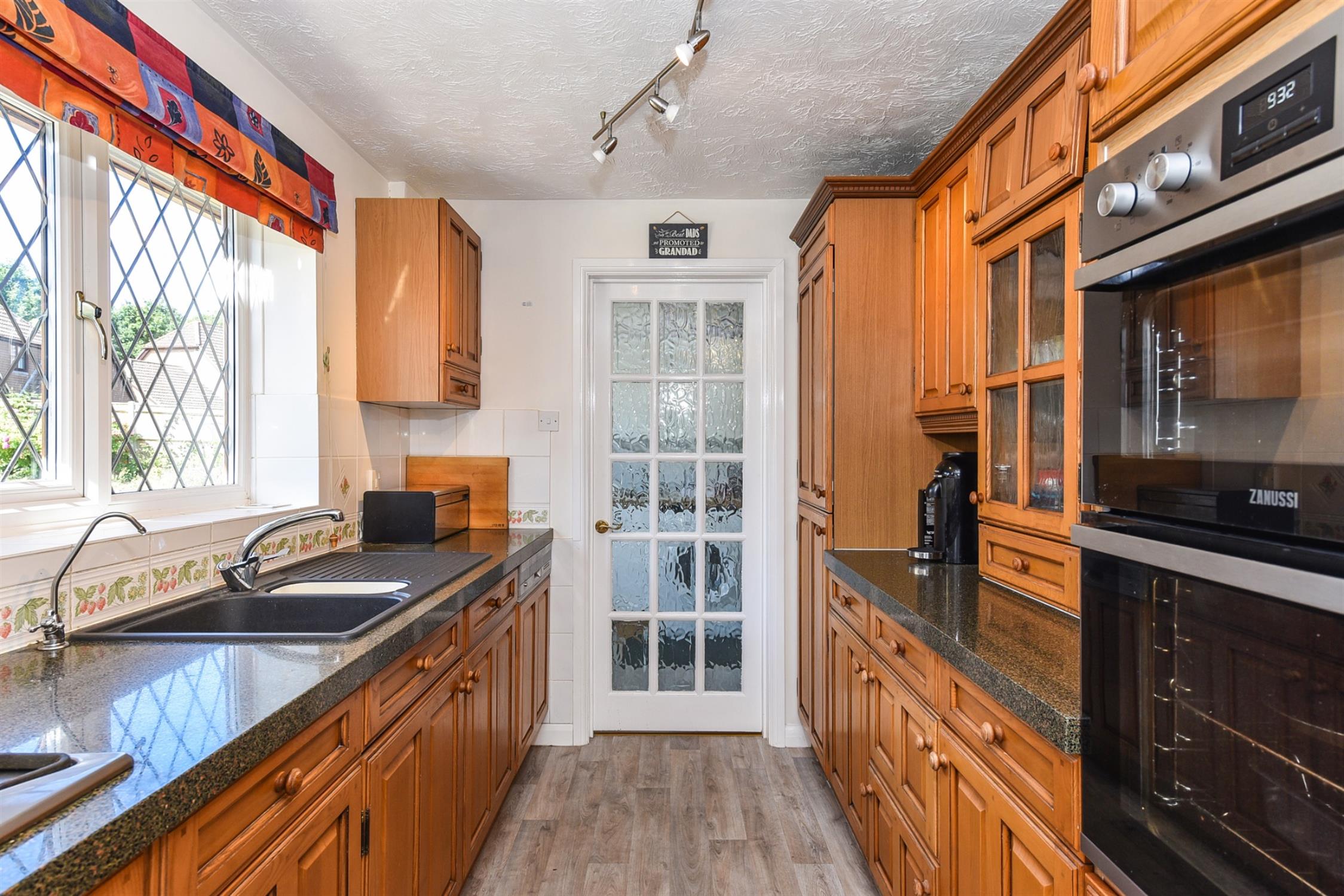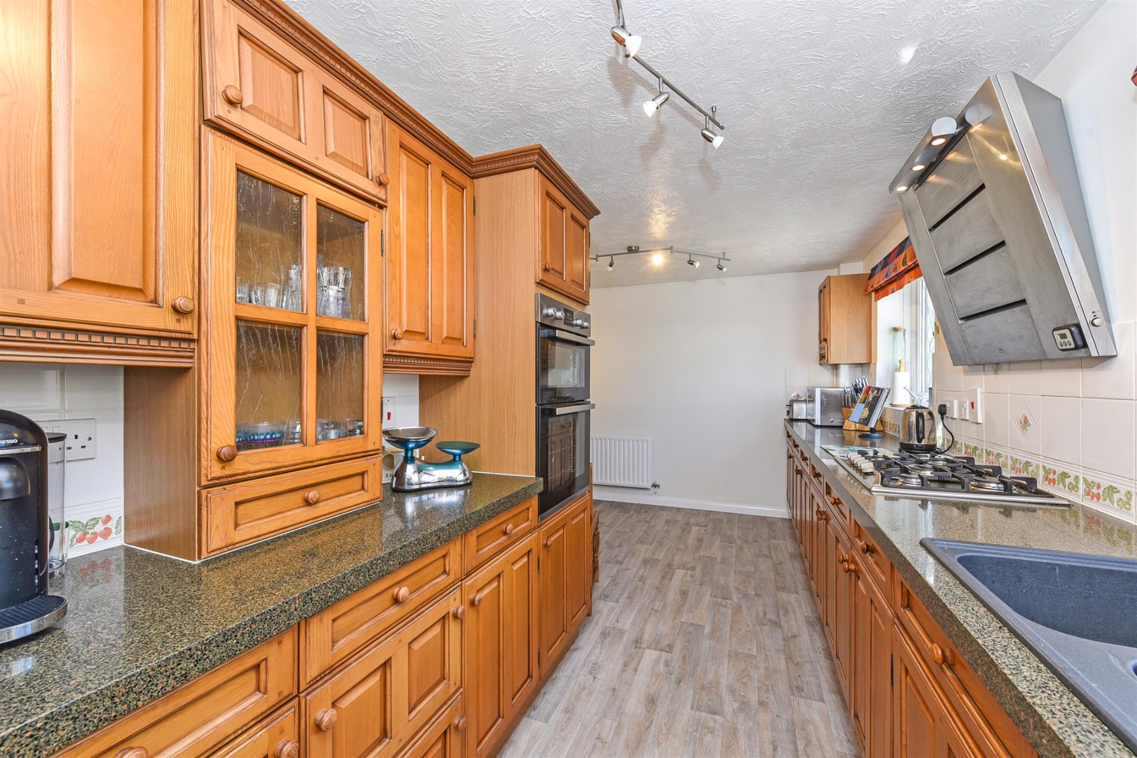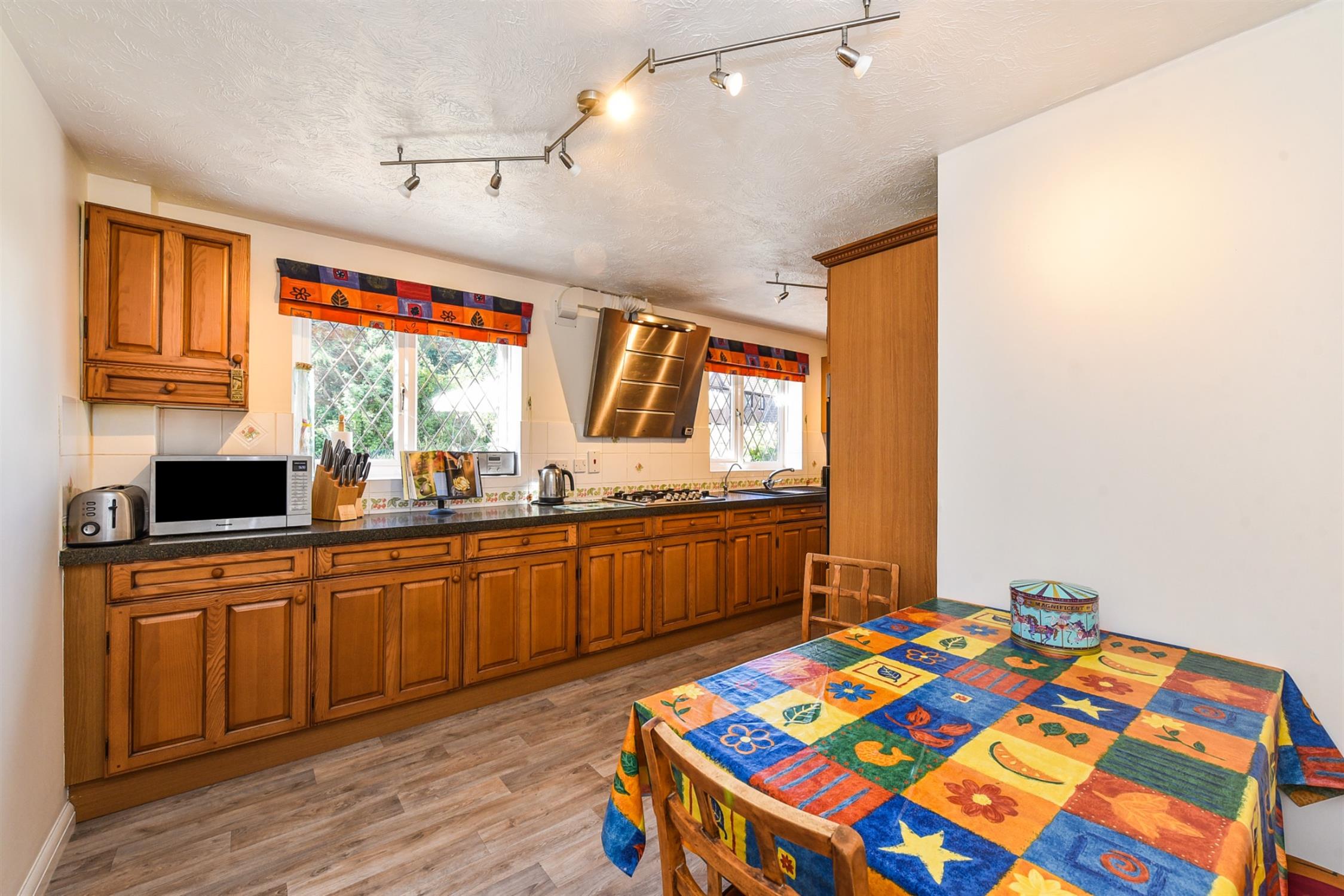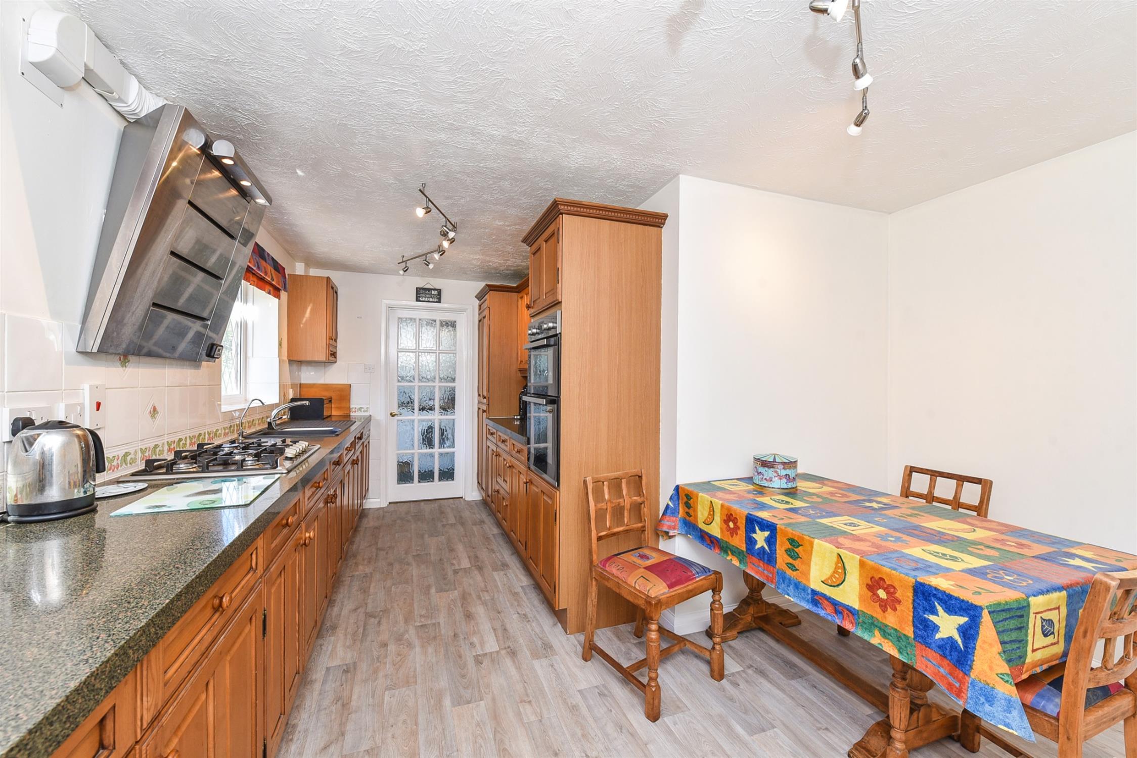 Good range of base units with work surfaces over, ceramic tiled splashbacks, polycarbonate sink, space and plumbing for washing machine, space for tumble dryer and fridge, radiator, double glazed window and door to rear aspect.