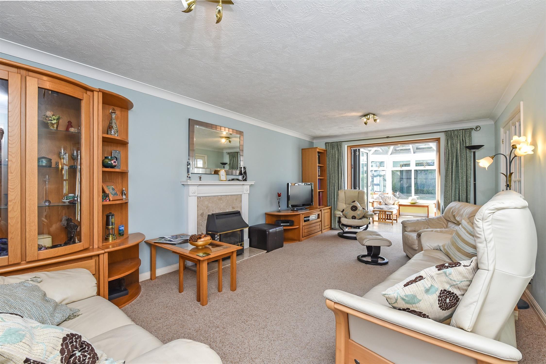Wall mounted fireplace with fitted gas fire and marble hearth, double glazed window to front, two radiators, TV aerial point, double glazed bi-folding doors opening to conservatory, glazed doors to: