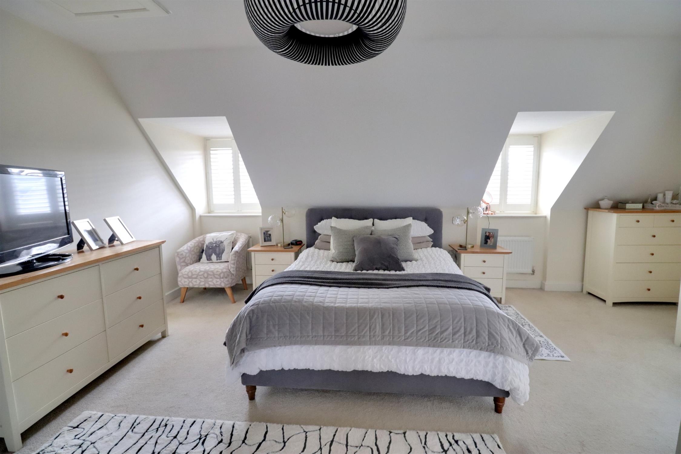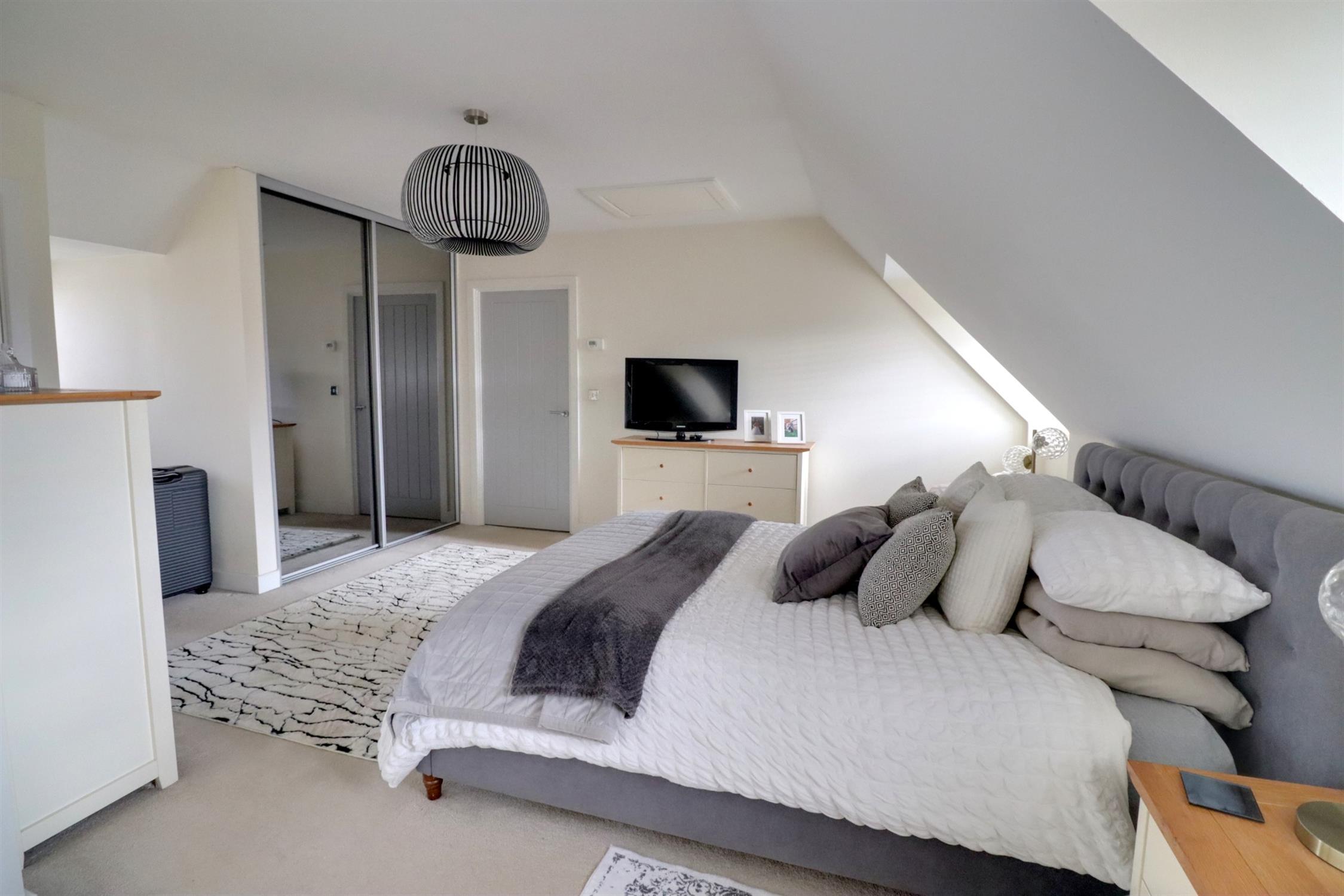 Two front aspect double glazed dormer-style windows and one to the rear, all with fitted shutters, three radiators, built-in cupboard, built-in mirror fronted wardrobe, door leading to the en-suite.