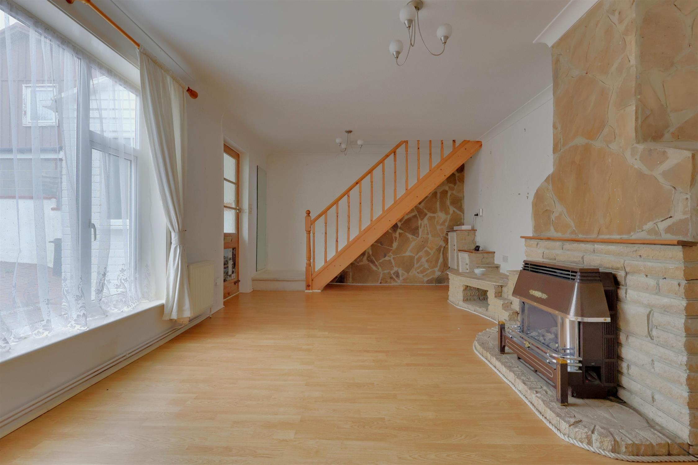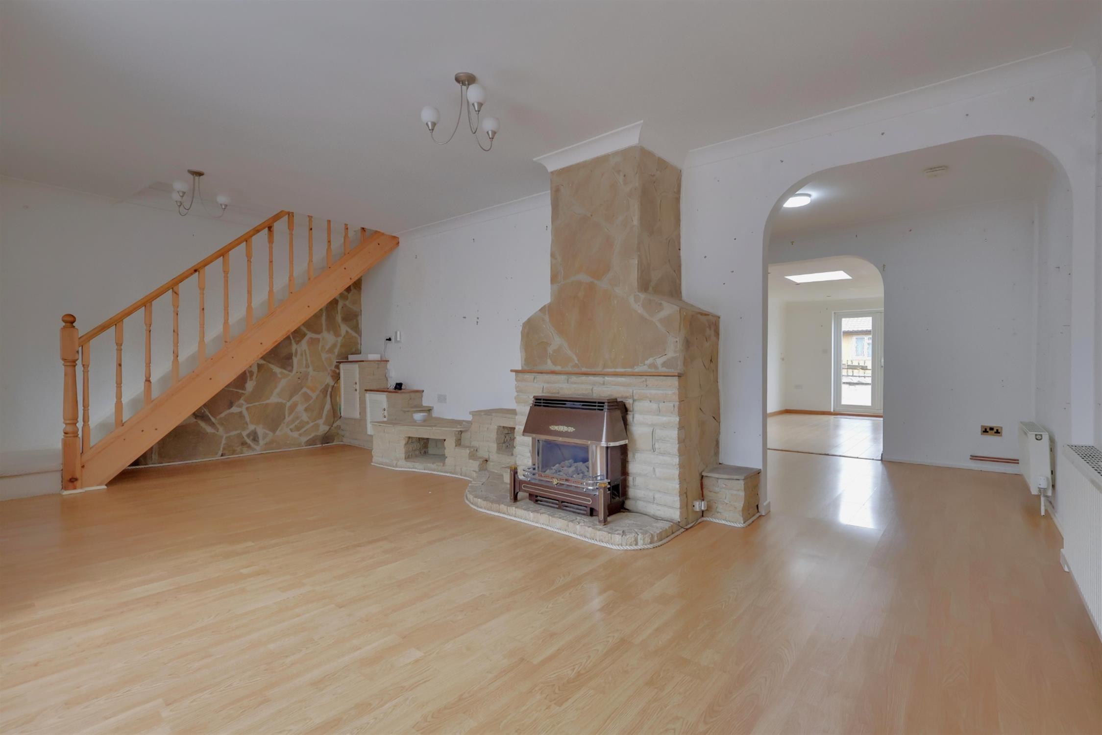 A three bedroom, end-of-terrace family home that is being offered with no forward chain. The property has been extended on the ground floor to provide spacious and versatile living accommodation. To the front of the property is a gated entrance and an attractive, block paved driveway providing parking for many vehicles. There is a south facing rear garden which has been landscaped for low maintenance. A porch entrance provides access to the sitting room with a gas fireplace. There is an opening which leads to the kitchen which benefits from a range style oven and a further opening into the lounge area.