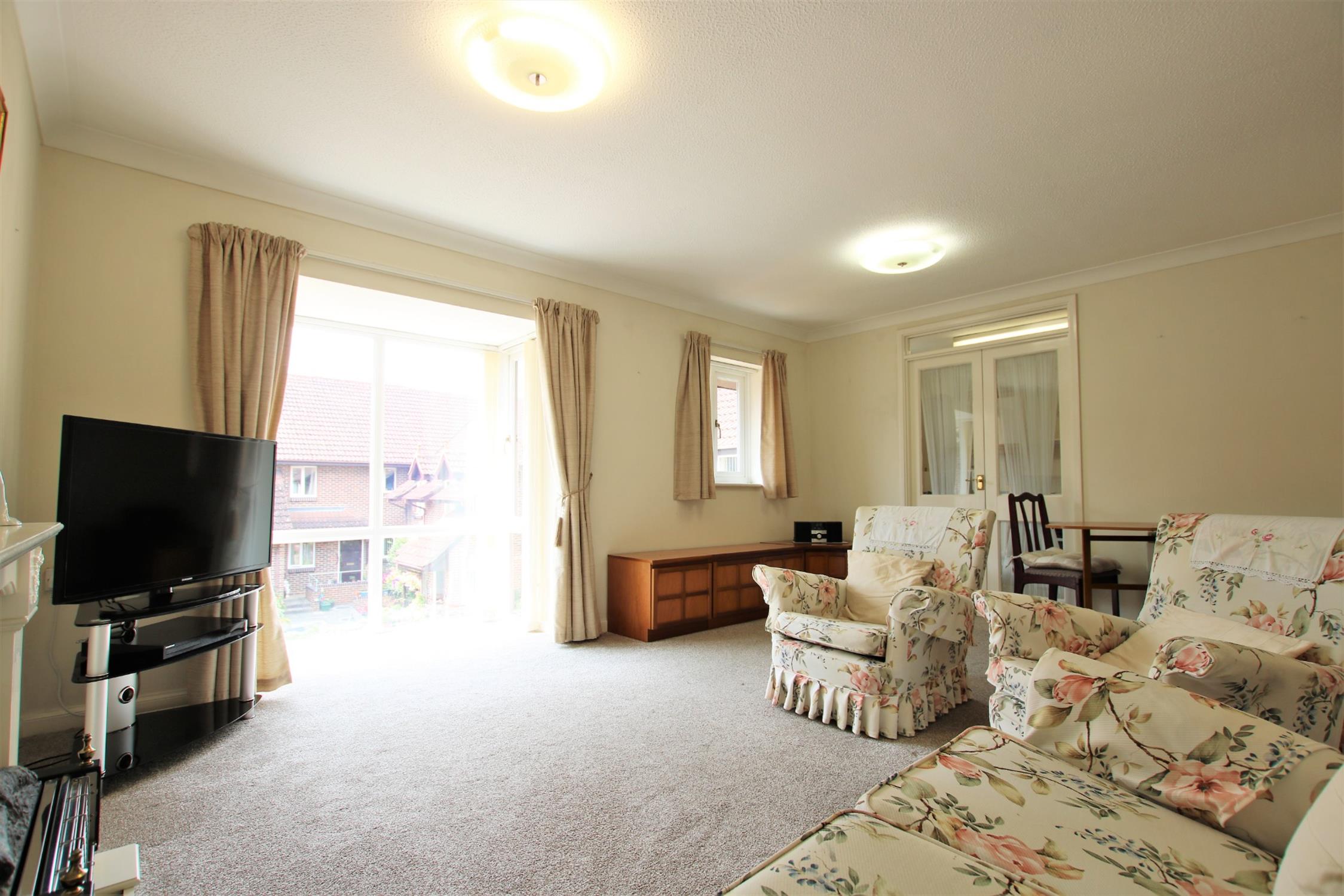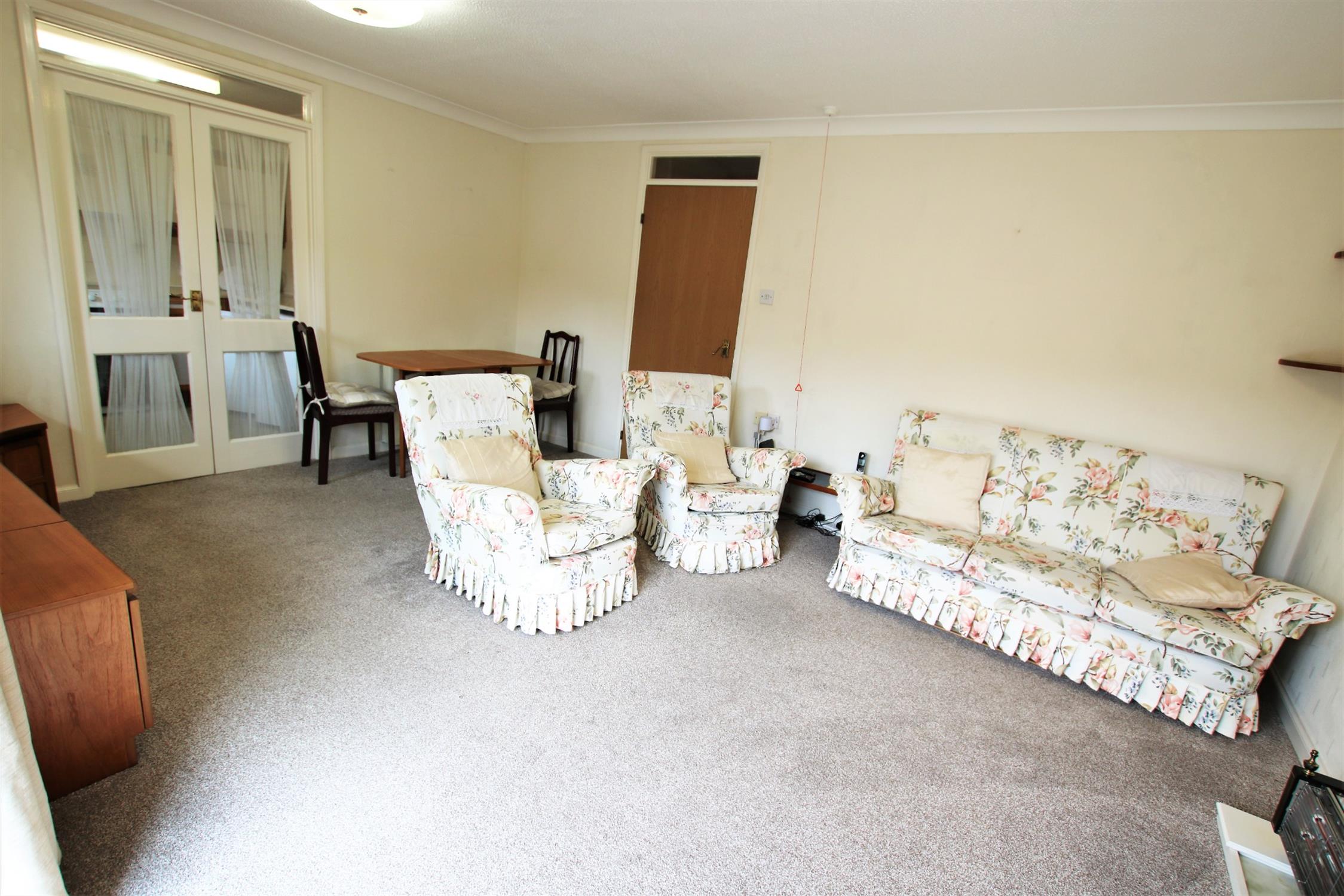 Full height double glazed box bay window overlooking the communal residents gardens, electric storage heater, further double glazed window, electric fire with decorative timber surround, TV aerial point, telephone point,dimplex electric storage heater, emergency pull cord, glazed doors to:
