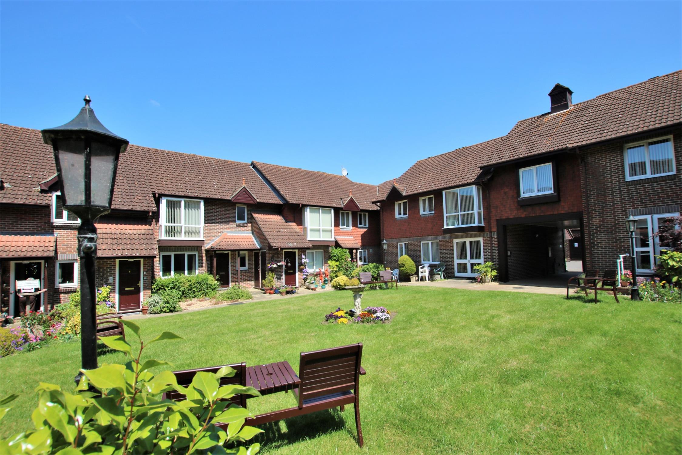 Beautifully maintained residents' gardens with areas of lawn, shrub flowers, communal seating areas, residents' and visitors parking.