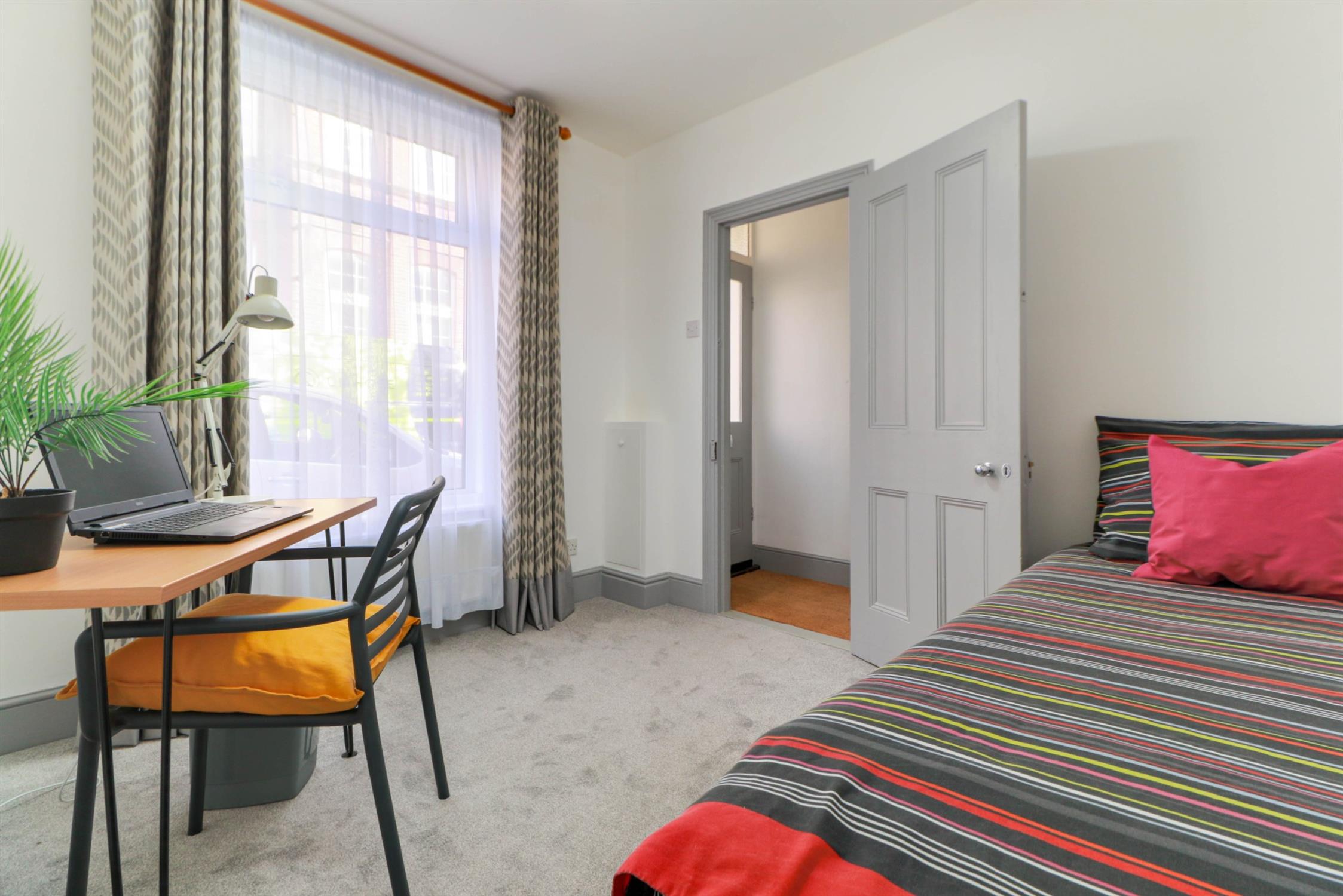 Smooth ceiling, double glazed window, radiator, shelved cupboard, fitted carpet.