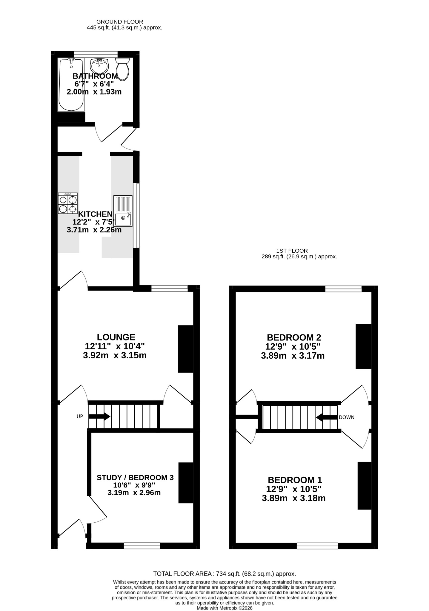 To the rear, the kitchen/breakfast room is a standout feature, offering ample worktop and storage space along with a practical breakfast bar for casual dining. A ground floor bathroom completes the downstairs accommodation. Upstairs, the property comprises two generously sized double bedrooms, both offering plenty of natural light and space for furnishings. Externally, the south-facing garden is a real highlight, enjoying sunshine throughout the day. It features a patio area for outdoor seating, a small lawn, and a large storage shed - ideal for additional storage needs. Overall, this is a well-presented and versatile home in a convenient location, ready for its next owners to move straight into and enjoy.