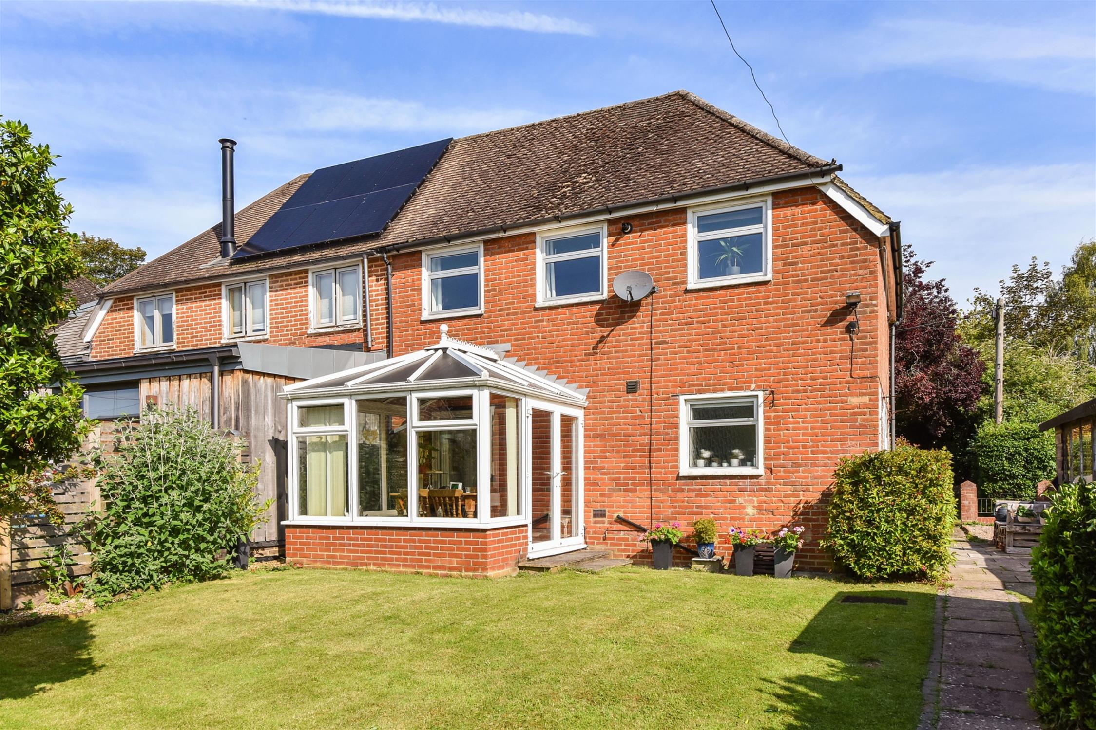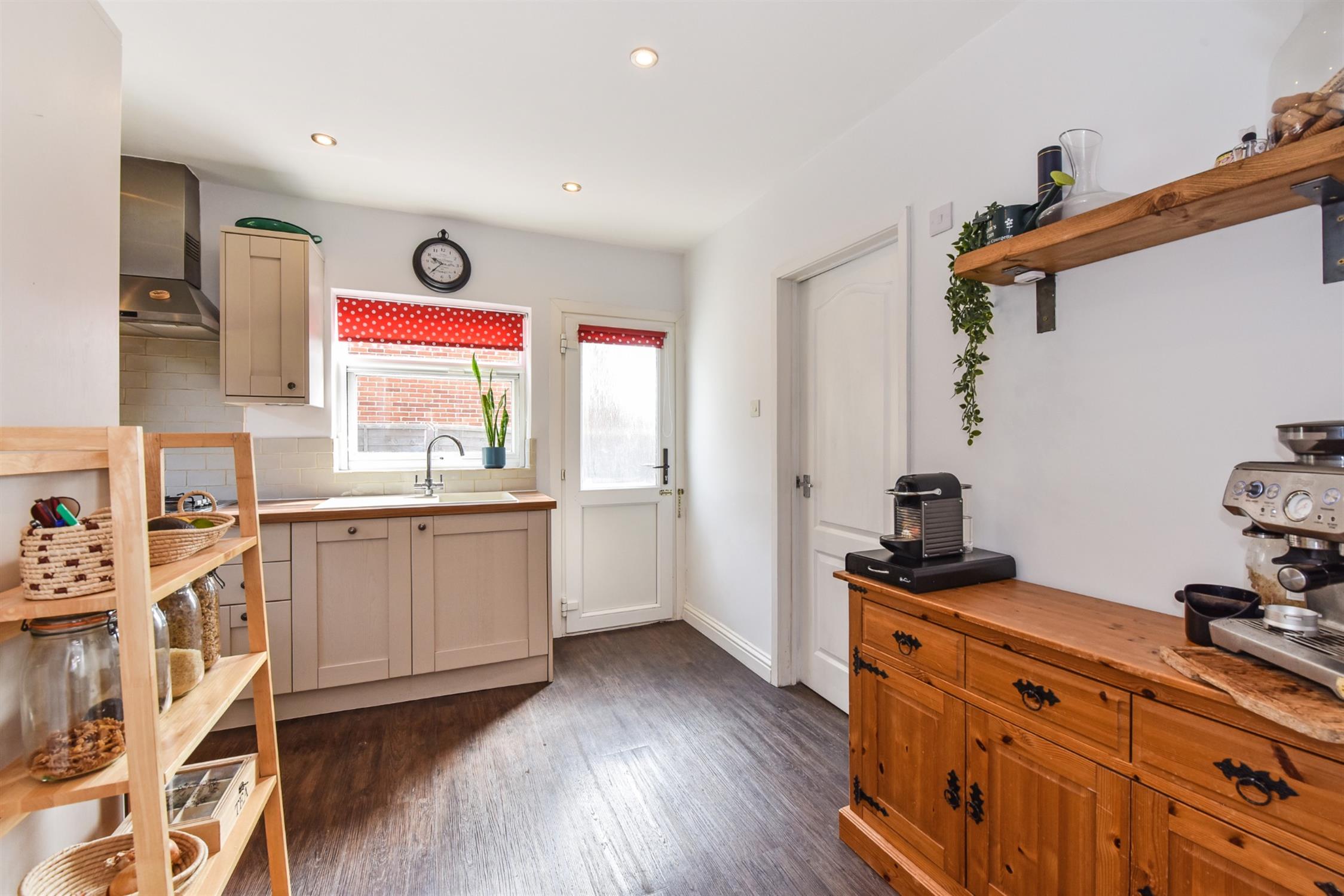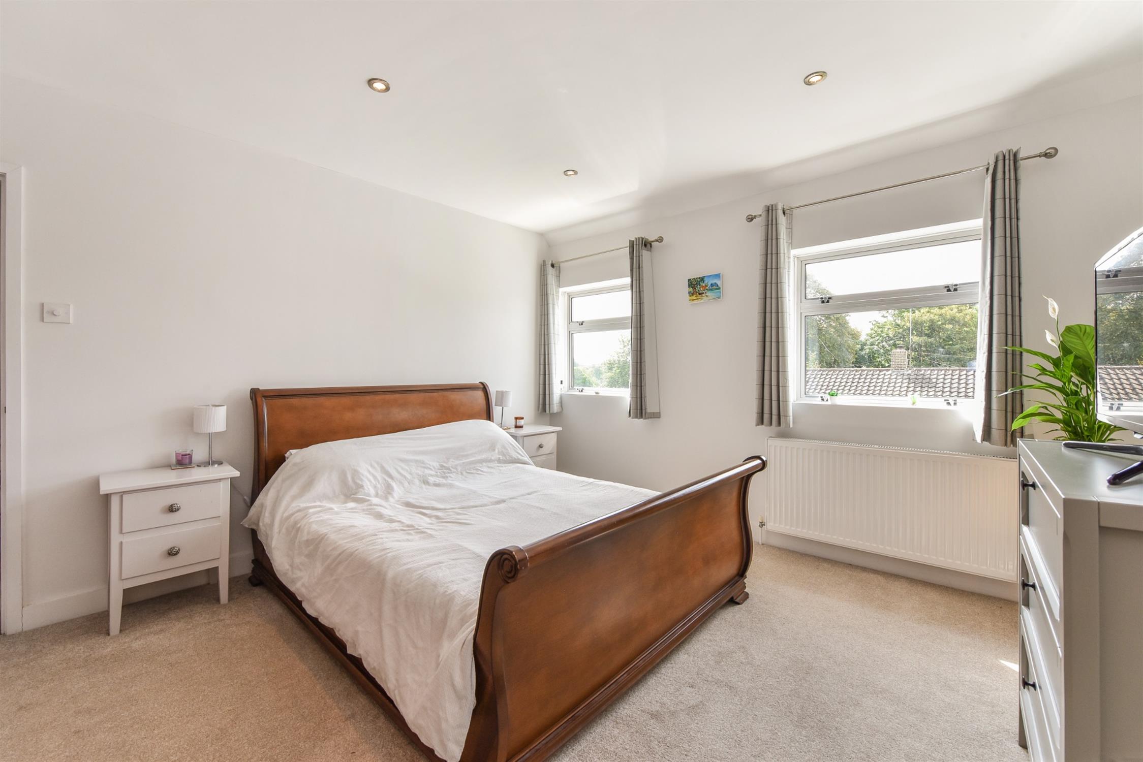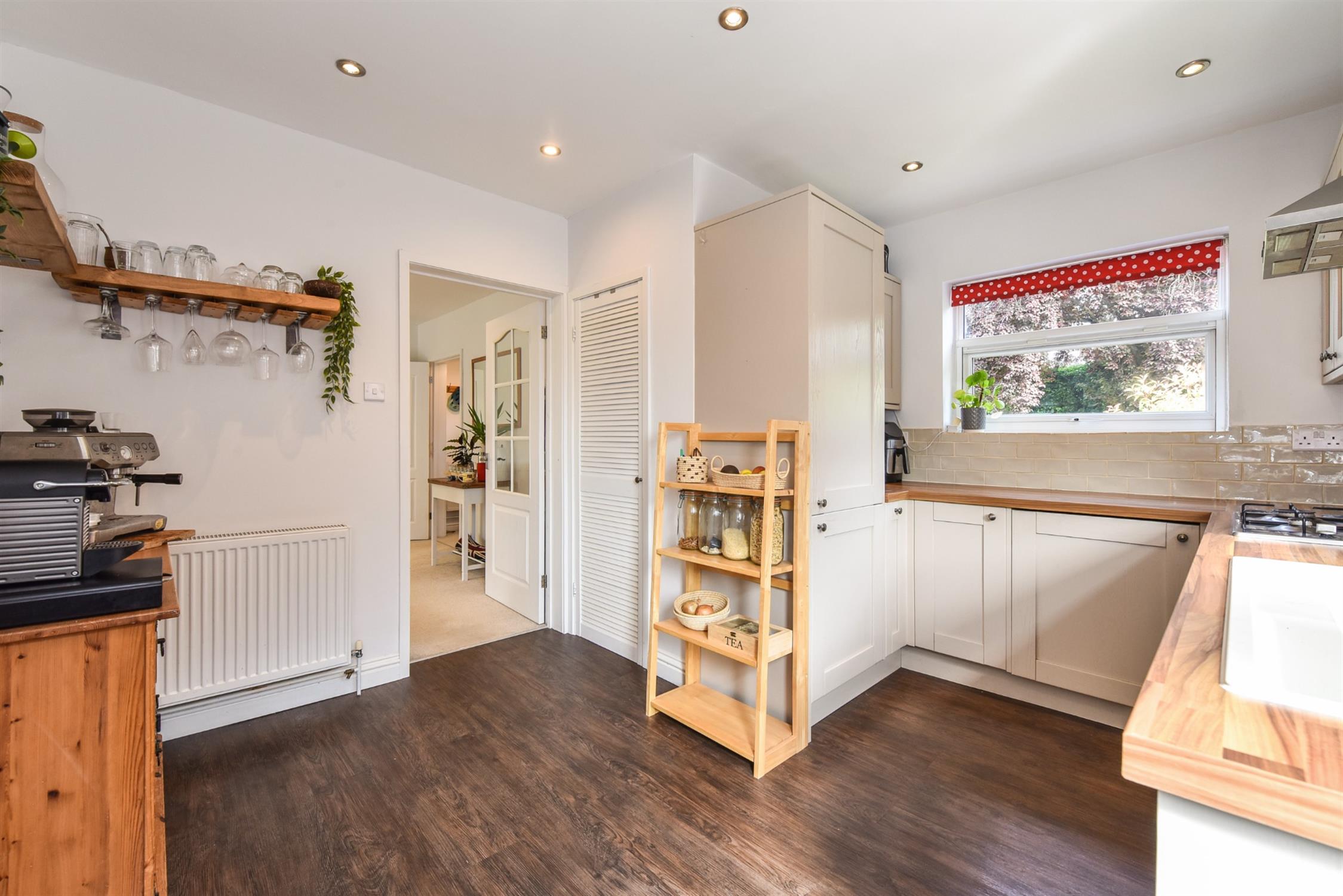 The property is set back from the road and can be approached via a pedestrian path to the front, or access from the rear. To the front of the property is a neat front garden with planted beds, lavender and lawn. Path to the front door.