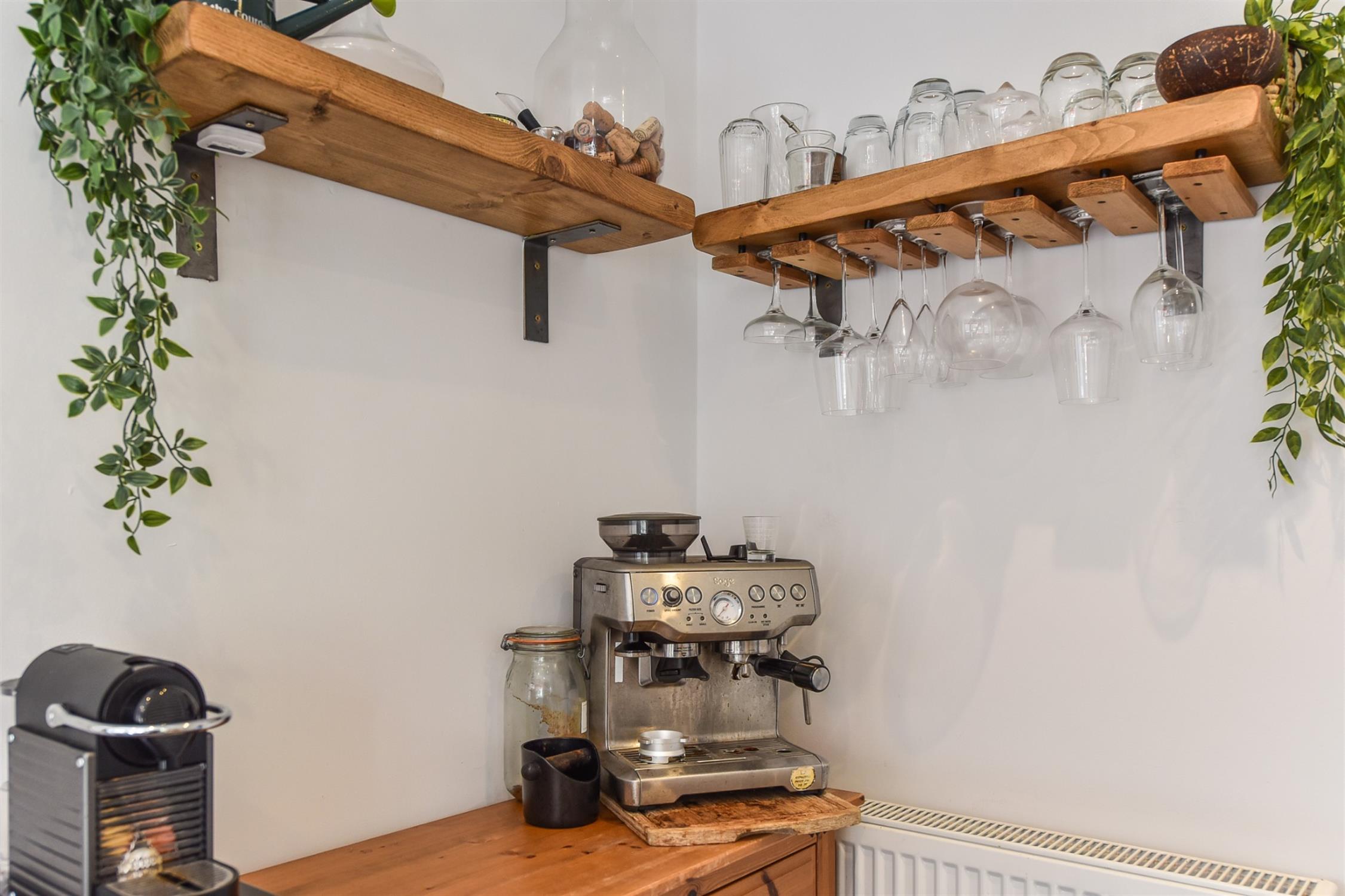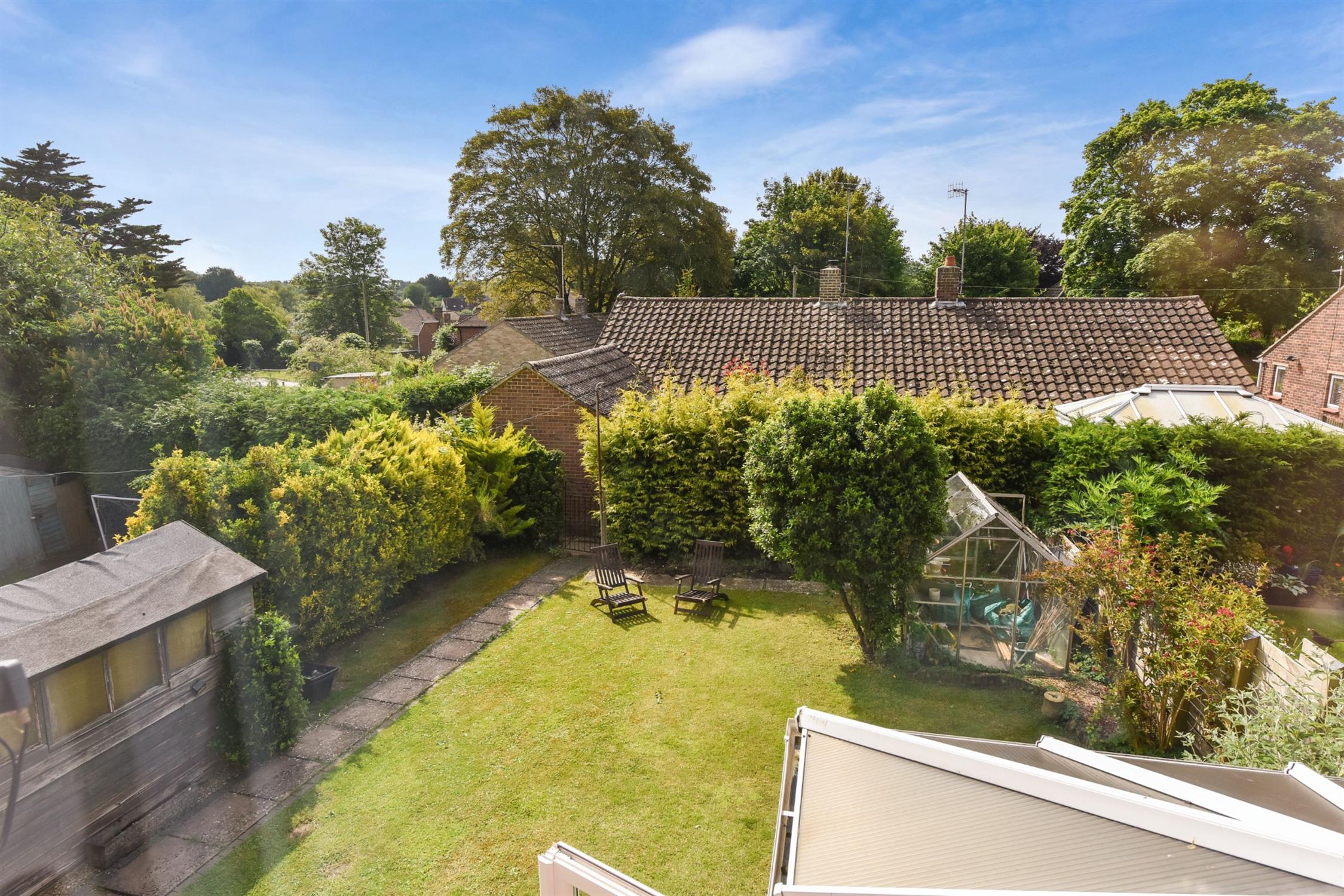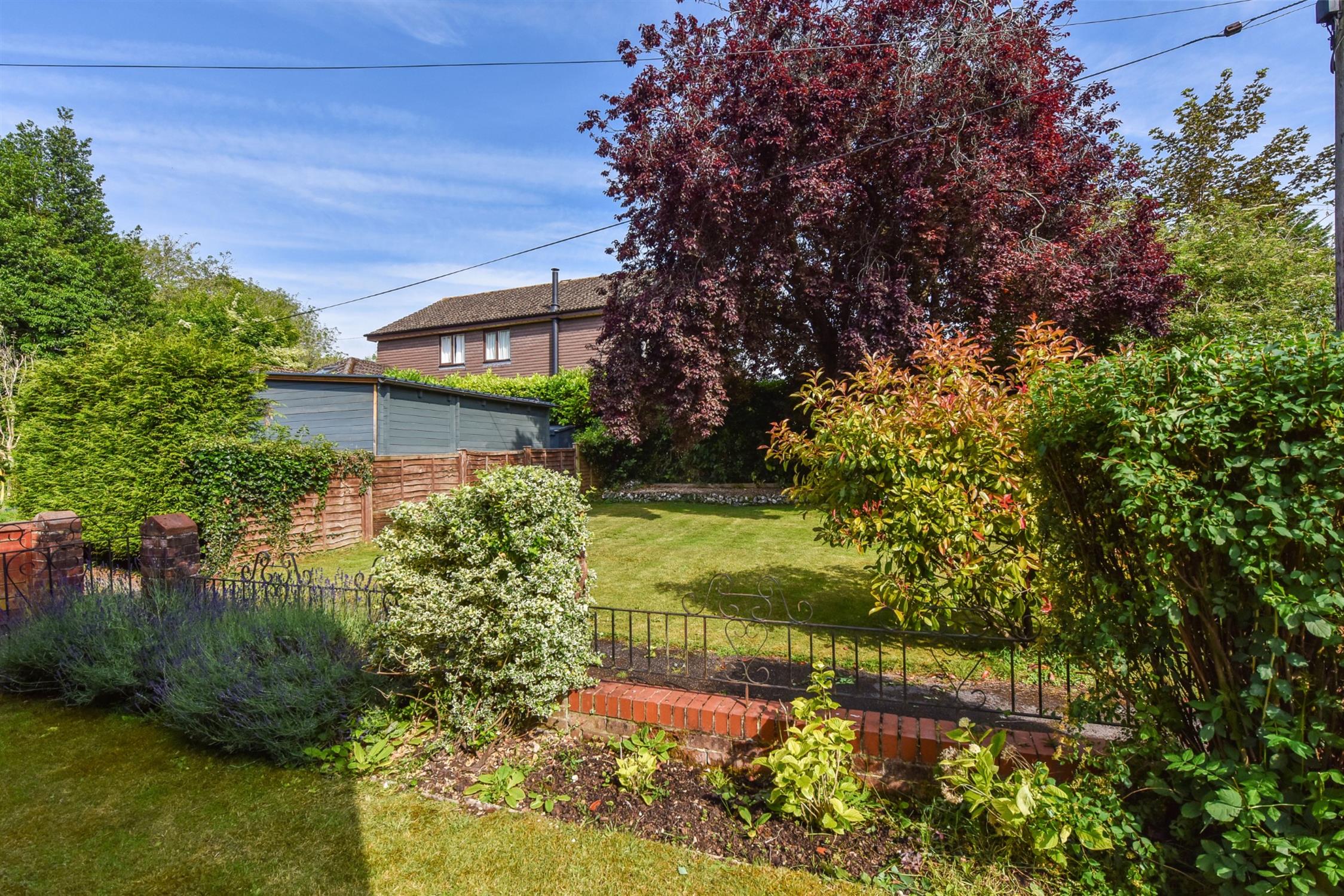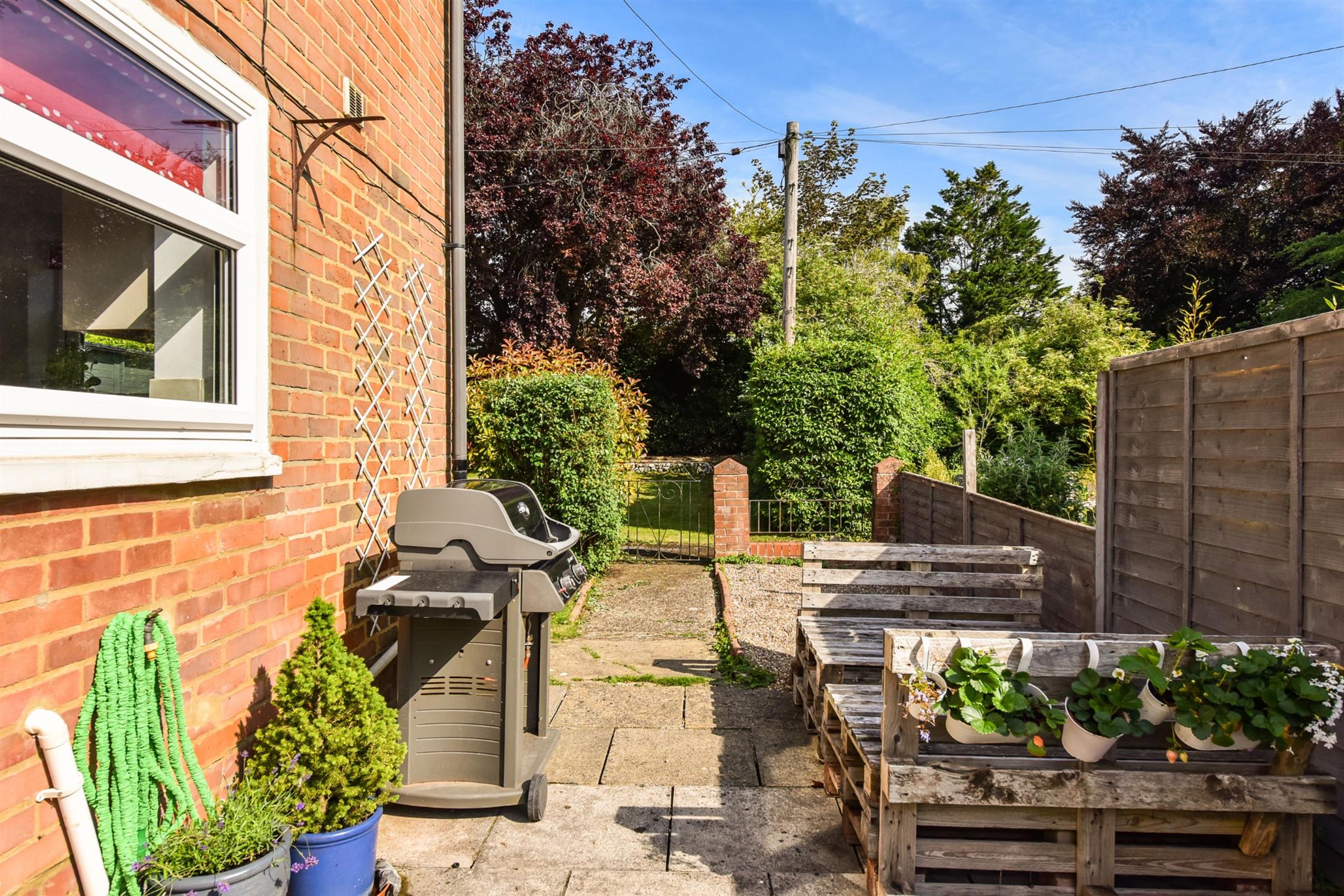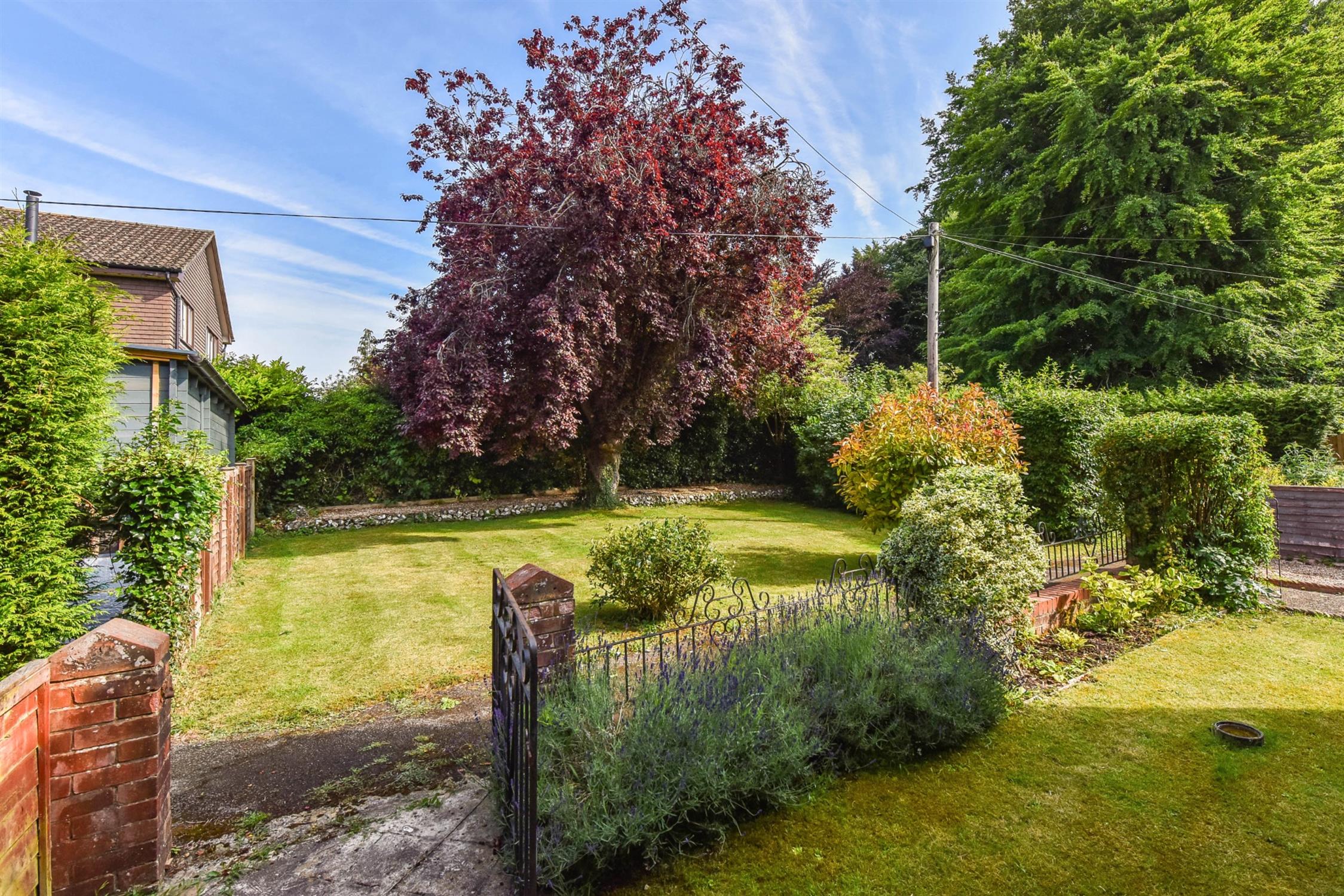 There are two gardens, a lovely garden to the front of the property across the path, with flint border to the rear, mature tree and lawn. The side return offers a wide space for seating and entertaining and path to the shed.