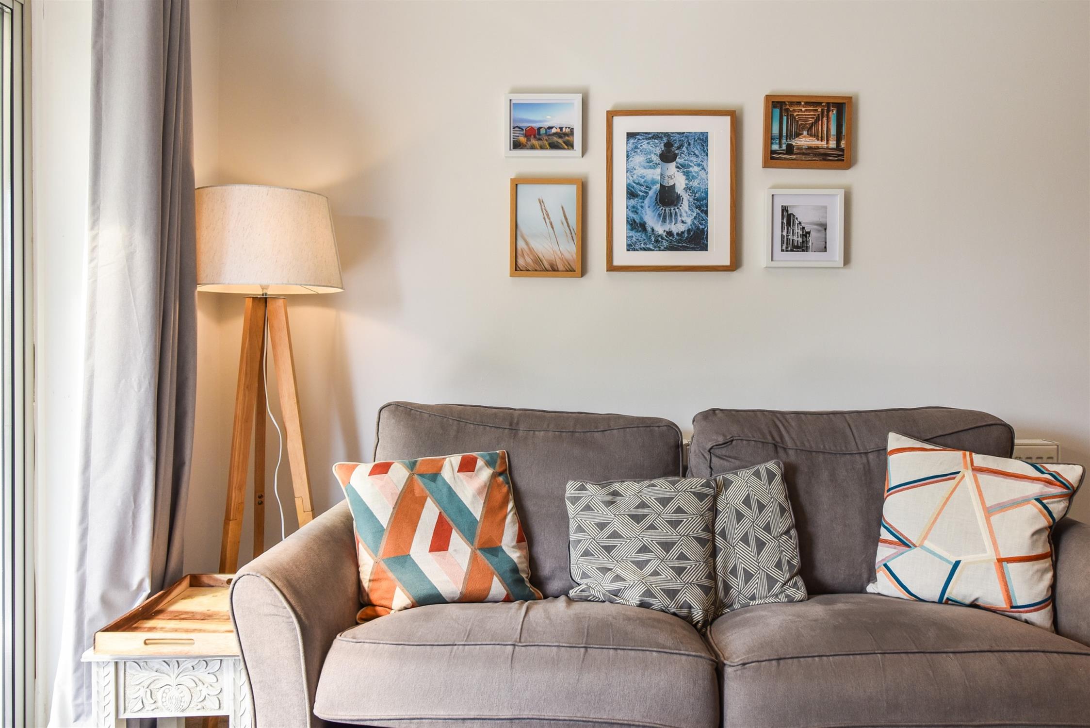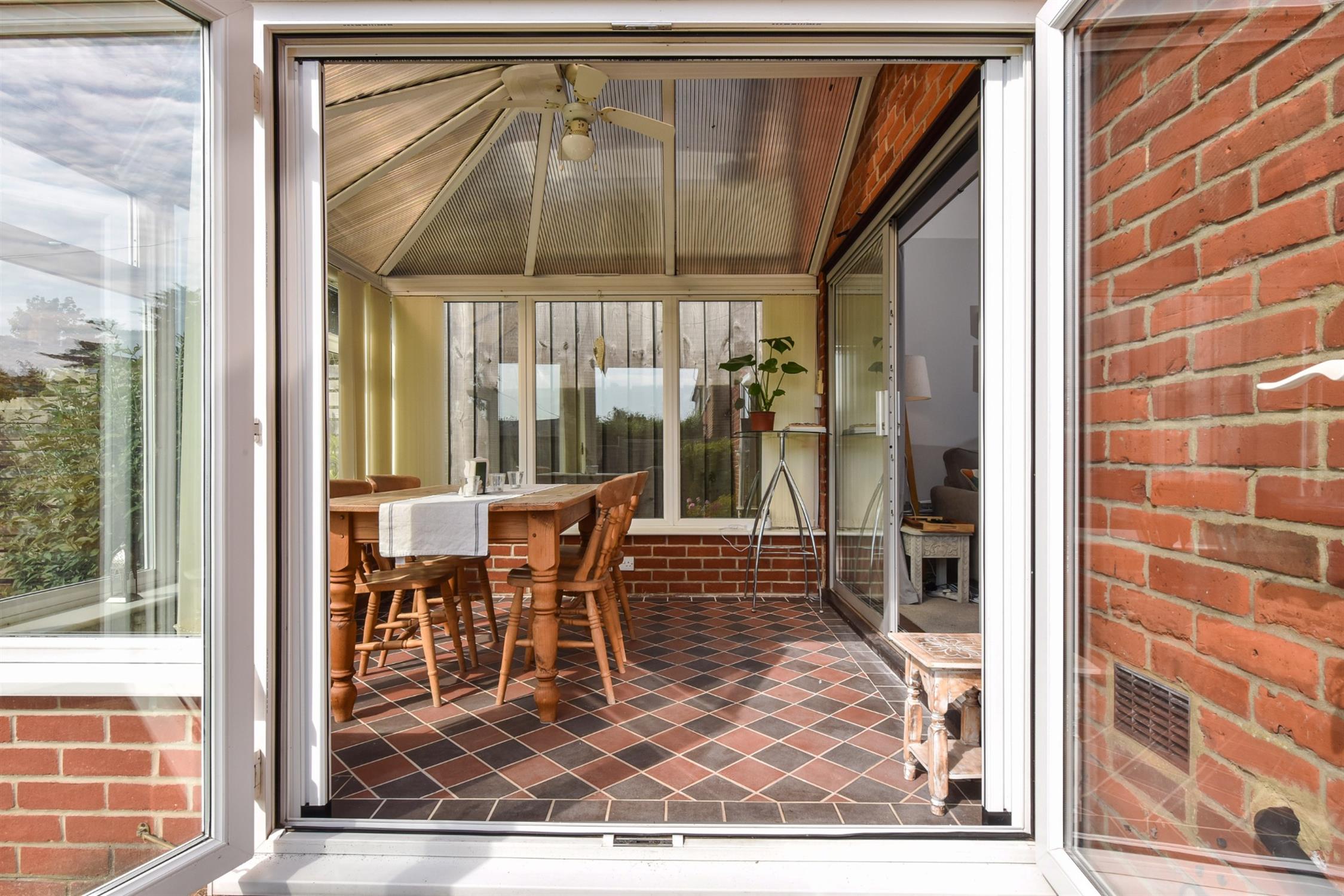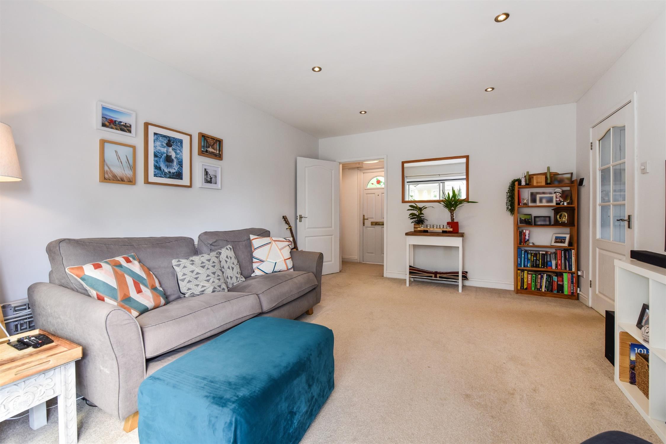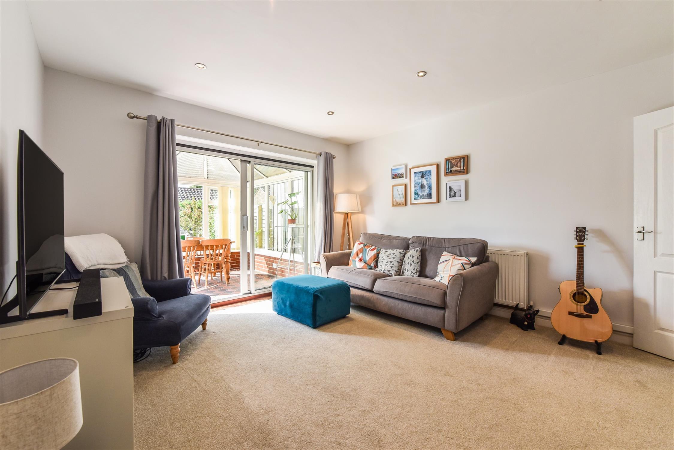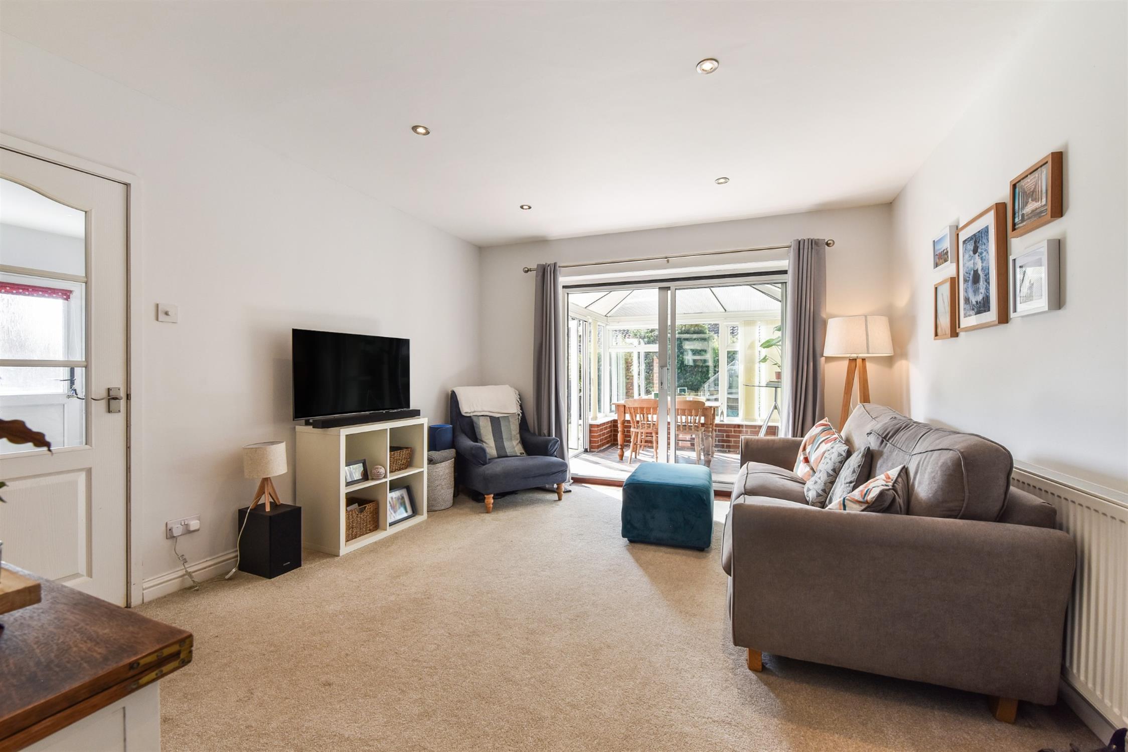 A lovely cosy space with aluminium sliding doors to conservatory and glass-panel door to kitchen. Dimmable halogen downlighters.