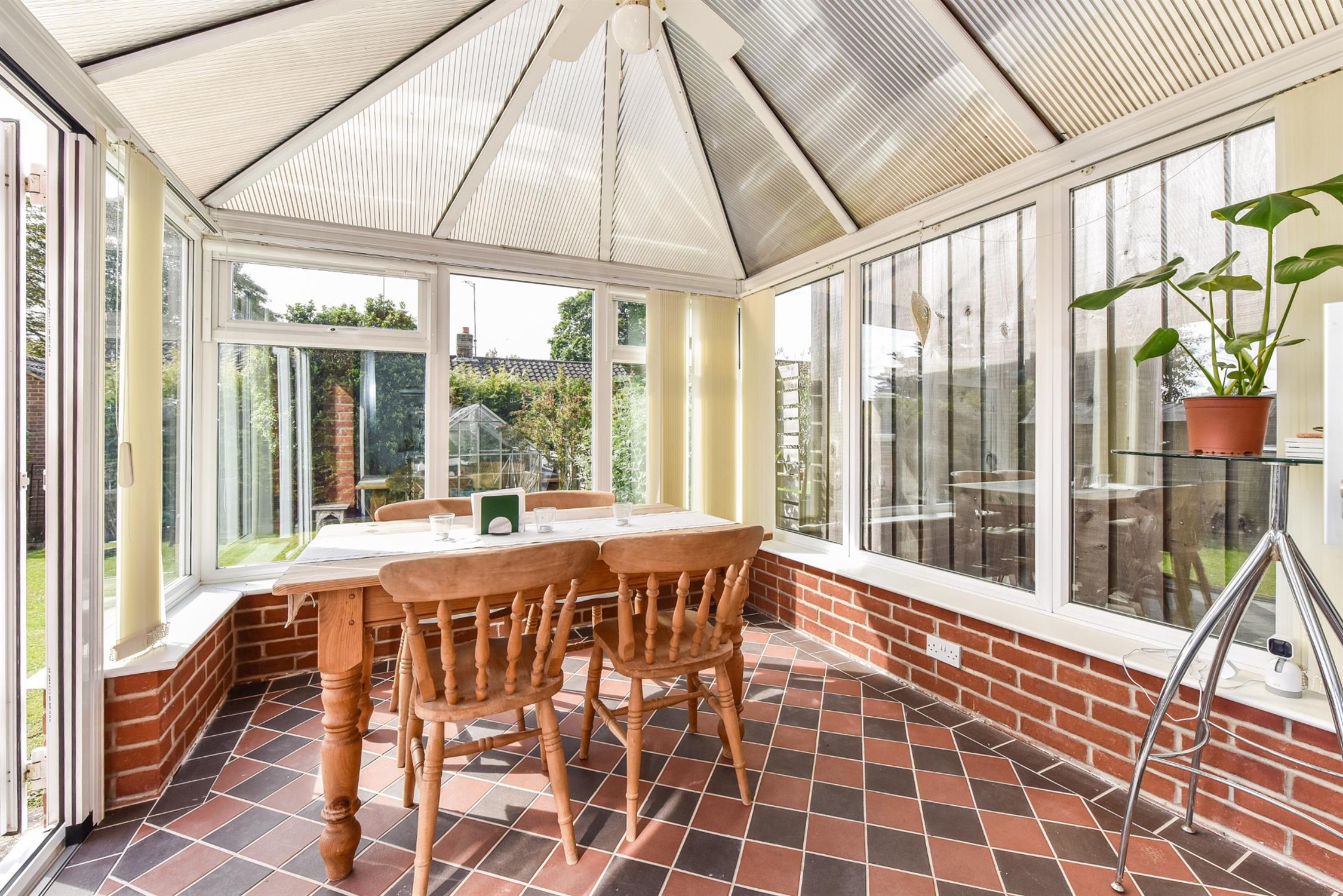 Fully tiled floor, large format windows, obscure roof and double doors to the rear garden.