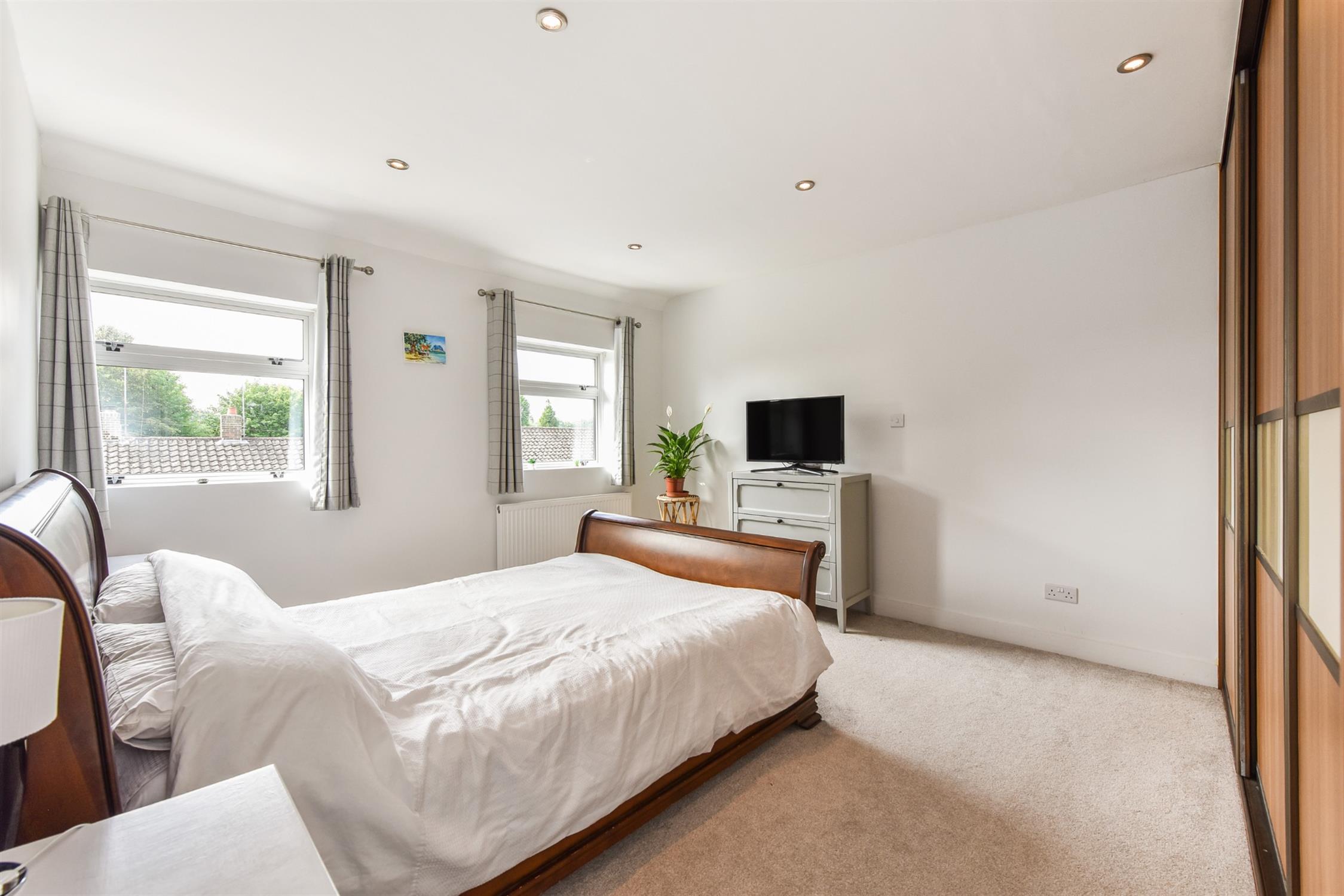 A generous sized double. Fitted triple wardrobe with sliding doors. Further eaves storage within the wardrobe.