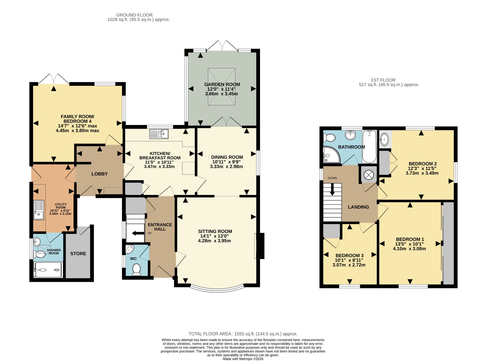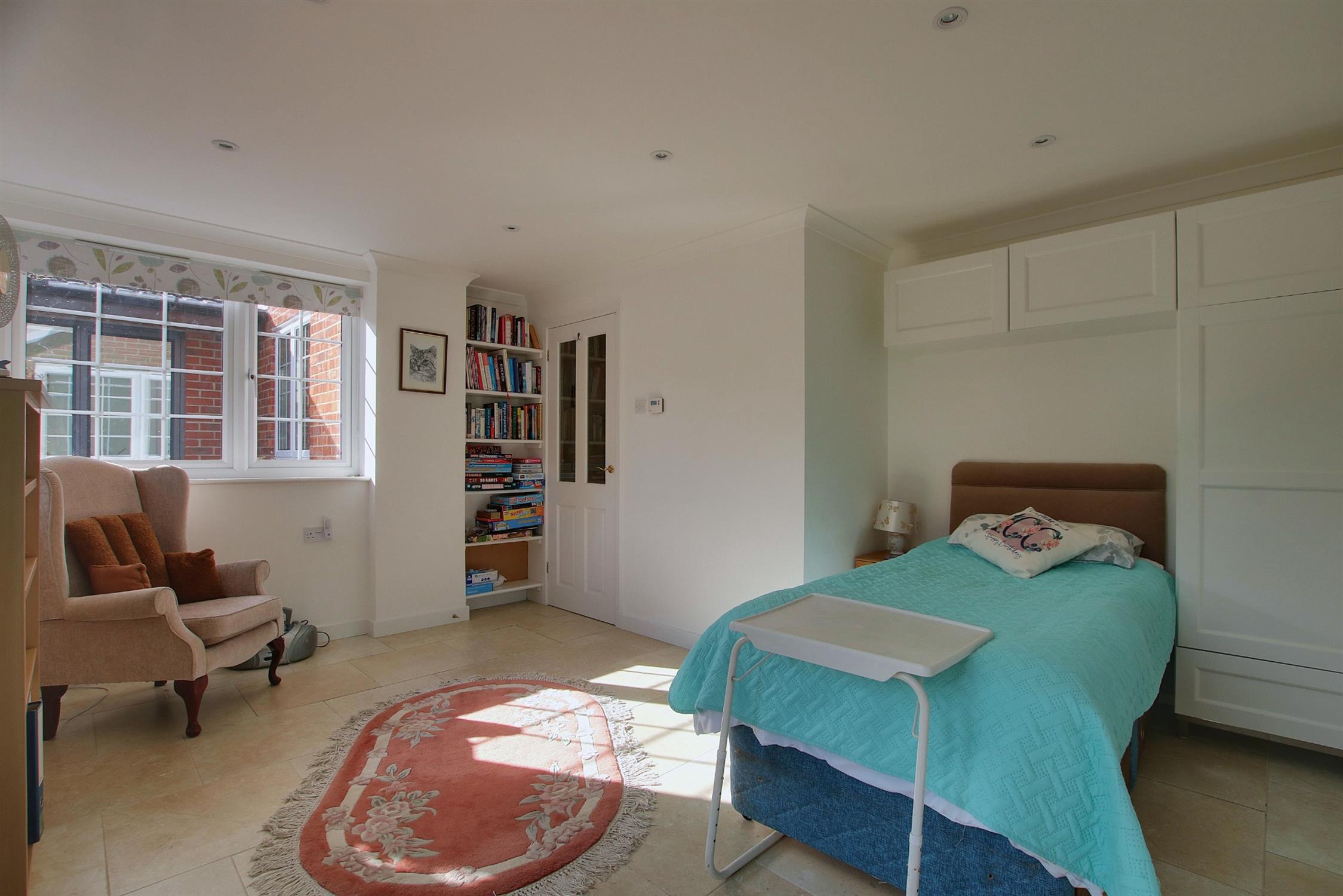 The front door opens into a welcoming entrance hall which contains the stairs to the first floor with useful storage under and has an adjoining cloakroom with WC. The sitting room with bow window and fireplace with inset wood burner enjoys a pleasant front aspect, and there is an open square archway connecting with the dining room which, in turn, has double doors into the garden room, a splendid addition to the property enjoying a lovely outlook over the garden and a lantern roof window which allows natural light to flood in creating a wonderful room to relax and unwind. The kitchen is well-fitted with a range of modern wall and floor units, ample appliance space and a useful larder cupboard, with a door opening into the side lobby providing access to potential annexe accommodation which comprises a sitting room/bedroom with double doors to the garden, utility room which would make an ideal kitchen area, and a stylish modern shower room with walk-in shower and complementary sanitaryware and tiling.