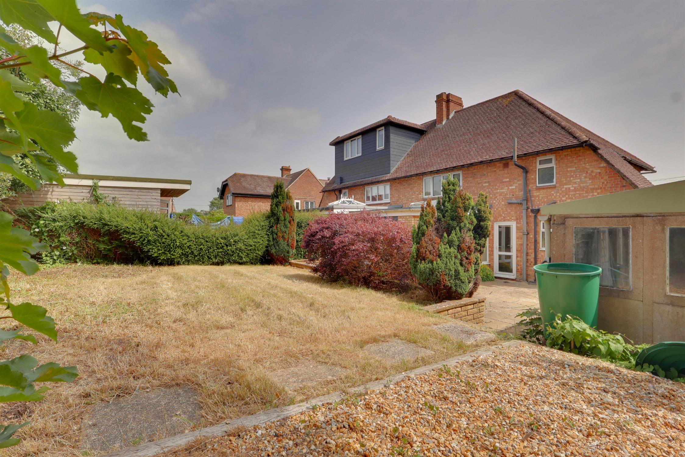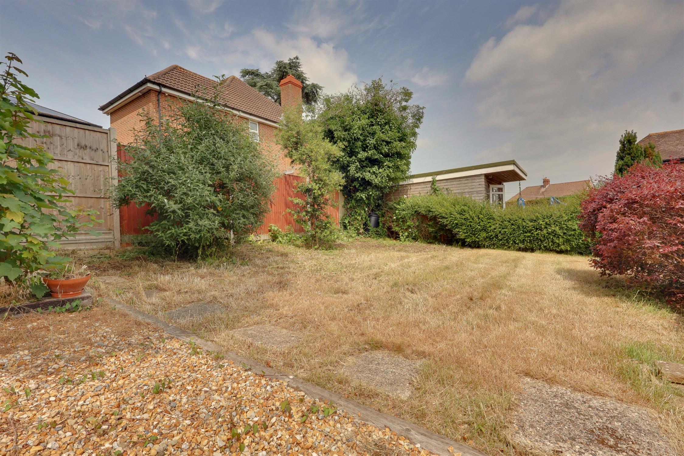 The property is approached by a private driveway leading to the garage at the rear. A small front garden complements the home’s charming façade, while the rear garden includes a patio area, raised lawn, and a gravelled section with hardstanding, perfect for a shed, office or additional storage.