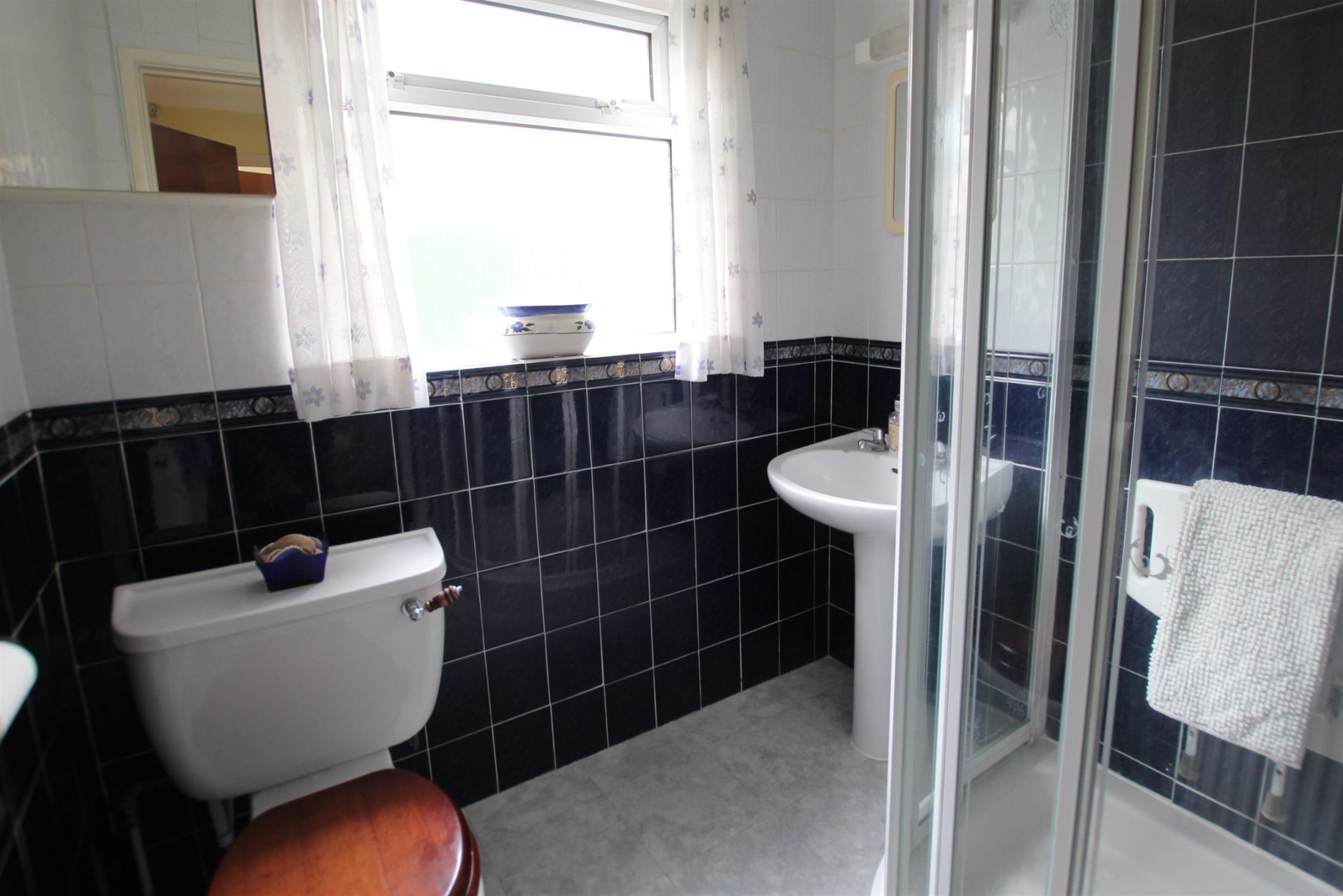 BATHROOM Obscured double-glazed window to side elevation, fitted suite includes WC, wash basin and enclosed cubicle with shower over, tiled wall surrounds, radiator, courtesy light with shaver point.