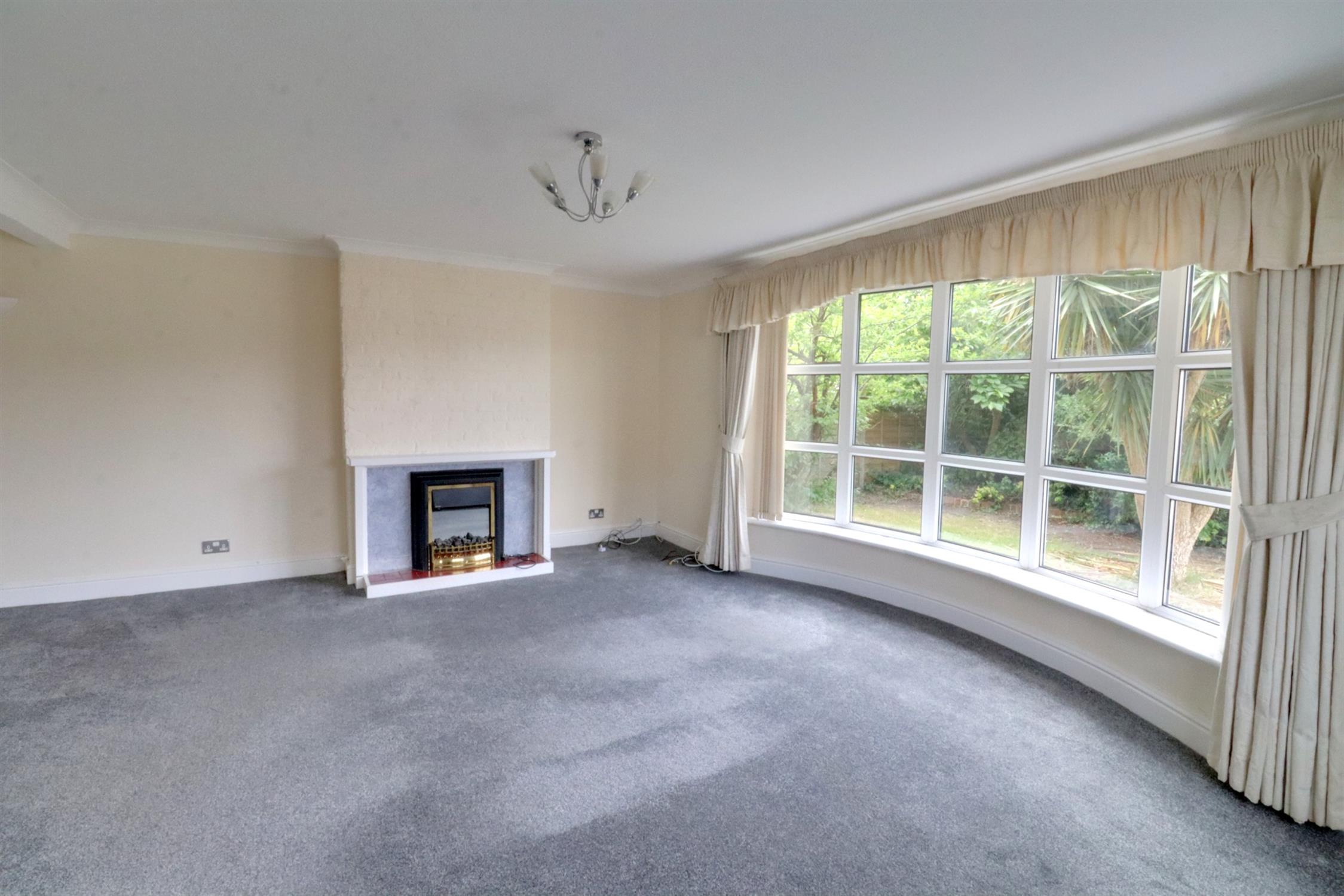 An L-shaped room with front aspect double glazed bay window, side aspect double glazed window, two radiators, open fireplace currently with an electric fire.