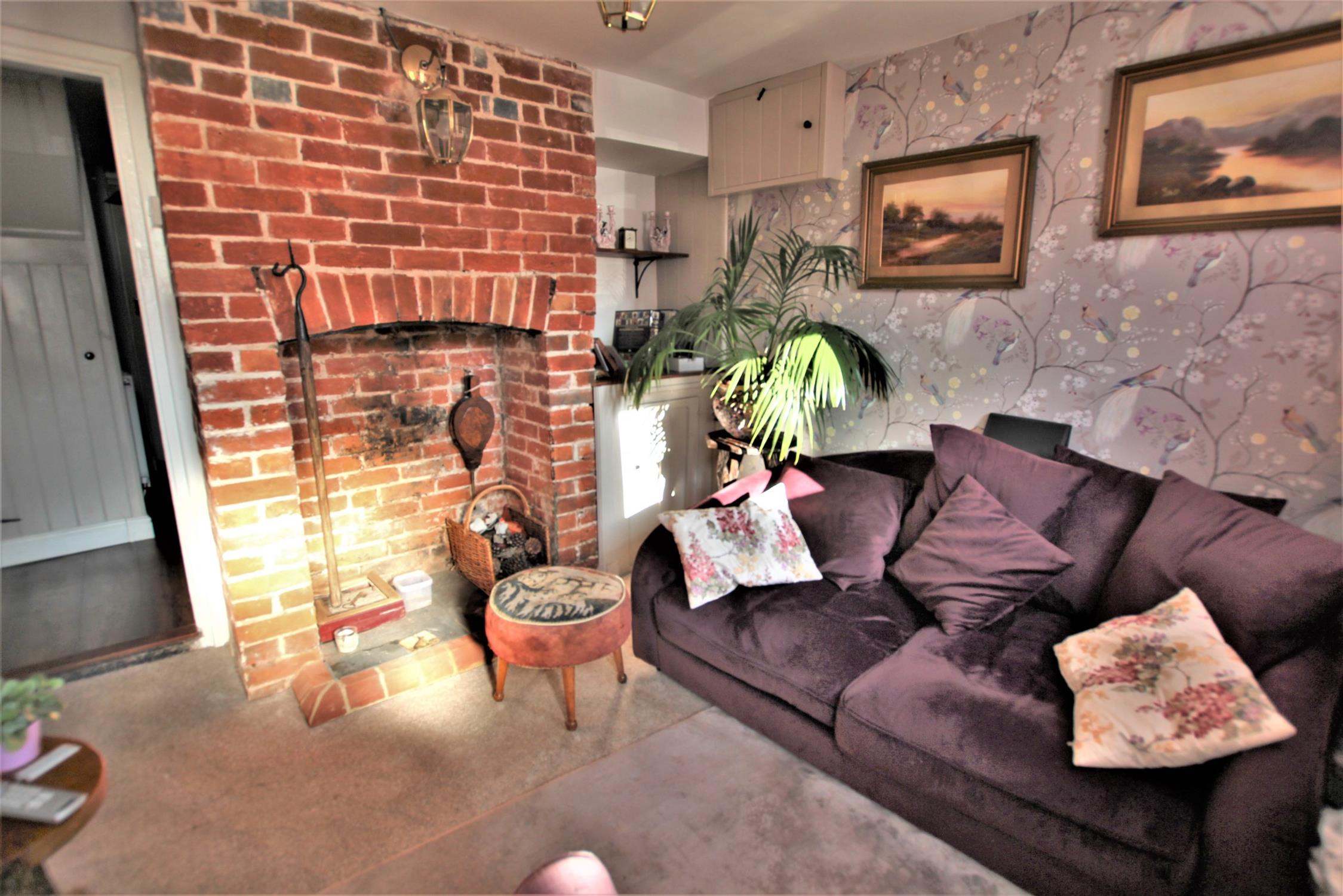 Brick fireplace, tv points, new ariel box fitted, meter cupboard, smart meters, radiator, carpeted, double-glazed door to front aspect, double-glazed window to front aspect with shutters, skimmed ceiling.