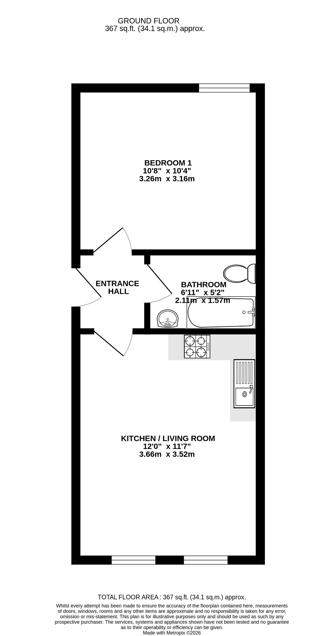 A well-presented ground floor apartment, situated close to an array of local amenities and excellent transport links. The property offers bright and spacious accommodation throughout, featuring an open-plan kitchen/living area that creates a sociable and practical living space. There is also a good-sized bedroom, a fitted bathroom and an entrance hall, with the home being well maintained and ready to move into. Externally, the property benefits from a large parking area with first-come, first-served parking.