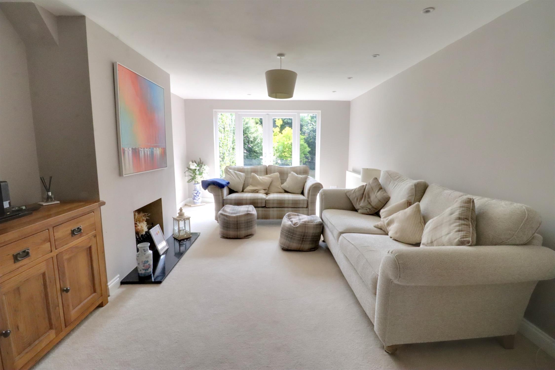 Front aspect double glazed French doors with double glazed side panels leading to the front garden, fireplace.