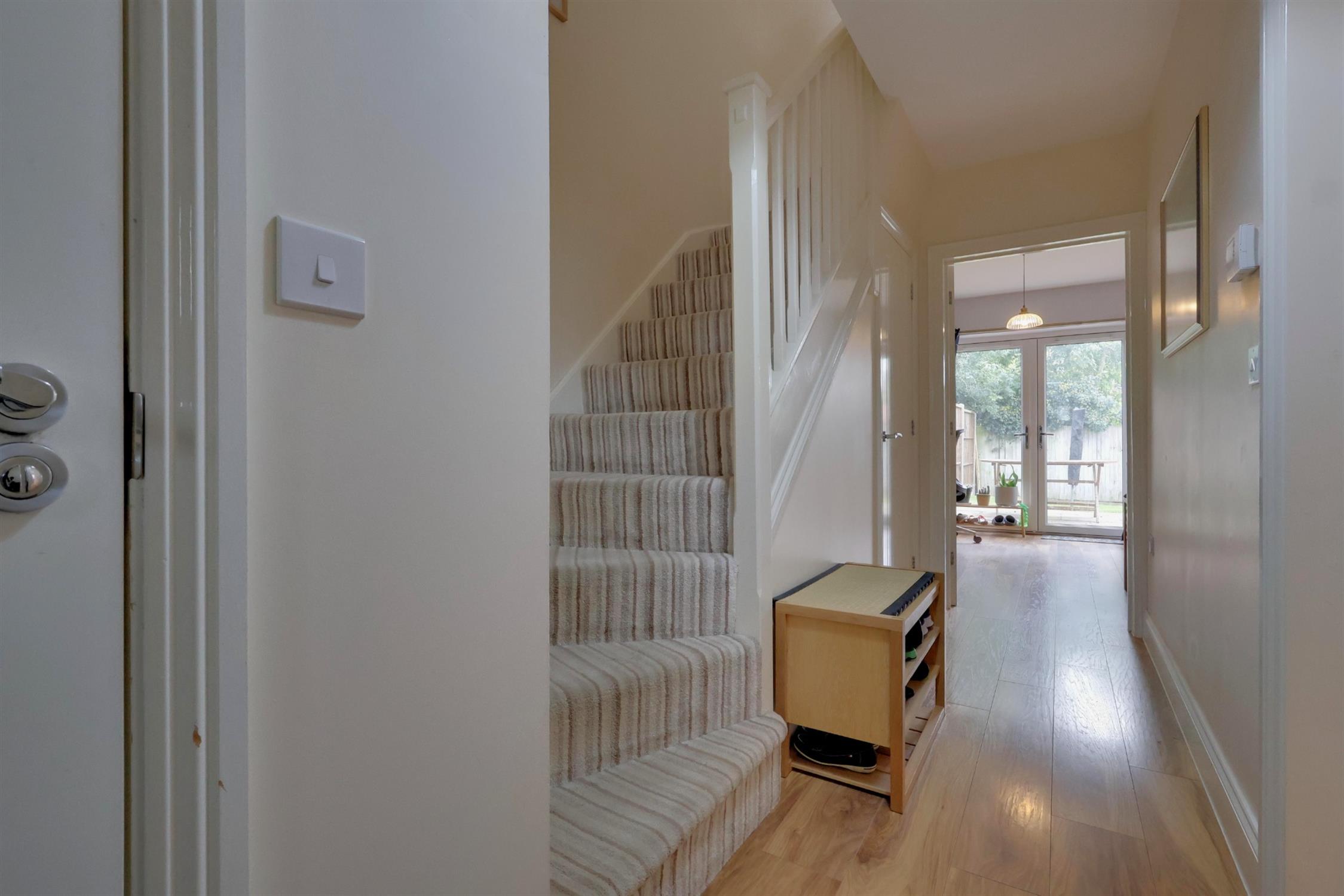 Entrance via front door leading into the hall, with doors to all ground-floor rooms and stairs rising to the first-floor accommodation. Understairs cupboard housing the fuse board. Radiator.