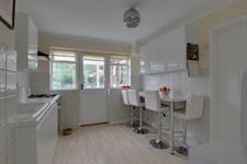Glazed door to the garden room, a range of wall and base units with a rolled top work surface incorporating one and a half sink with a mixer tap over, integral gas hob with a extractor hood over and an oven under, breakfast bar with seating for four, wall mounted gas boiler, space for a fridge/freezer, pantry cupboard, part tiled walls.