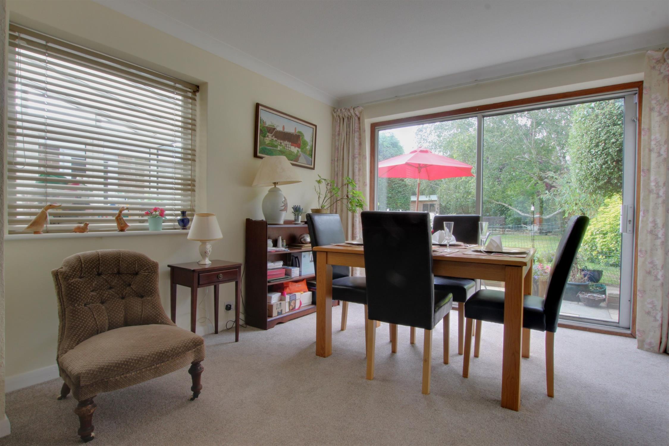 Open plan to the dining room, radiator, double glazed window, double glazed patio doors.