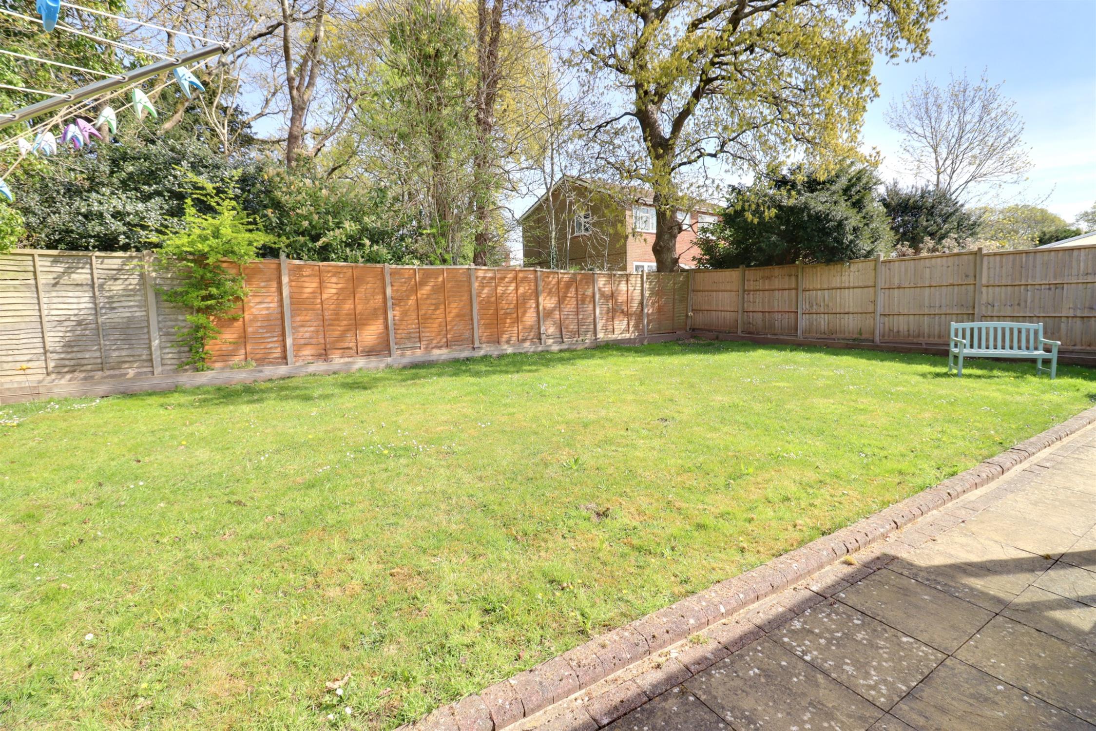 The enclosed and private rear garden backs onto woodland and is predominantly laid to lawn with full width paved patio, gated side access on both sides, outside tap.