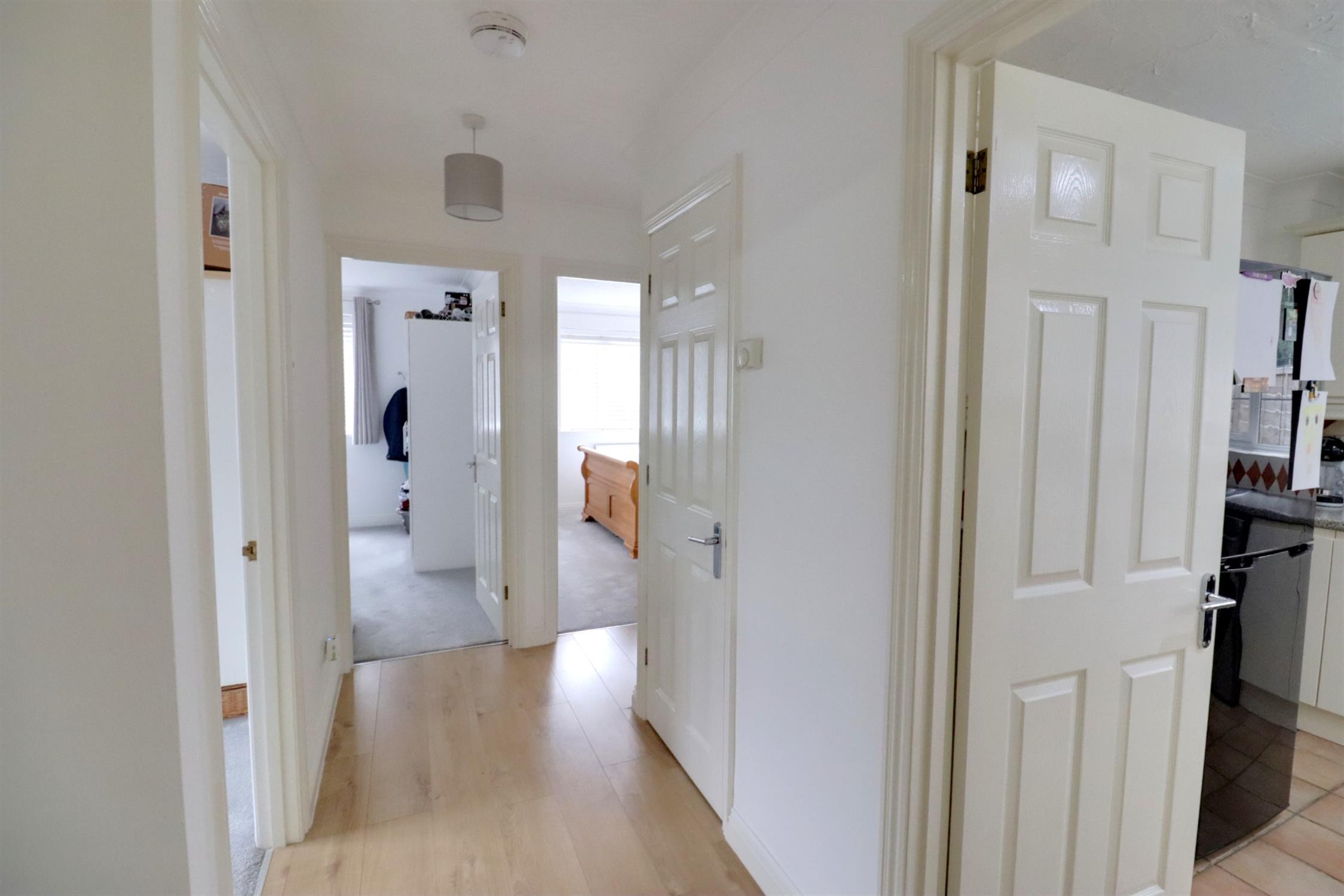 ENTRANCE HALLComposite front door with lead light double glazed panel, laminate flooring, loft hatch, radiator, airing cupboard with slatted shelving housing immersion heater.