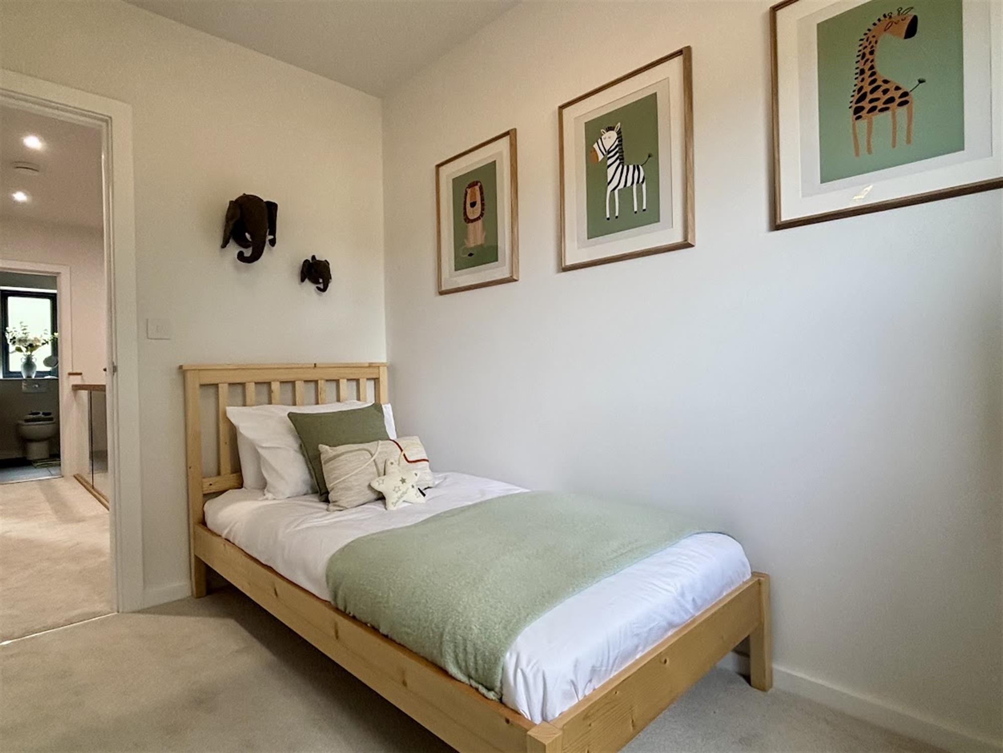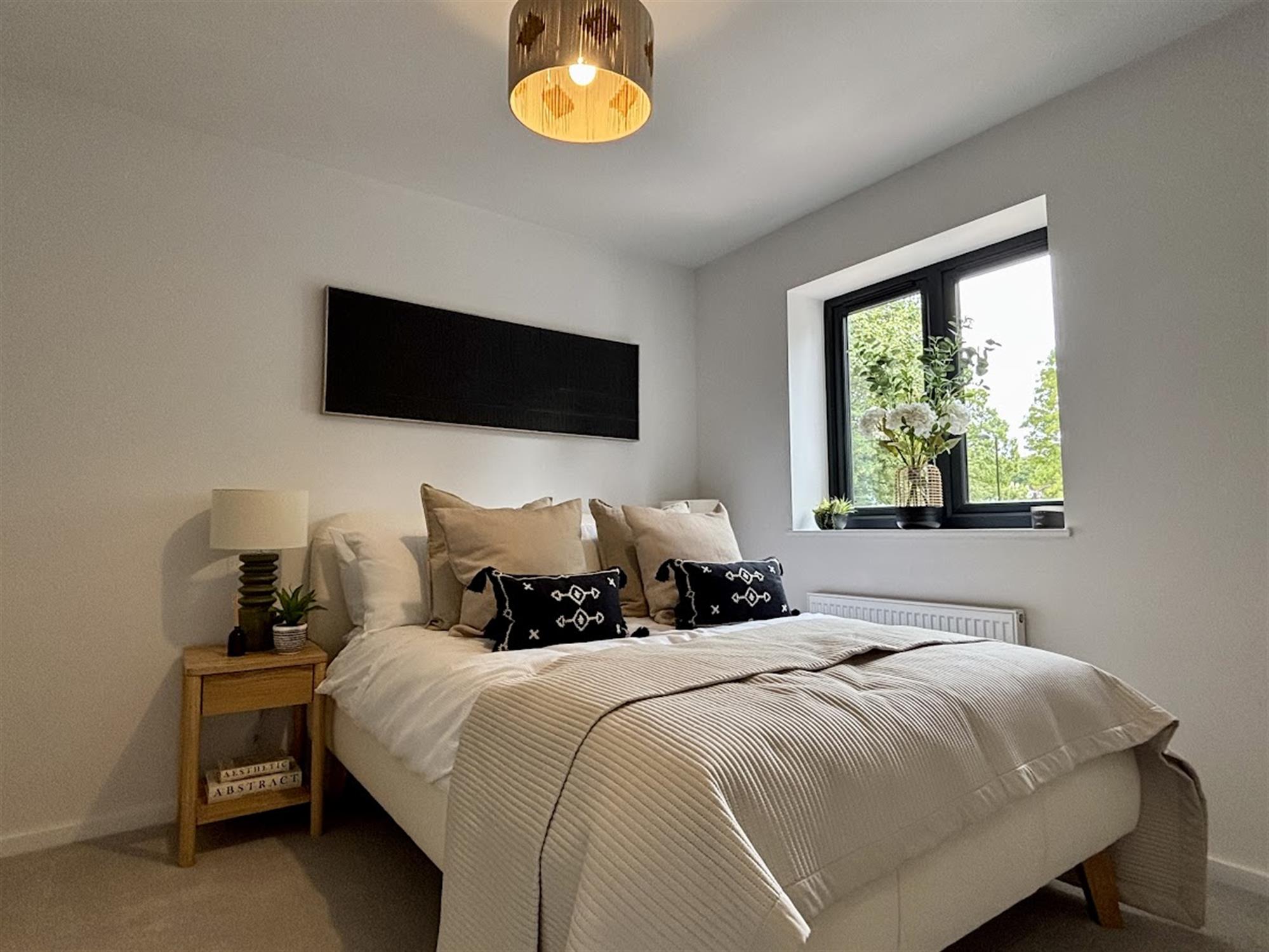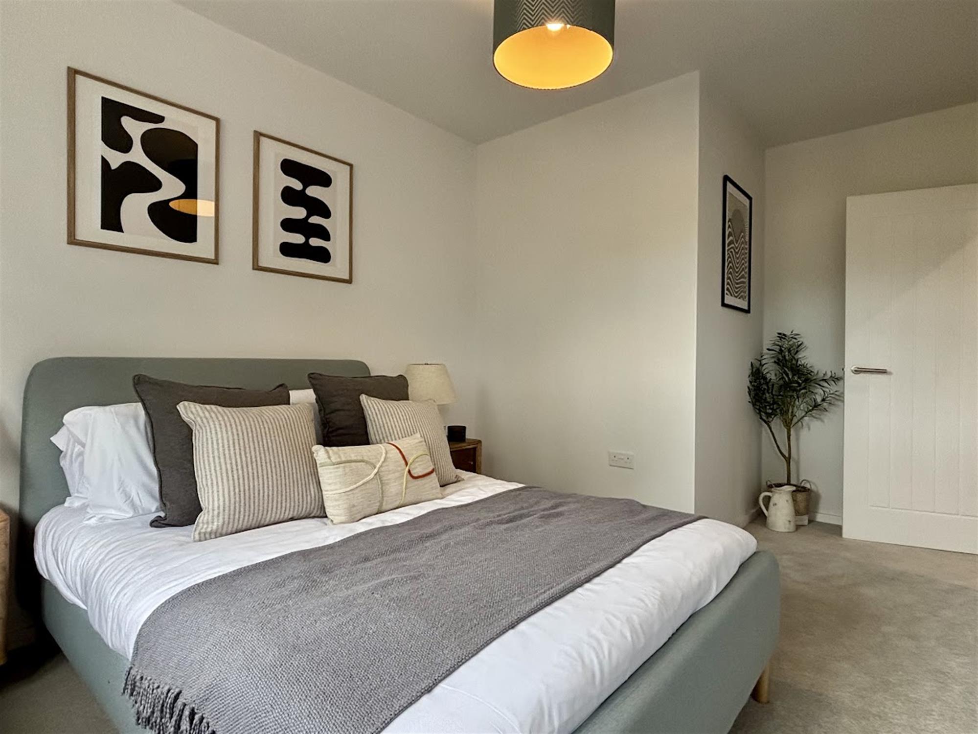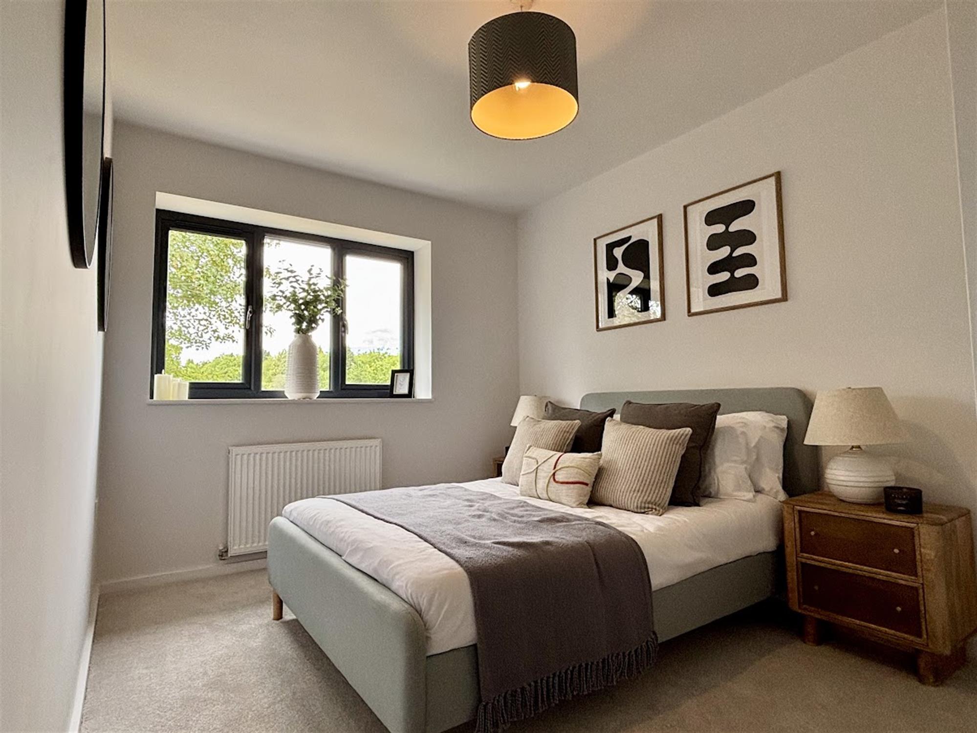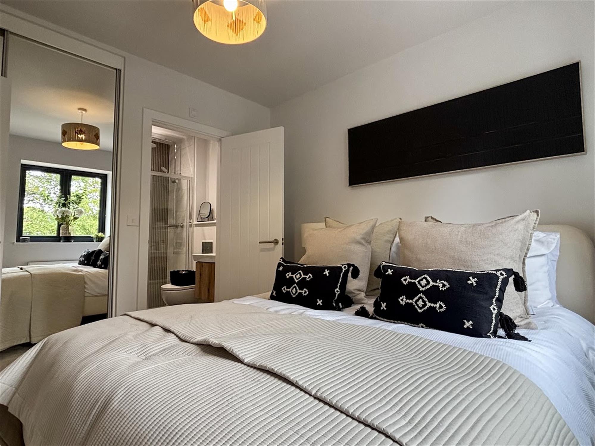 Double bedroom with en-suite shower room, built-in wardrobes. The room is fitted with light grey carpets and a window to the front.