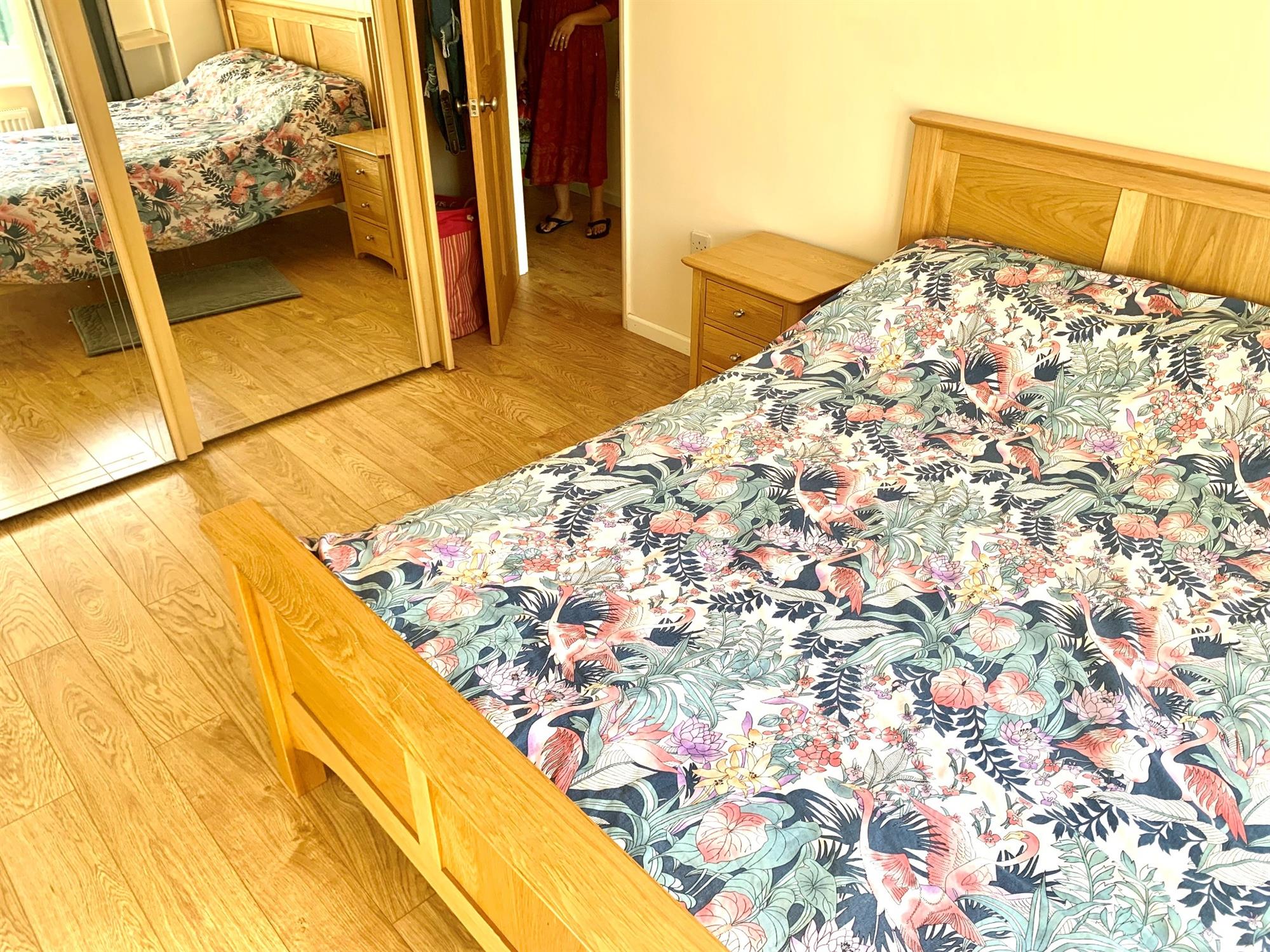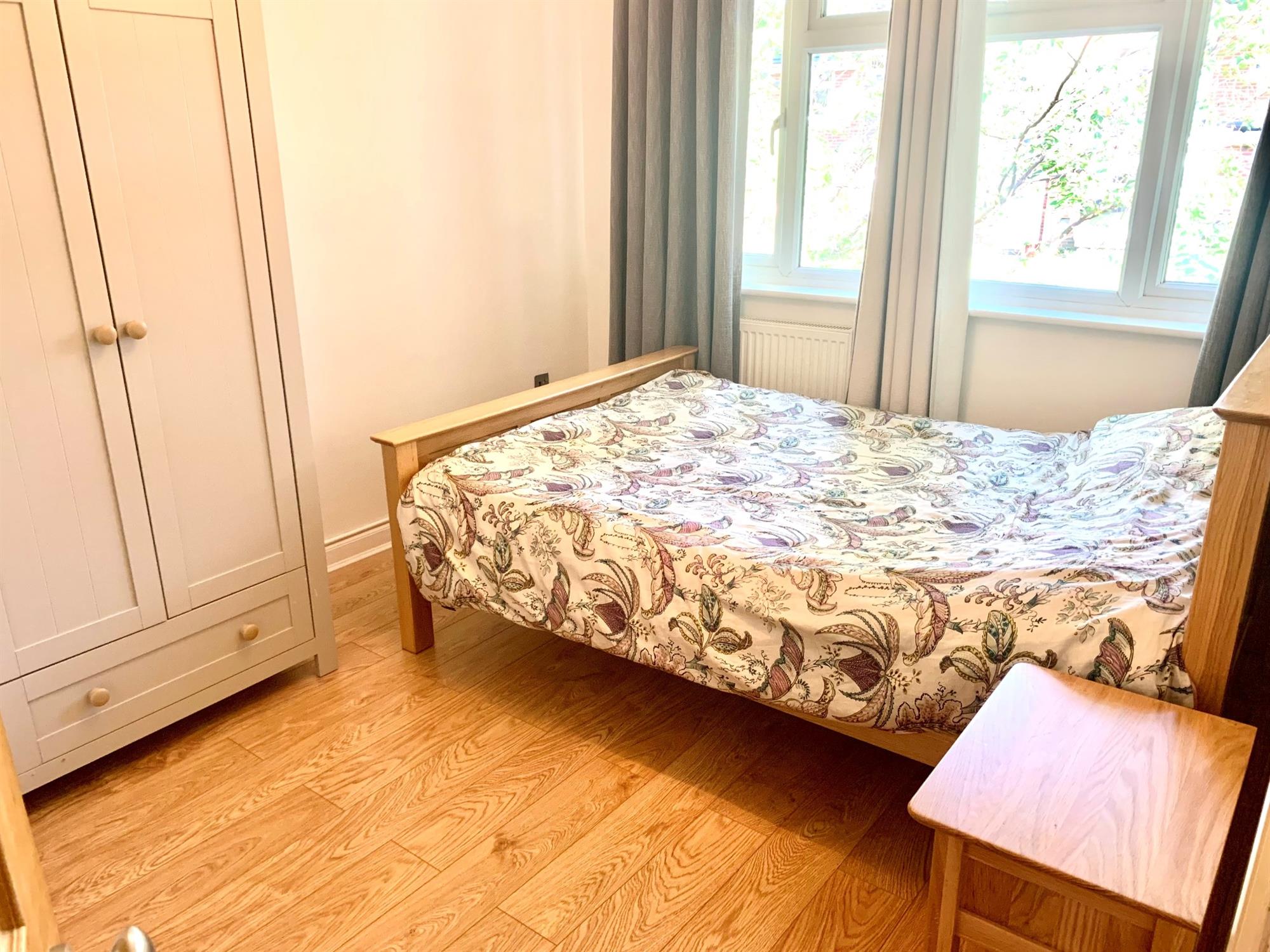 BEDROOM TWO - Double bedroom with laminate flooring, window to front and built in airing cupboard. Free standing wardrobe.