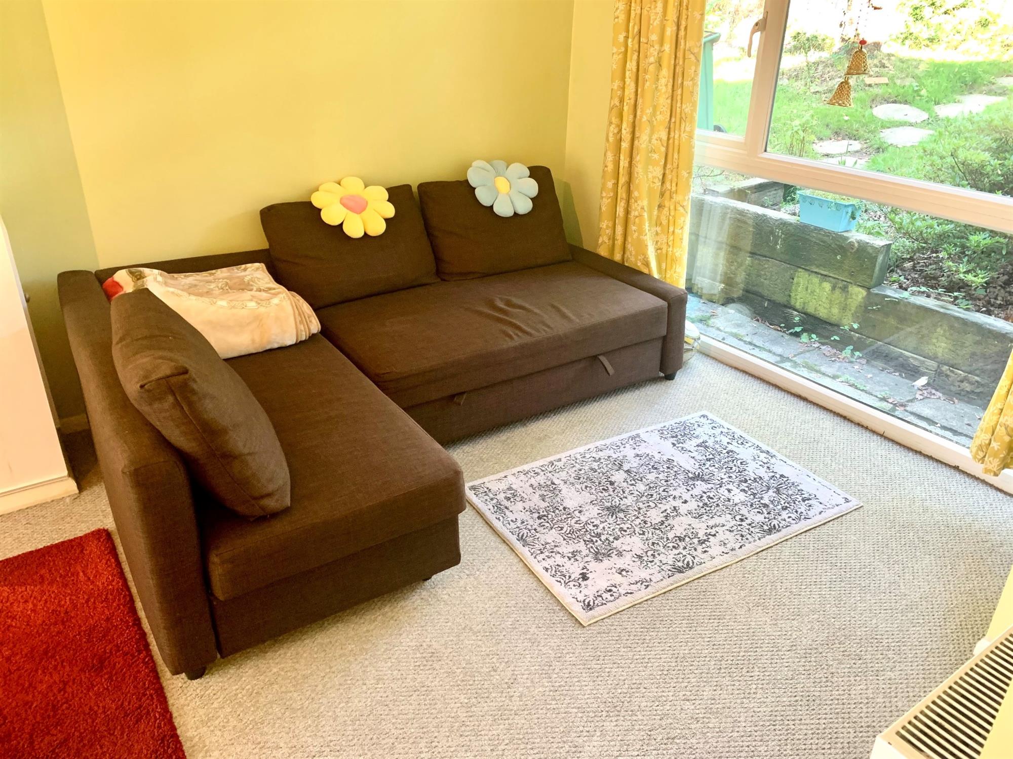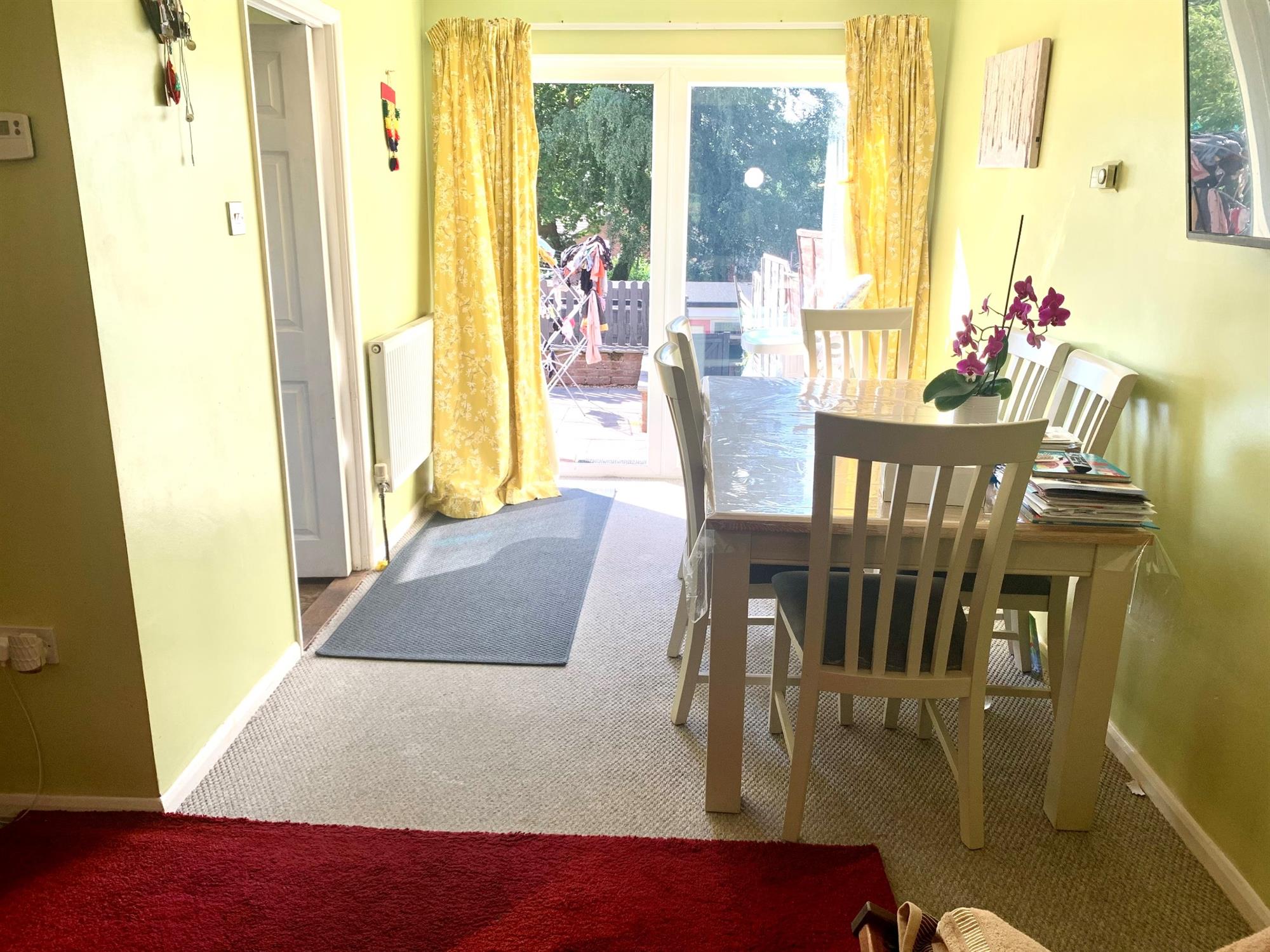 LOUNGE/DINER – Carpeted with large window to front French door to garden. Cupboard under stairs for storage. Door to kitchen.