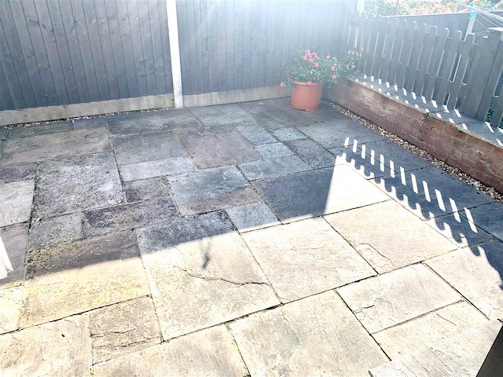 GARDEN – 3 tier rear garden with access to the garage. Top tier of garden is slabbed with gate. 2nd tier is laid with artificial grass and the bottom tier is also slabbed. Front garden is mainly grass with path to front of property.