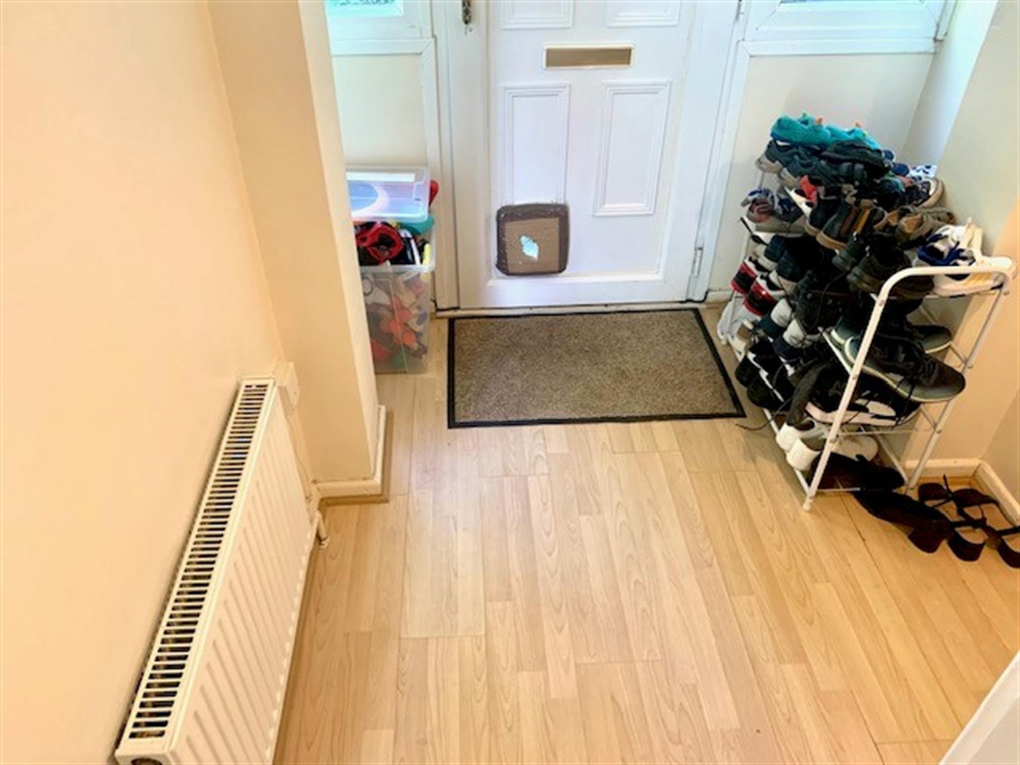 ENTRANCE HALLWAY – Laminate flooring with door to lounge and stairs to first floor.