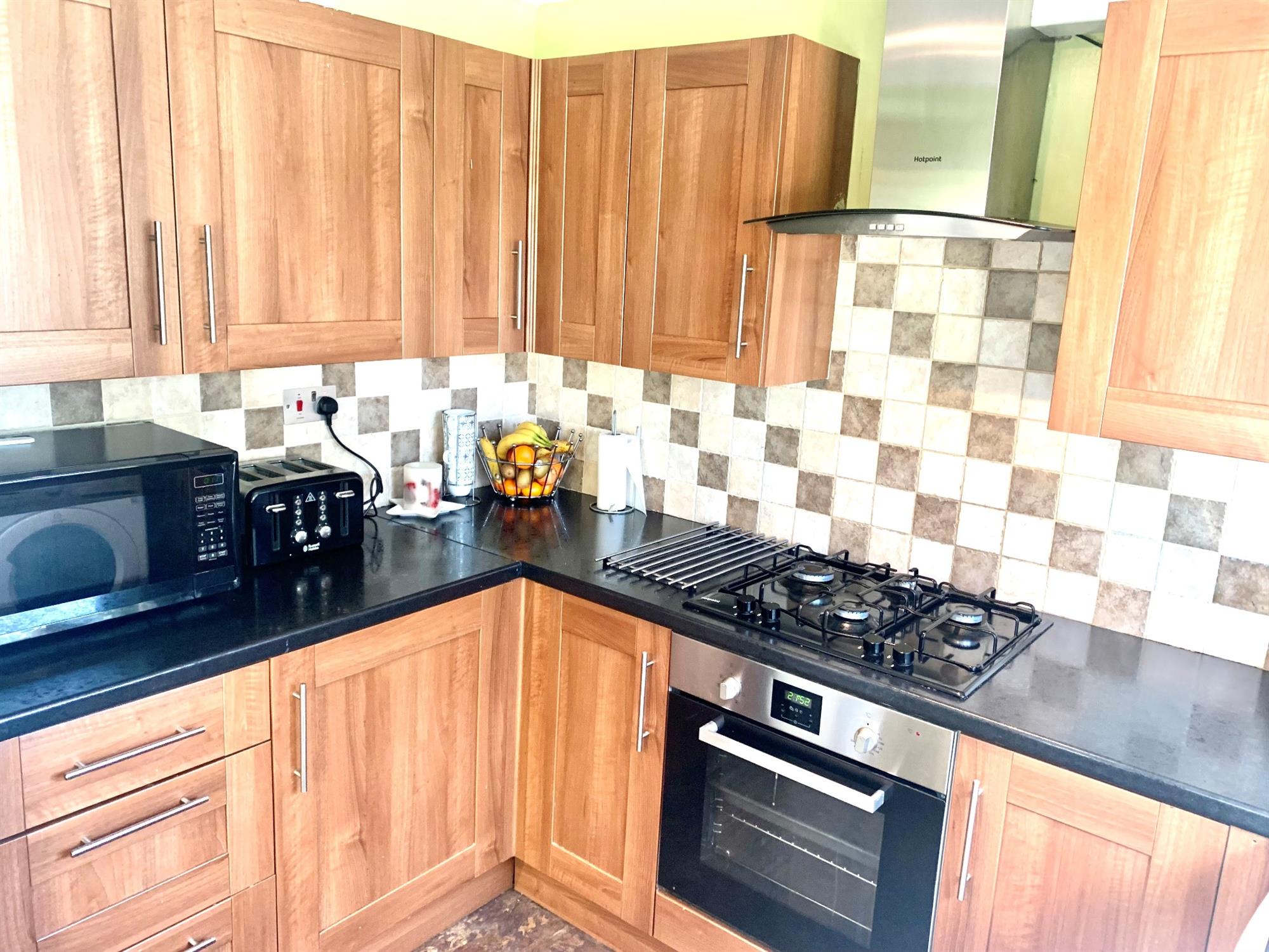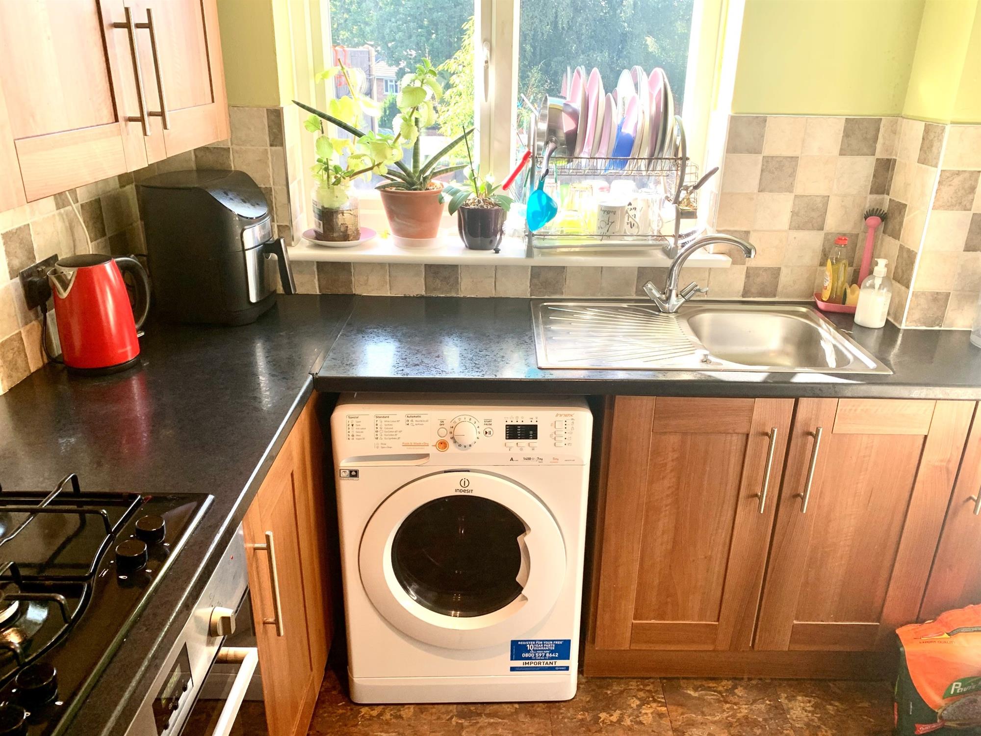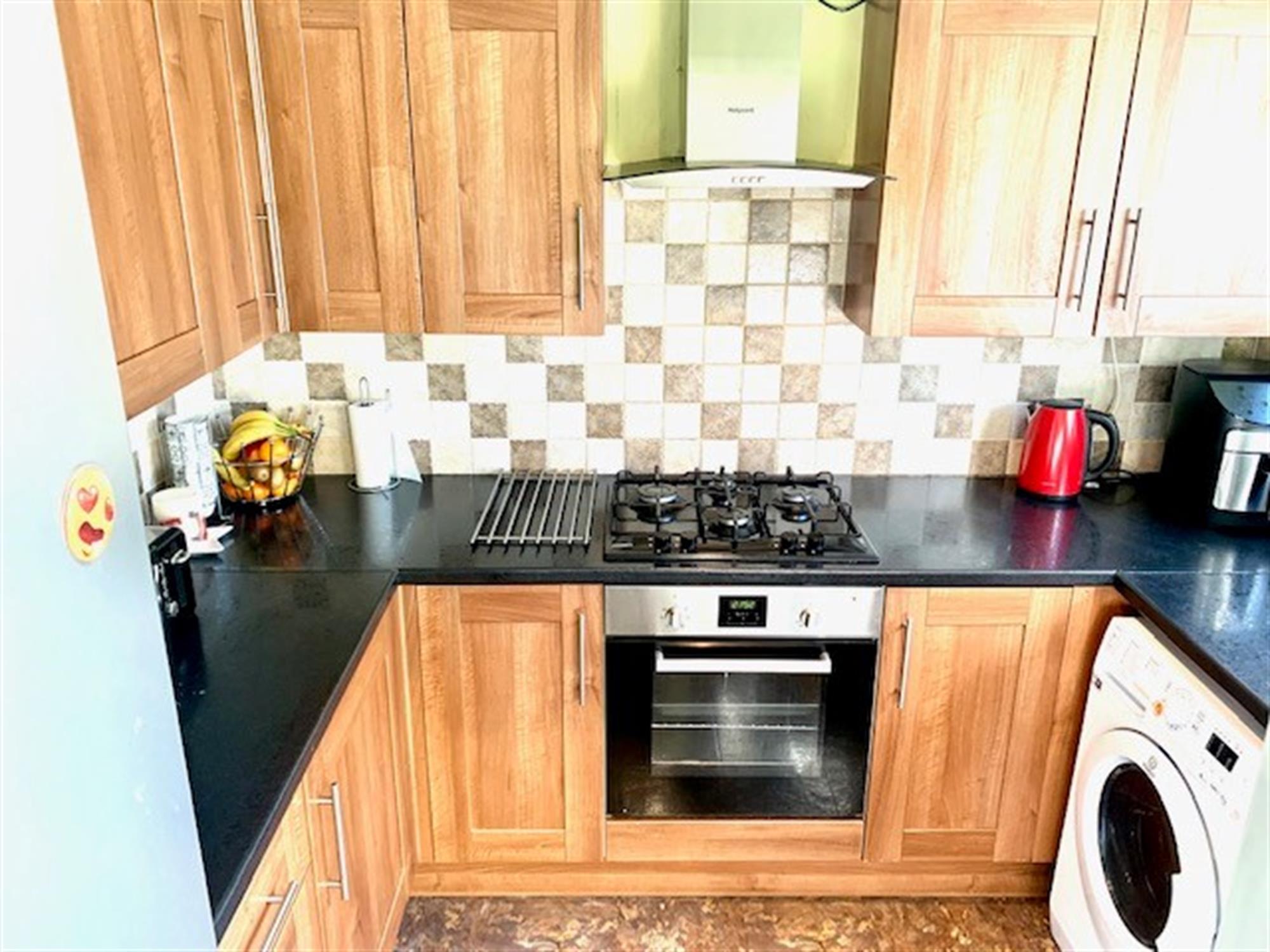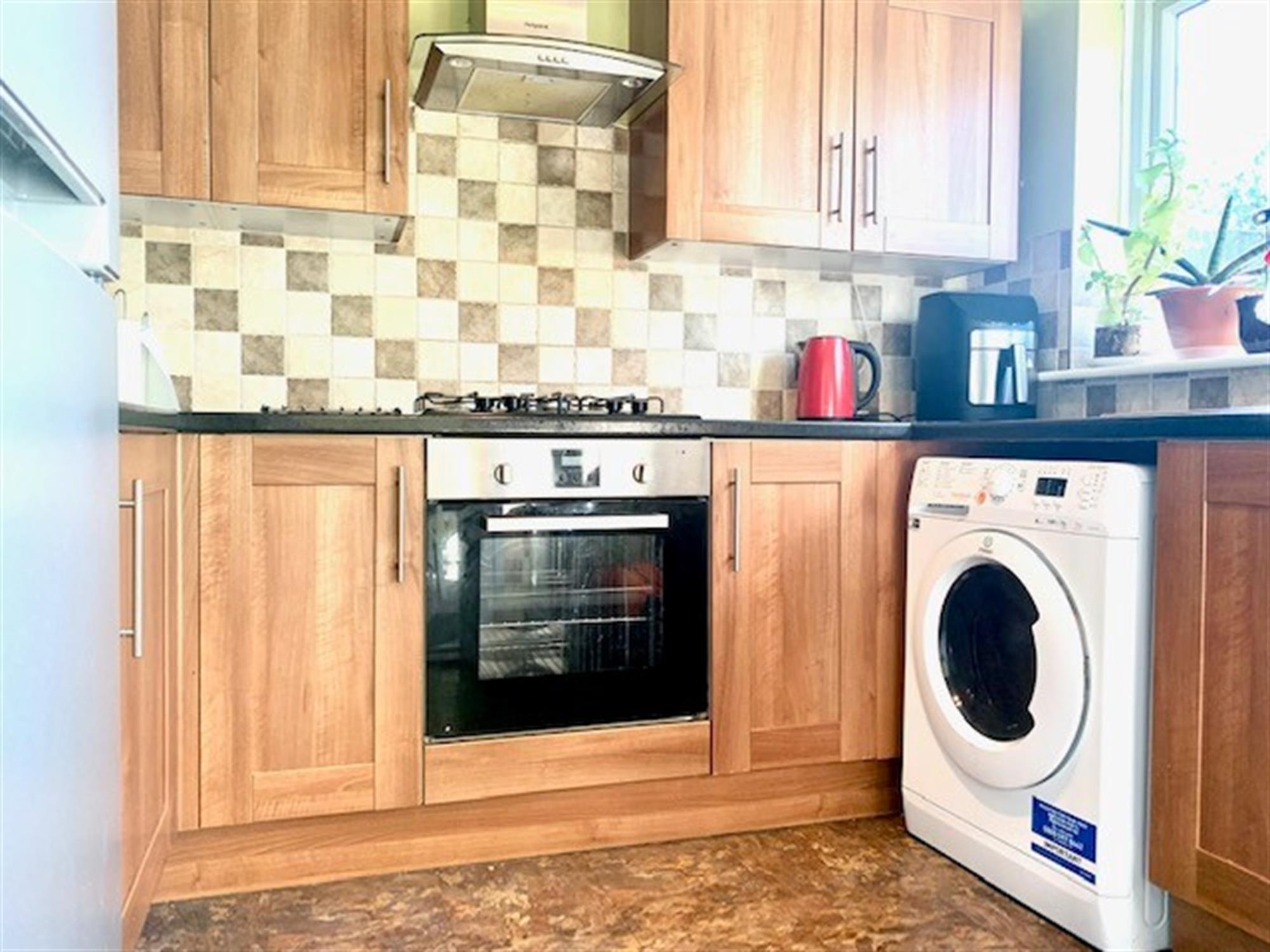 Appliances consists of: gas hob, electric oven, washing machine and fridge/freezer.