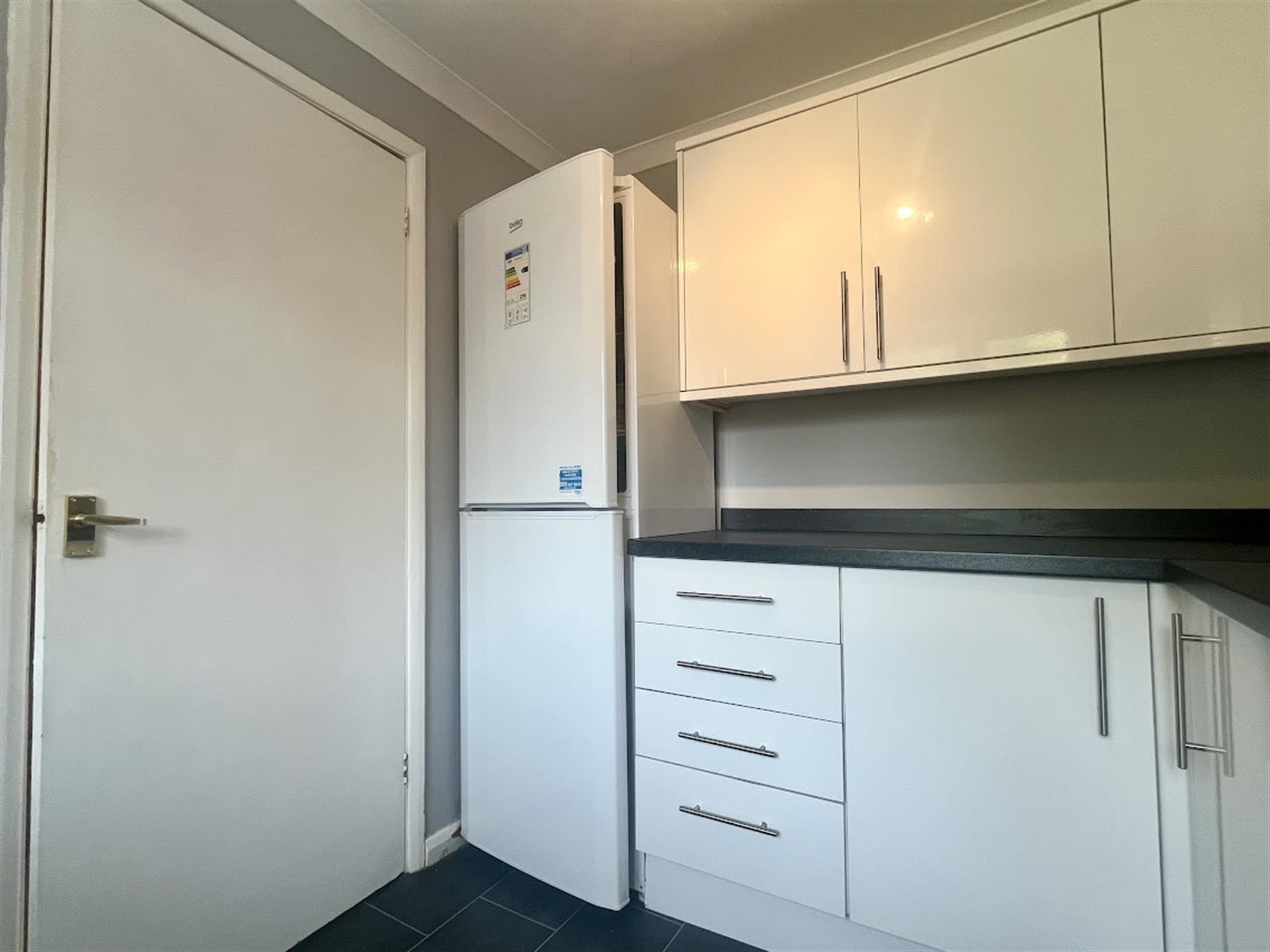 Appliances consists of: gas hob, electric oven, washer/dryer, slimline dishwasher and fridge/freezer.