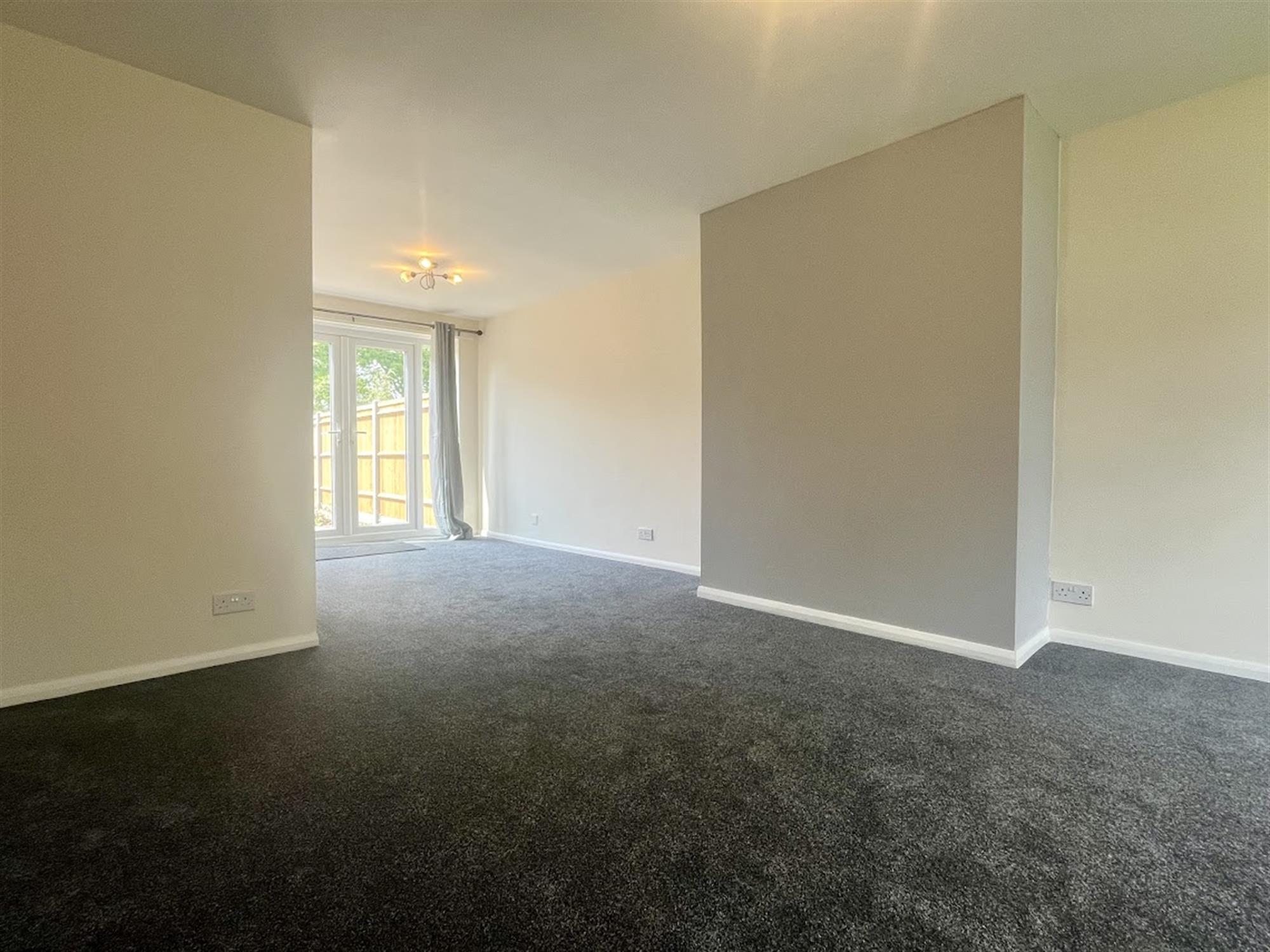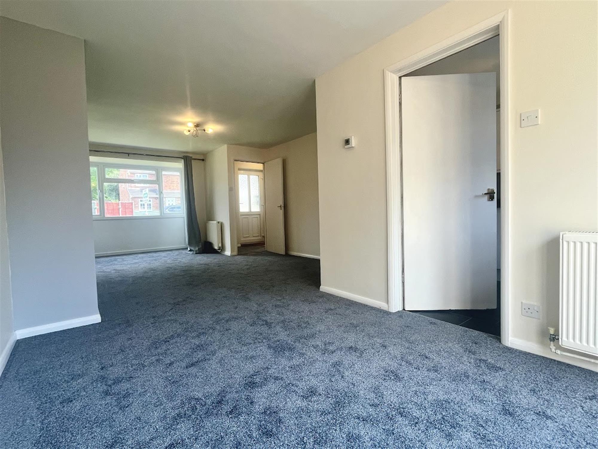 LOUNGE/DINER – Carpeted with large window to front, French door to garden and cupboard under stairs for storage. Door to kitchen.