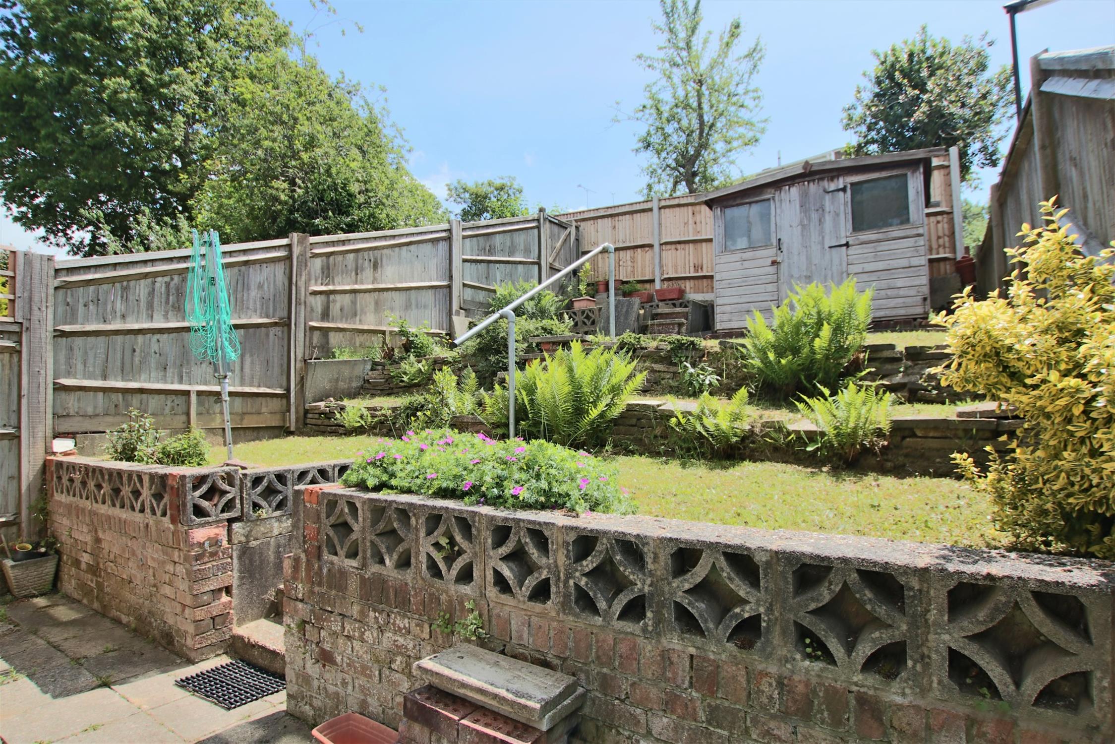 Southerly facing tiered rear garden with steps leading up, mainly laid to lawn. Side and rear gated access. Garden shed. GARAGE in block and allocated parking.