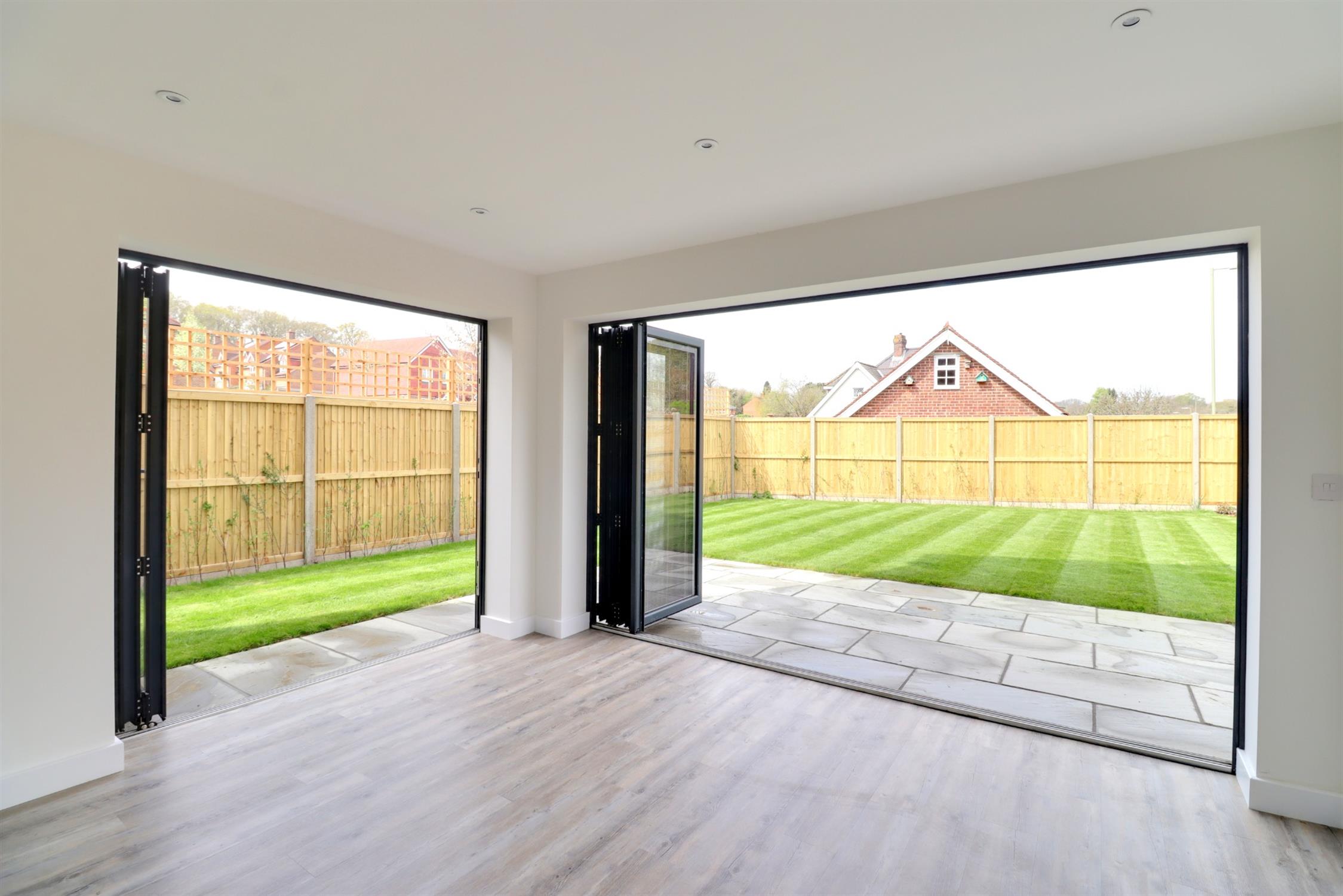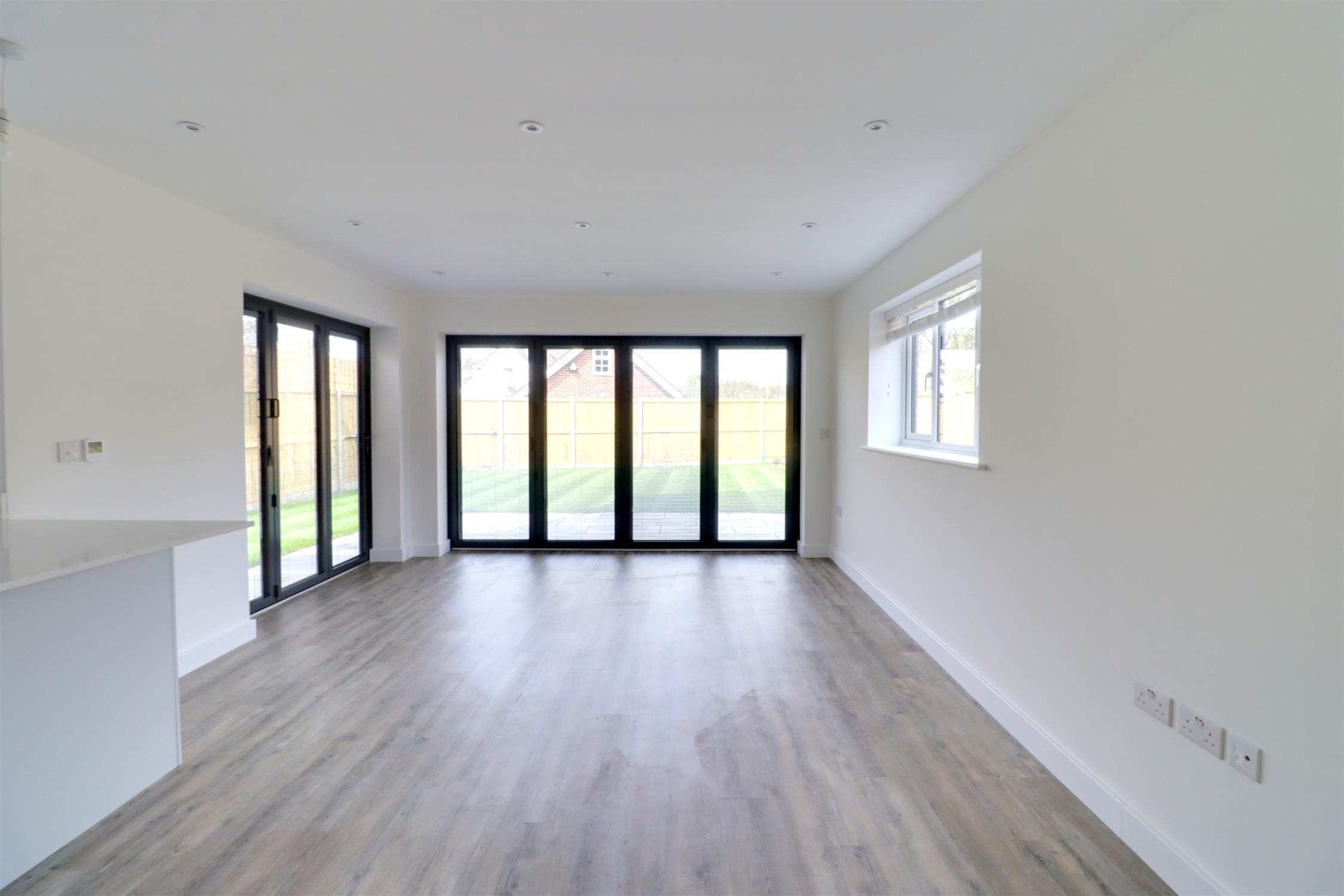 Living/Dining area - Side and rear aspect double glazed bi-folding doors leading to the rear garden, side aspect double glazed window and double glazed door, Karndean flooring with underfloor heating, door to the utility room.