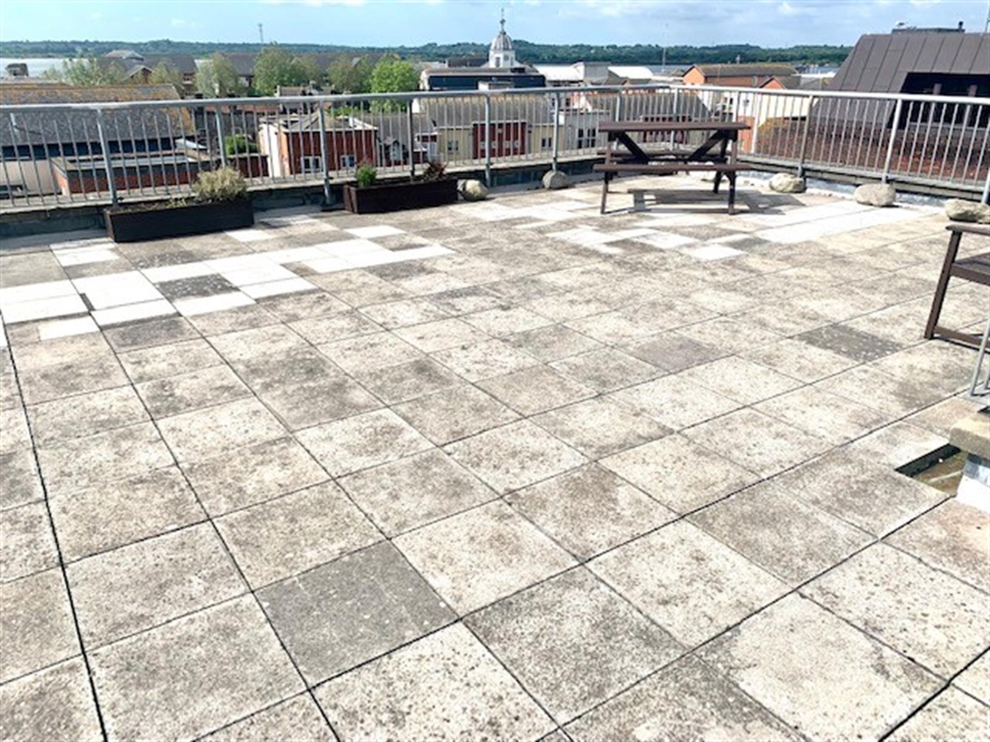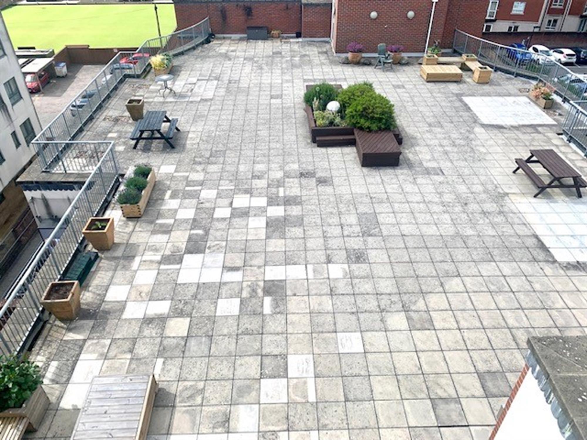 Two communal roof terraces are located on the 4th and 6th floors of the block with views towards the water.
