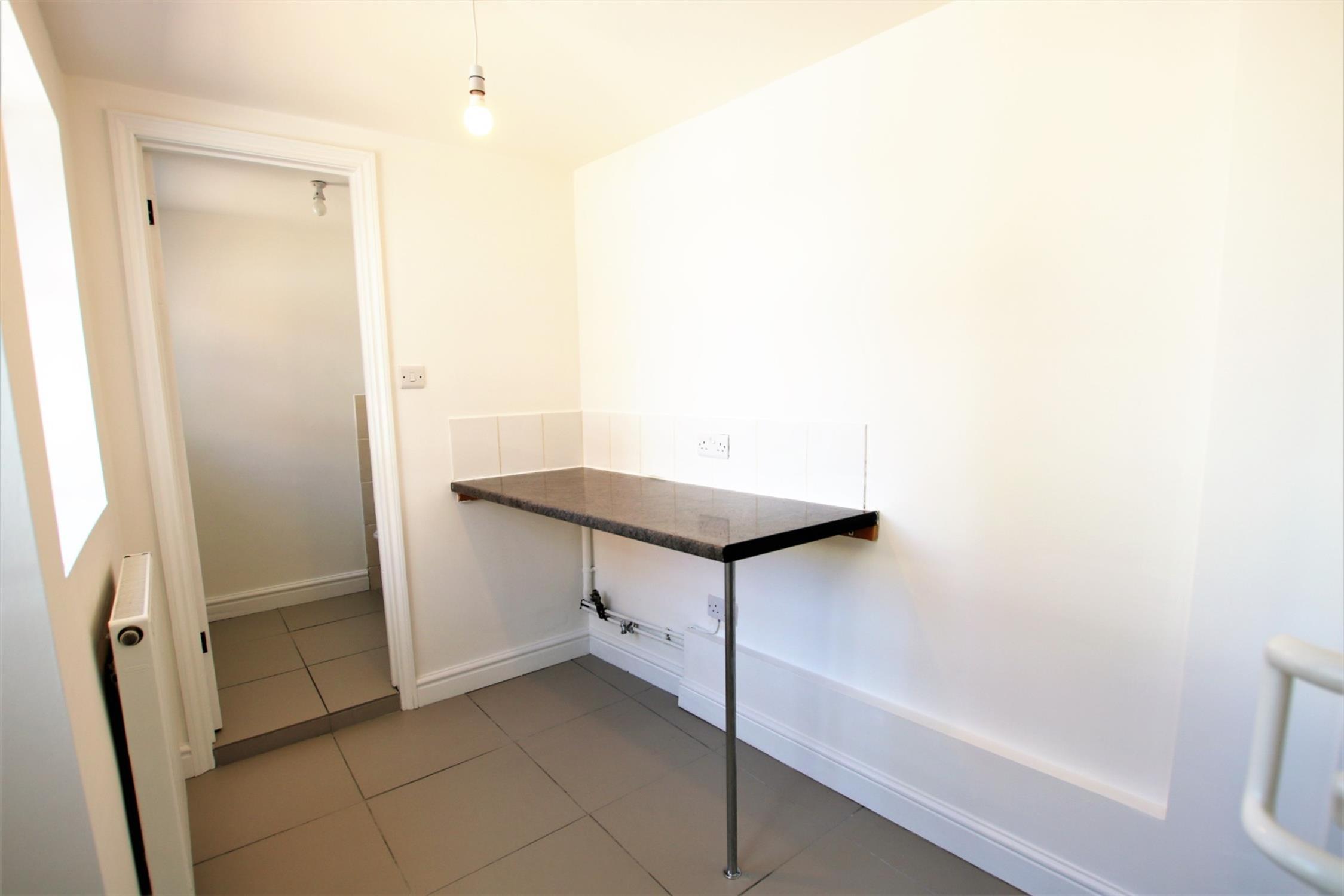 Space for washing machine and tumble dryer, ceramic tiled floor and door to rear garden.