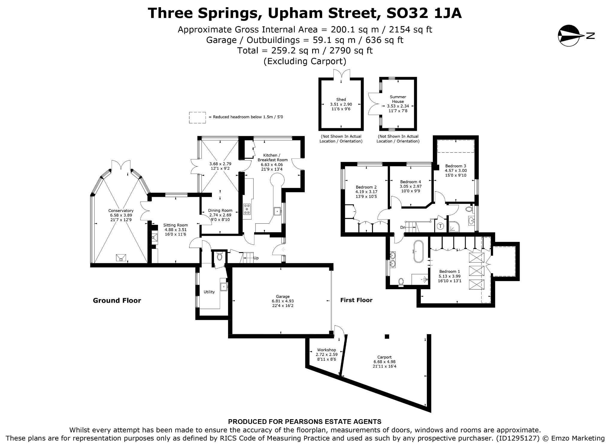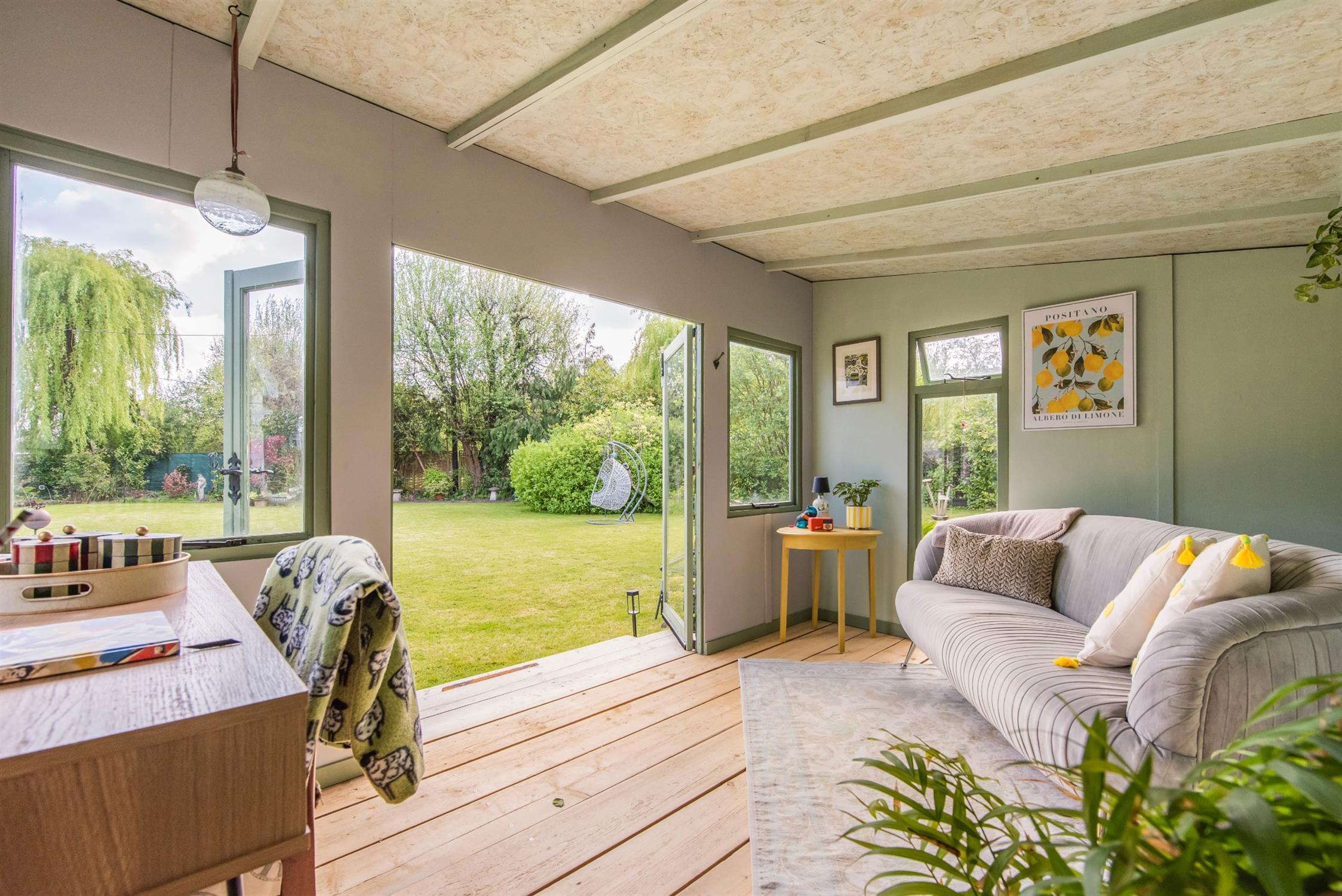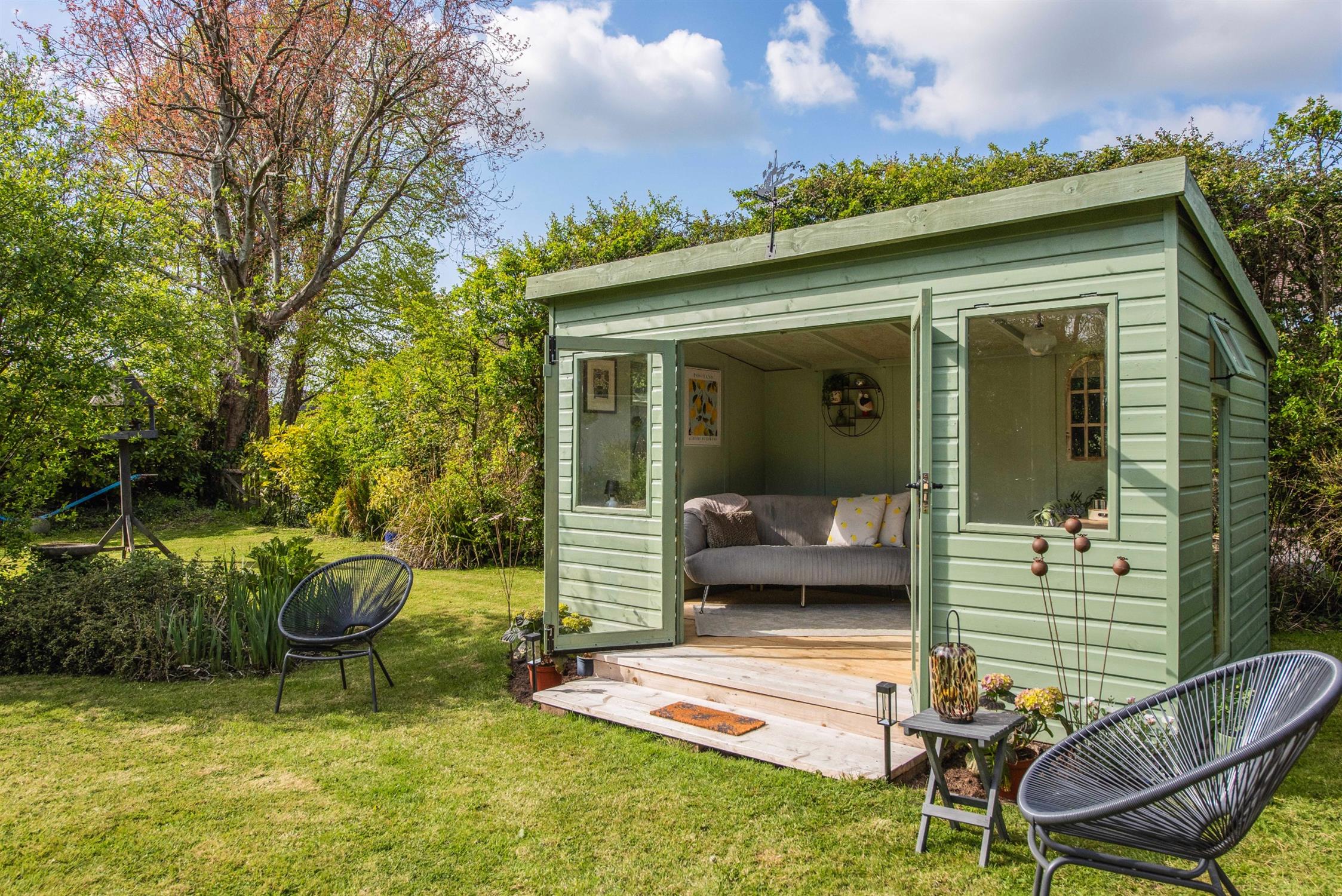 The grounds of the property extend to just over one third of an acre and are a particularly attractive feature. Approached via gated access from Upham Street, the property opens onto a generous driveway providing ample parking and turning space. This in turn leads to the garage, measuring approximately 22’4” x 16’2”, fitted with an up-and-over door, power and lighting. Adjacent is a useful workshop/store, together with a car barn, providing excellent additional covered parking and storage. The established gardens extend to the rear and side of the property, enjoying mature, well-enclosed boundaries and a rich variety of established planting that creates a sense of privacy and seclusion. Paved terrace areas adjoin the principal reception rooms, offering an ideal setting for outdoor entertaining and enjoyment of the garden. Further features include a practical garden store and a recently added summerhouse, thoughtfully positioned to take advantage of the outlook and providing a delightful space in which to sit and enjoy the surrounding gardens.