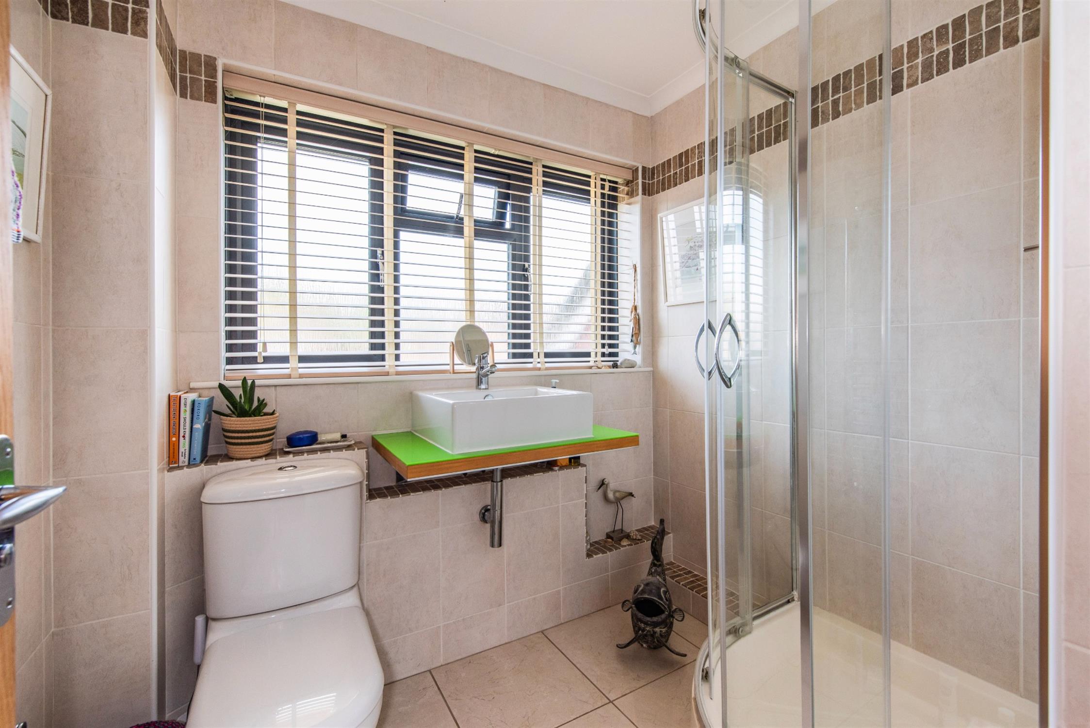 Tiled and fitted with a white suite comprising, shower cubicle, low level WC and wash hand basin. Window to the front aspect. Radiator.